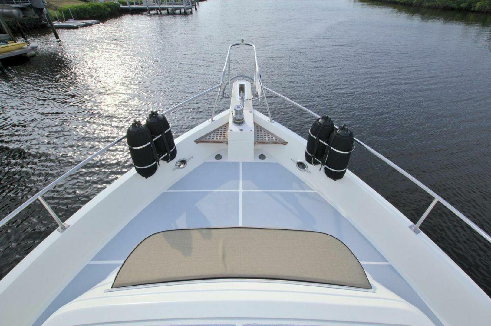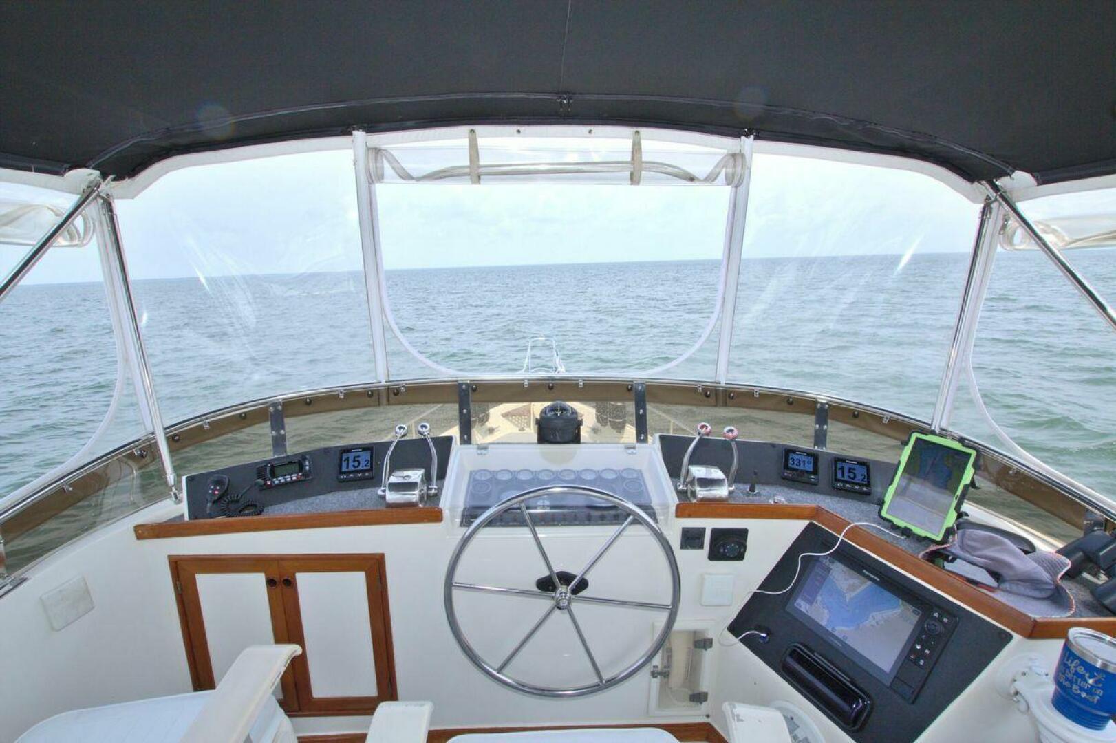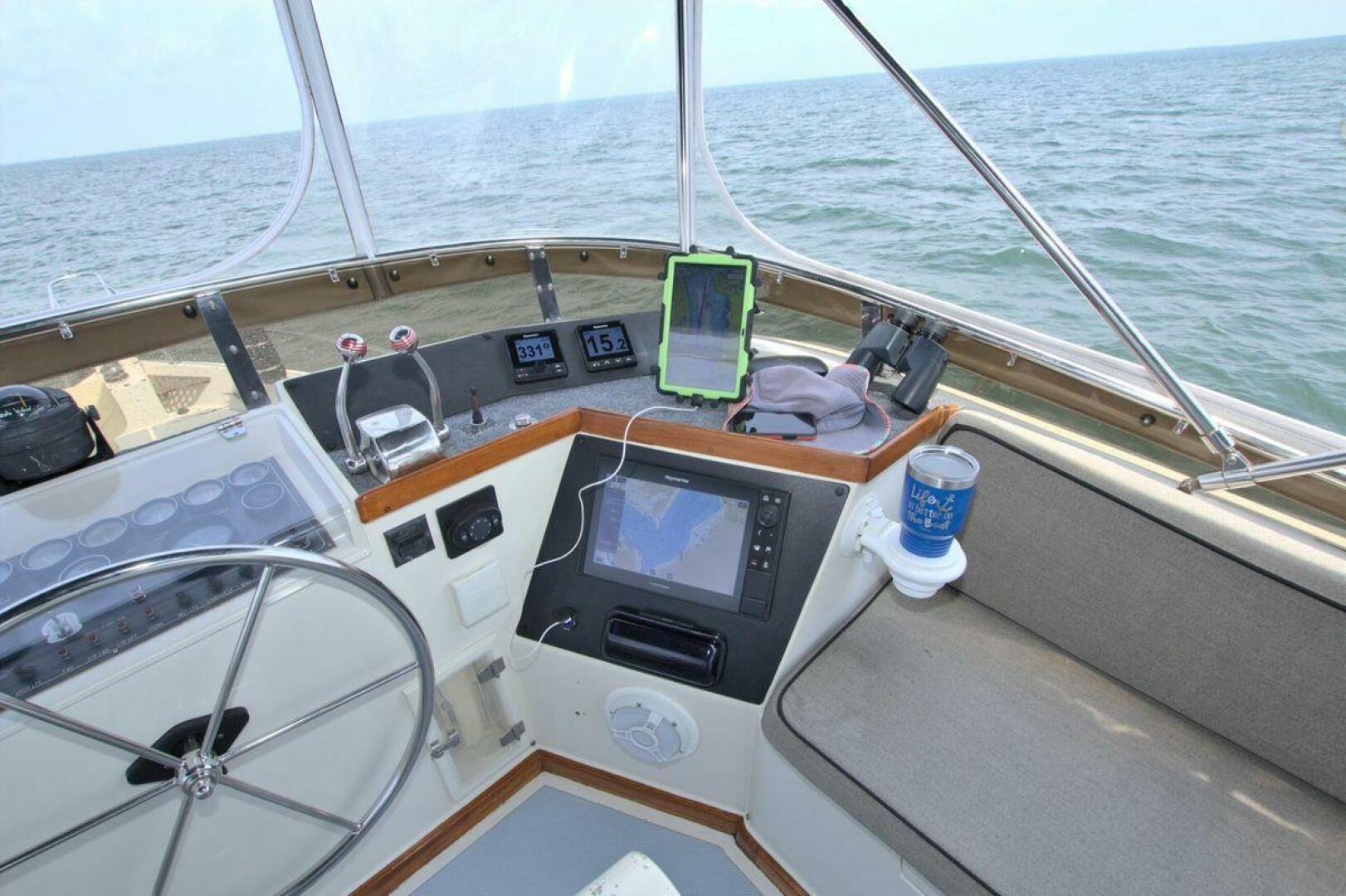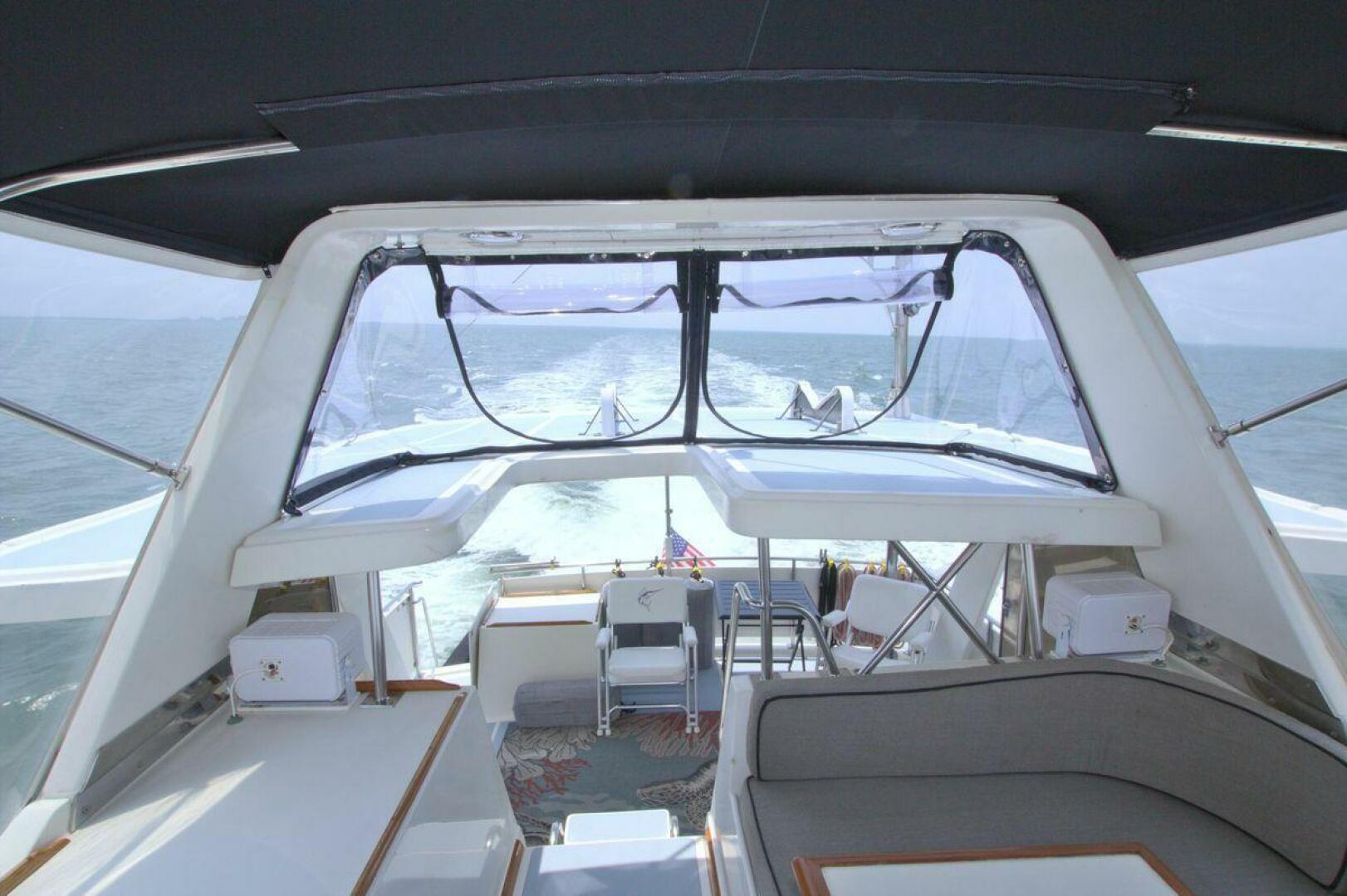 Flybridge starboard with bench seat, updated Electronics and Radar 2021. New Bimini top and a full enclosure. Canvas covers for all helm and flybridge seating. Bow pulpit with anchor roller windlass controls (1) 85 lb Rocna and 280ft all chain rode.
