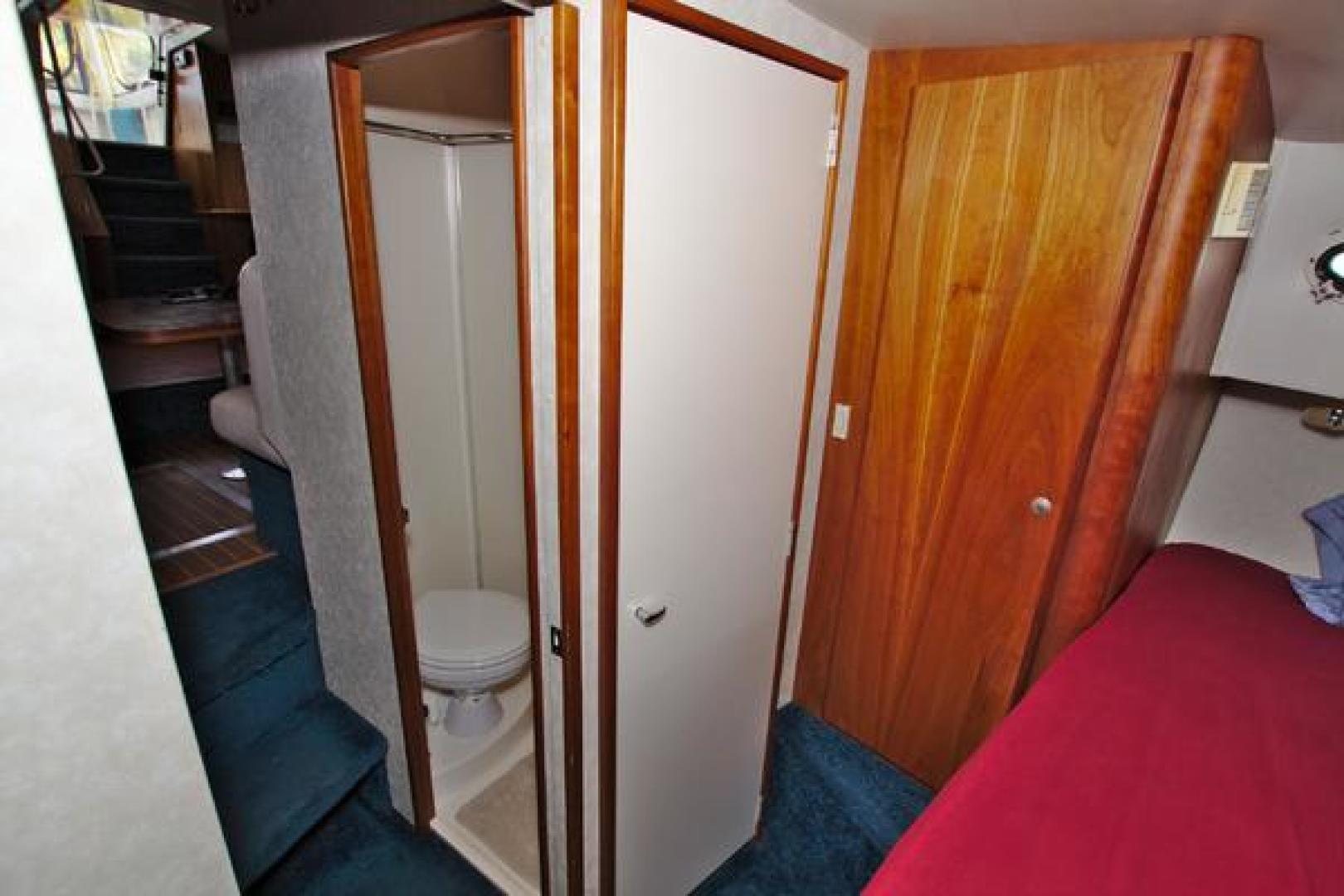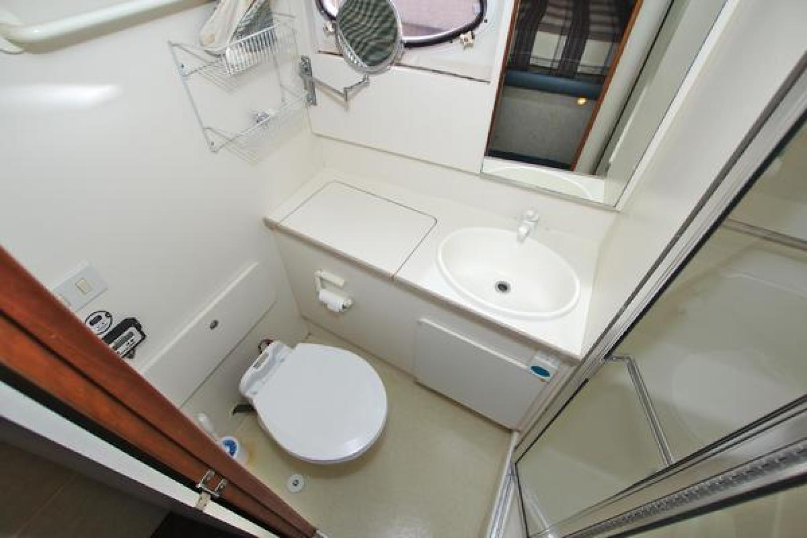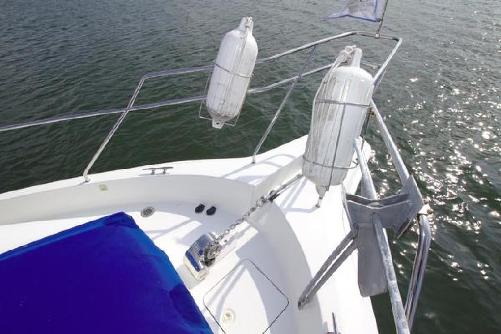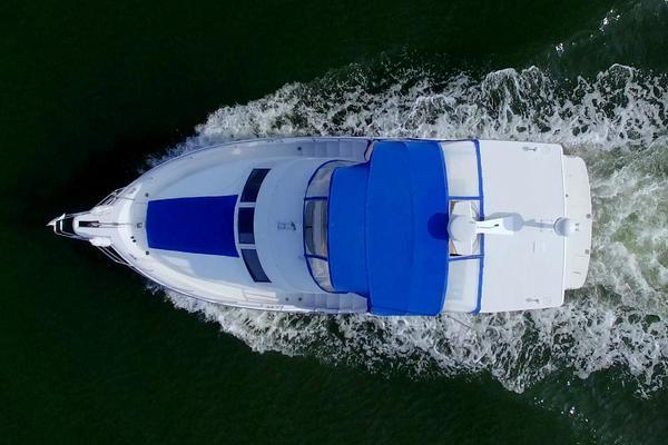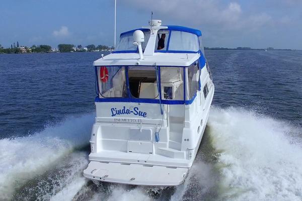 The SILVERTON 372/392 Diesel Powered Motor Yacht has an innovative design creating an interior salon as spacious as those found in mid-40 footer yachts. The sidewalk deck plan allows for full beam interior with spacious salon with entertainment center, an open layout galley with full sized refrigerator, two cabins, two heads each w/separate stall showers a flybridge with an great open view, aft deck with swim platform and even comes with a nice dingy and outboard. This boat is ready to cruise!