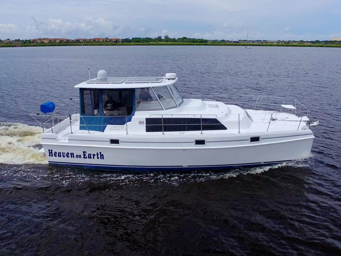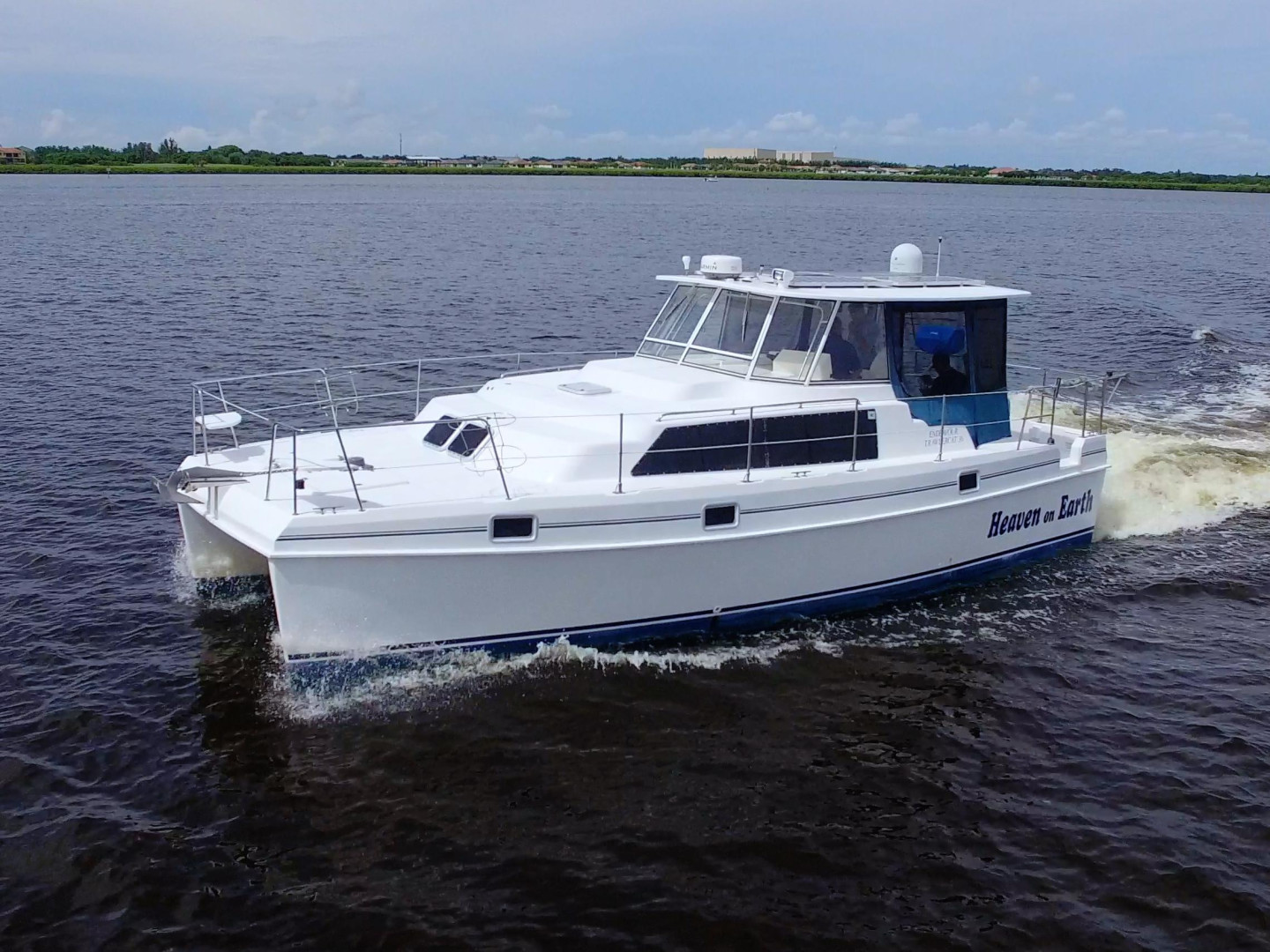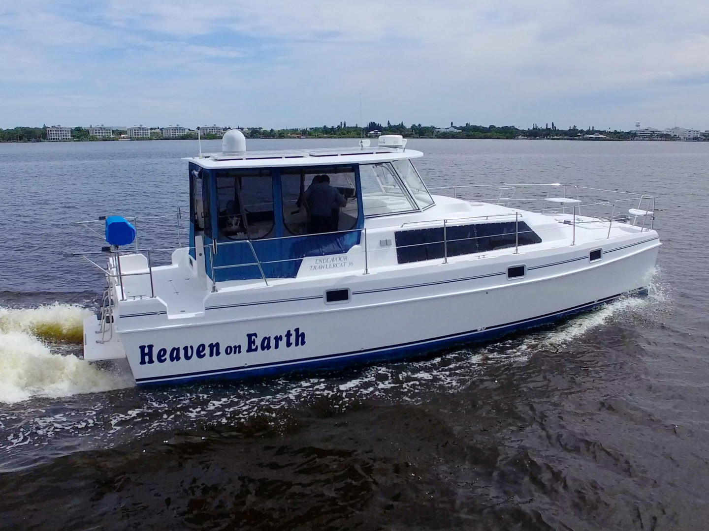 You will not find a better bang for your buck than an Endeavour Cat. Roomy Deck with Wide Walkaround Gunnels with Multiple entries and exits to the dock or the island beach. Large Helm area with full enclosure and screens to keep the breeze going. Interior features a Three Stateroom Two Head layout and full galley in the port hull. There is an additional mechanics room in the Forward in the Starboard hull with Watermaker, Generator Access, and additional part storage.
