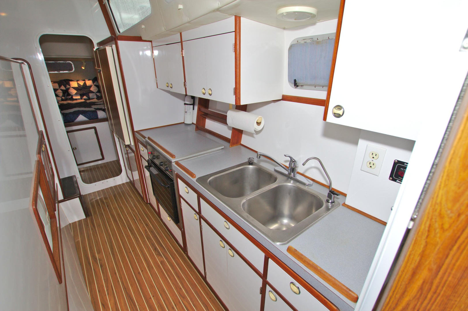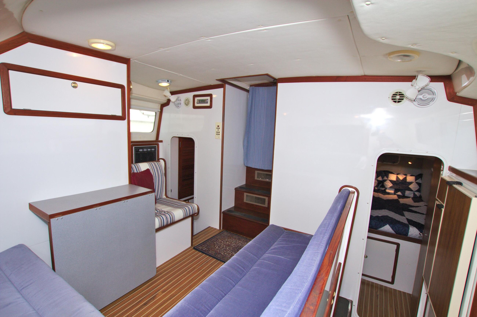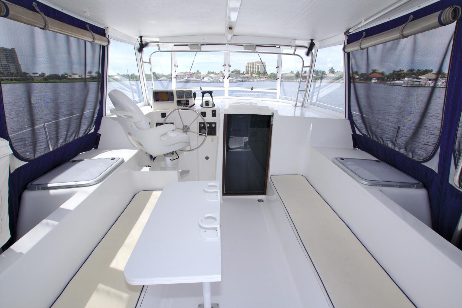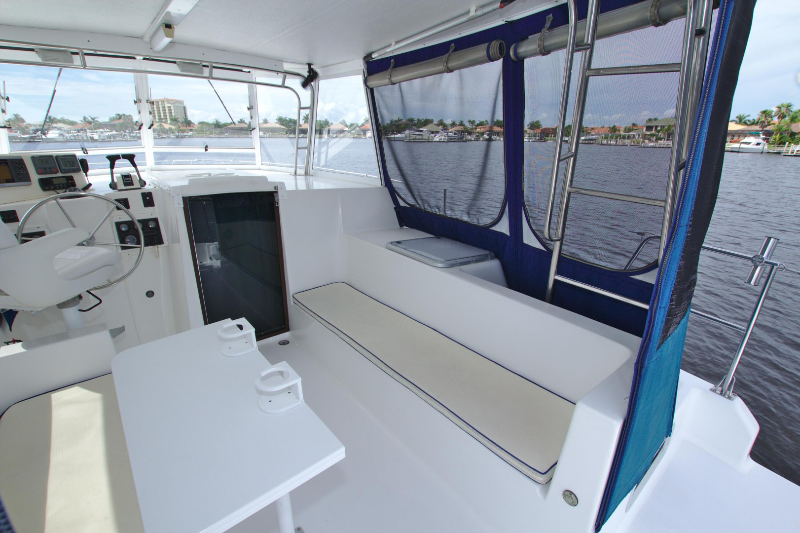 You will not find a better bang for your buck than an Endeavour Cat. Roomy Deck with Wide Walkaround Gunnels with Multiple entries and exits to the dock or the island beach. Large Helm area with full enclosure and screens to keep the breeze going. Interior features a Three Stateroom Two Head layout and full galley in the port hull. There is an additional mechanics room in the Forward in the Starboard hull with Watermaker, Generator Access, and additional part storage.