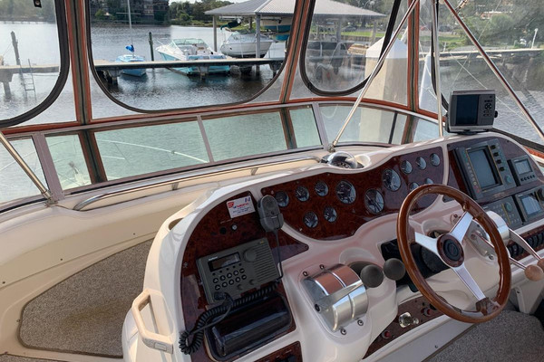 Exceptionally clean 41' Maxum aft cabin sundeck located in the Bahamas.