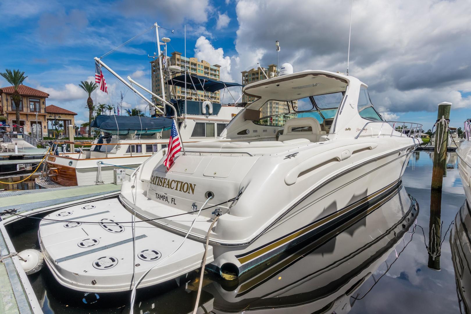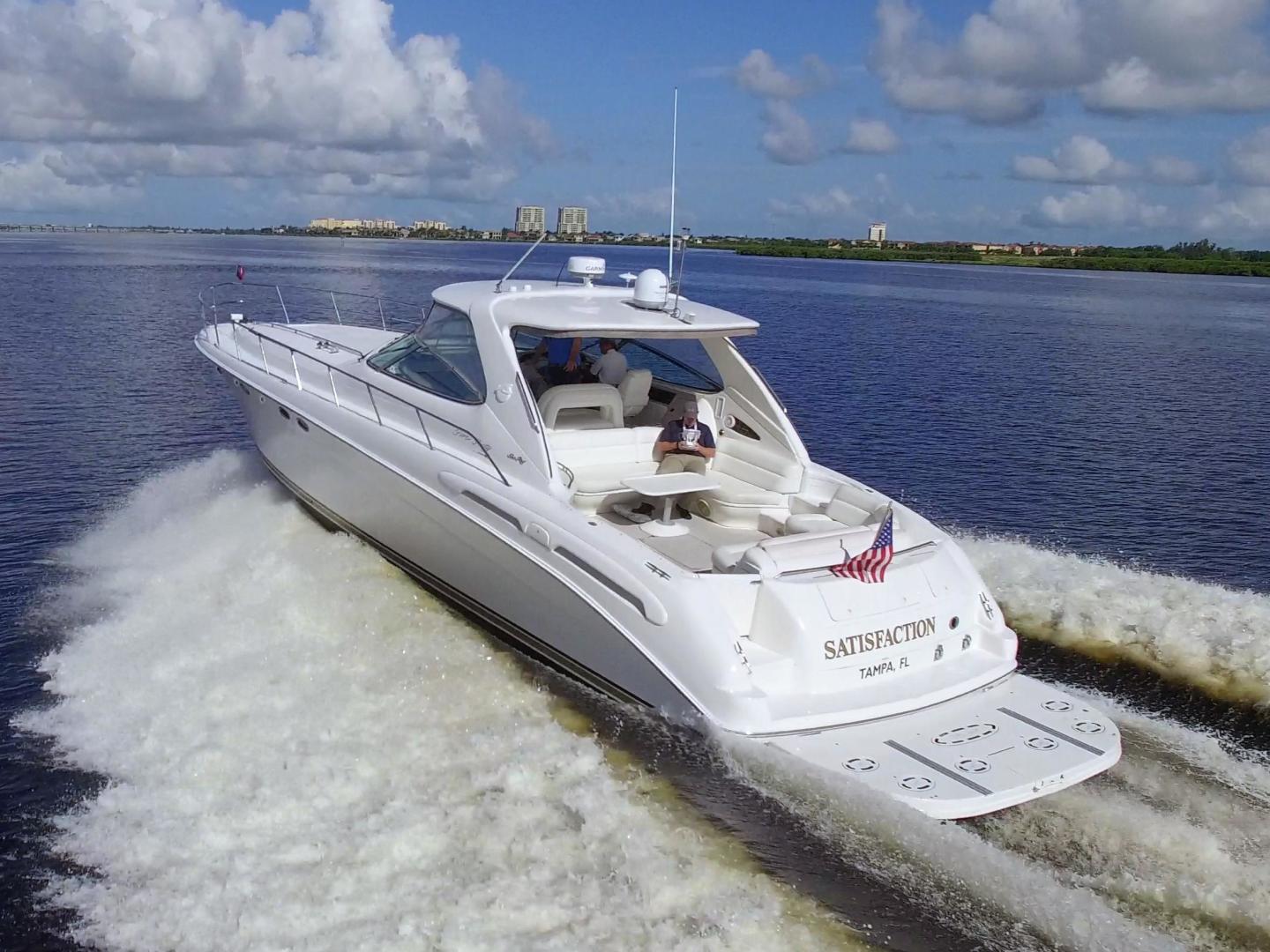 The Sea Ray 540 Sundancer is a 'mega volume' sport cruiser whose muscular good looks and luxurious accomodations can still turns heads. Low hour twin 3196 Caterpillar's 660hp, bow thruster, Two Cockpit/Helm A/C units , HD Sat TV. 'Satisfaction' has recently underwent over $30k in upgrades and maintenance. Recent survey available to qualified buyers.