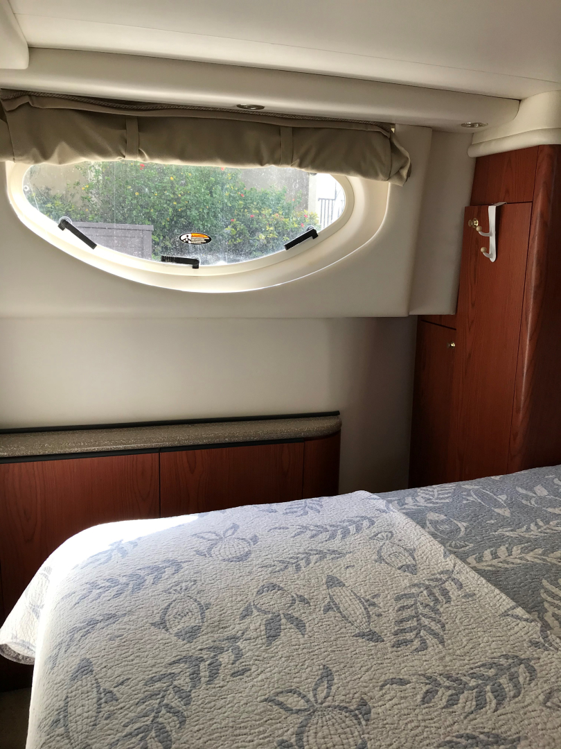 - Queen Sized Island Berth with Deluxe Mattress and Bedding