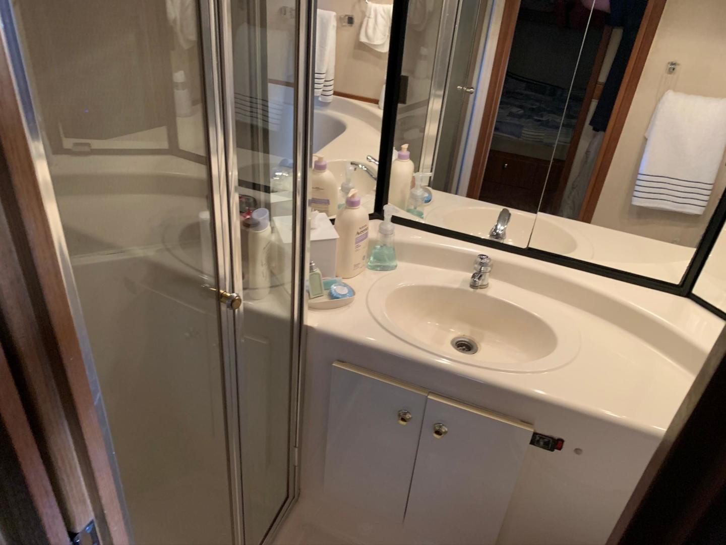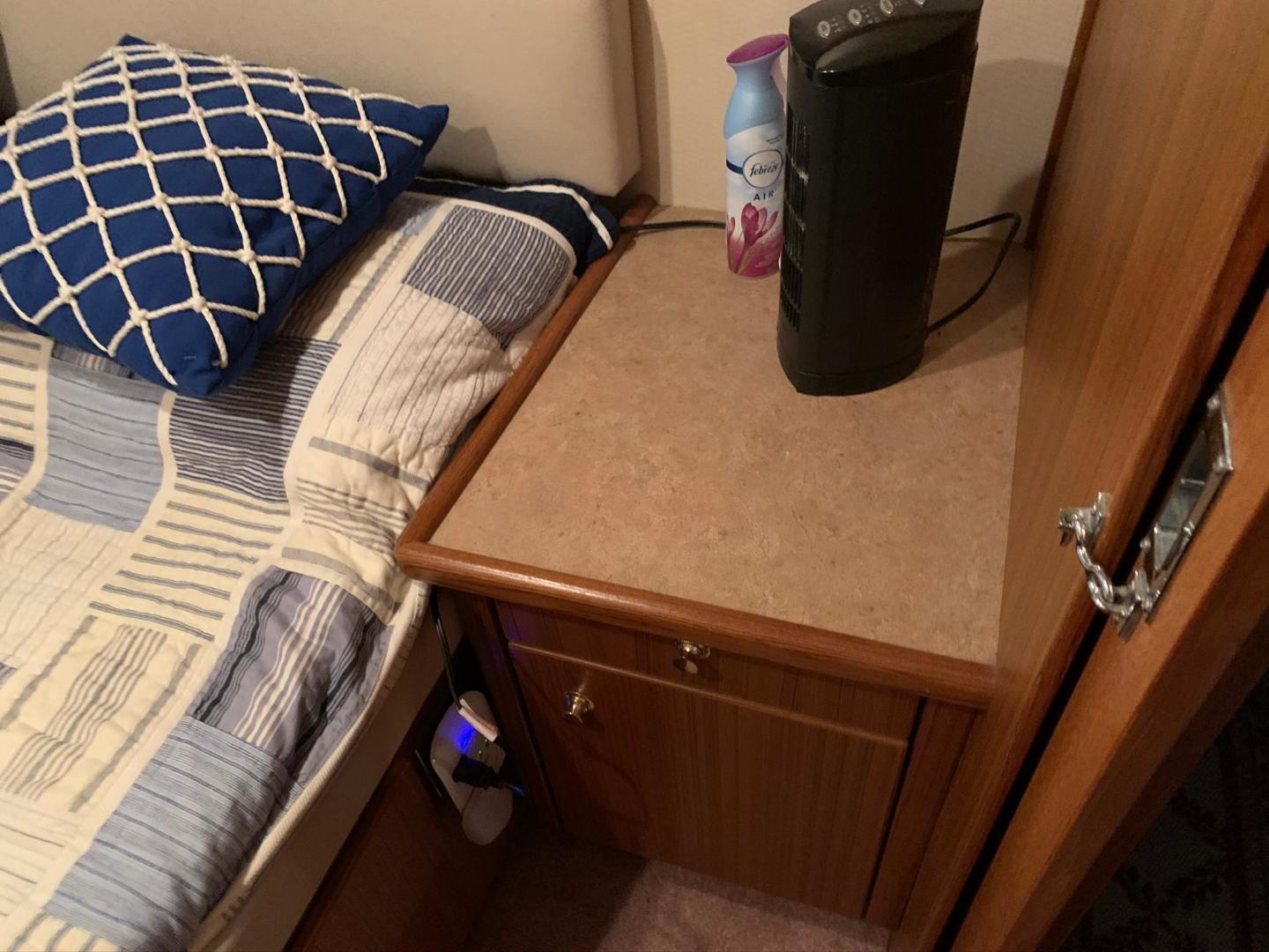 Notable features include bow and stern thruster, washer dryer combo, 2018 10 foot tender, electric grill. Third stateroom currently is open to master stateroom but can be converted back to private stateroom.