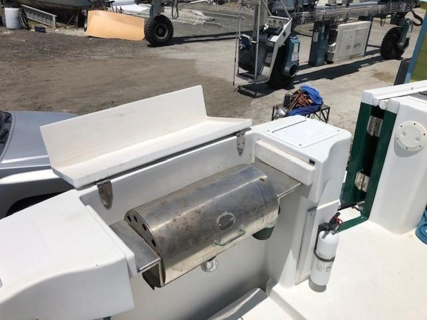 - Built-in Force 10 BBQ Grill with Custom Flip up Transom Cover
