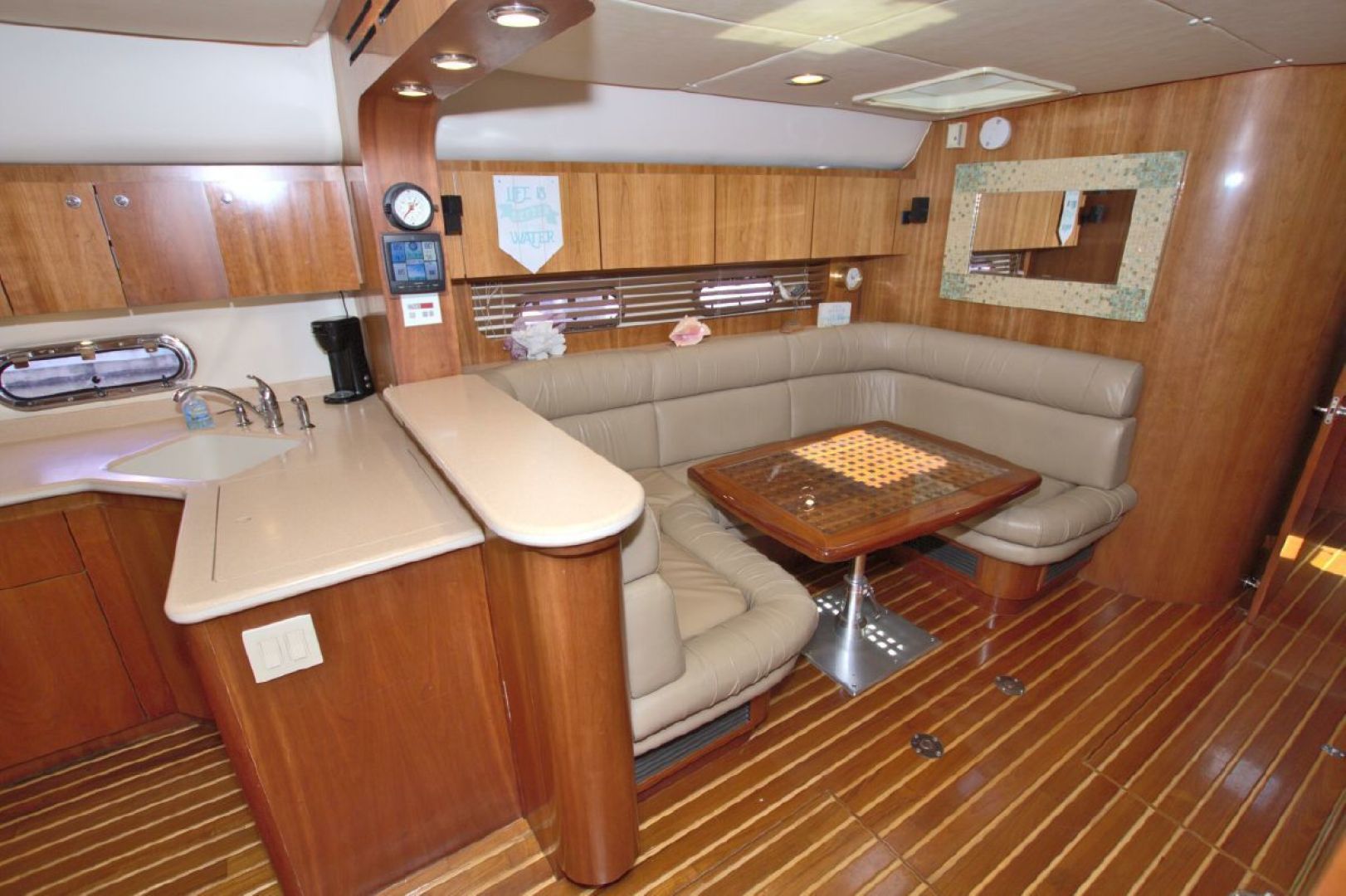 - L-Shaped Leather Seating to Starboard with Storage Below