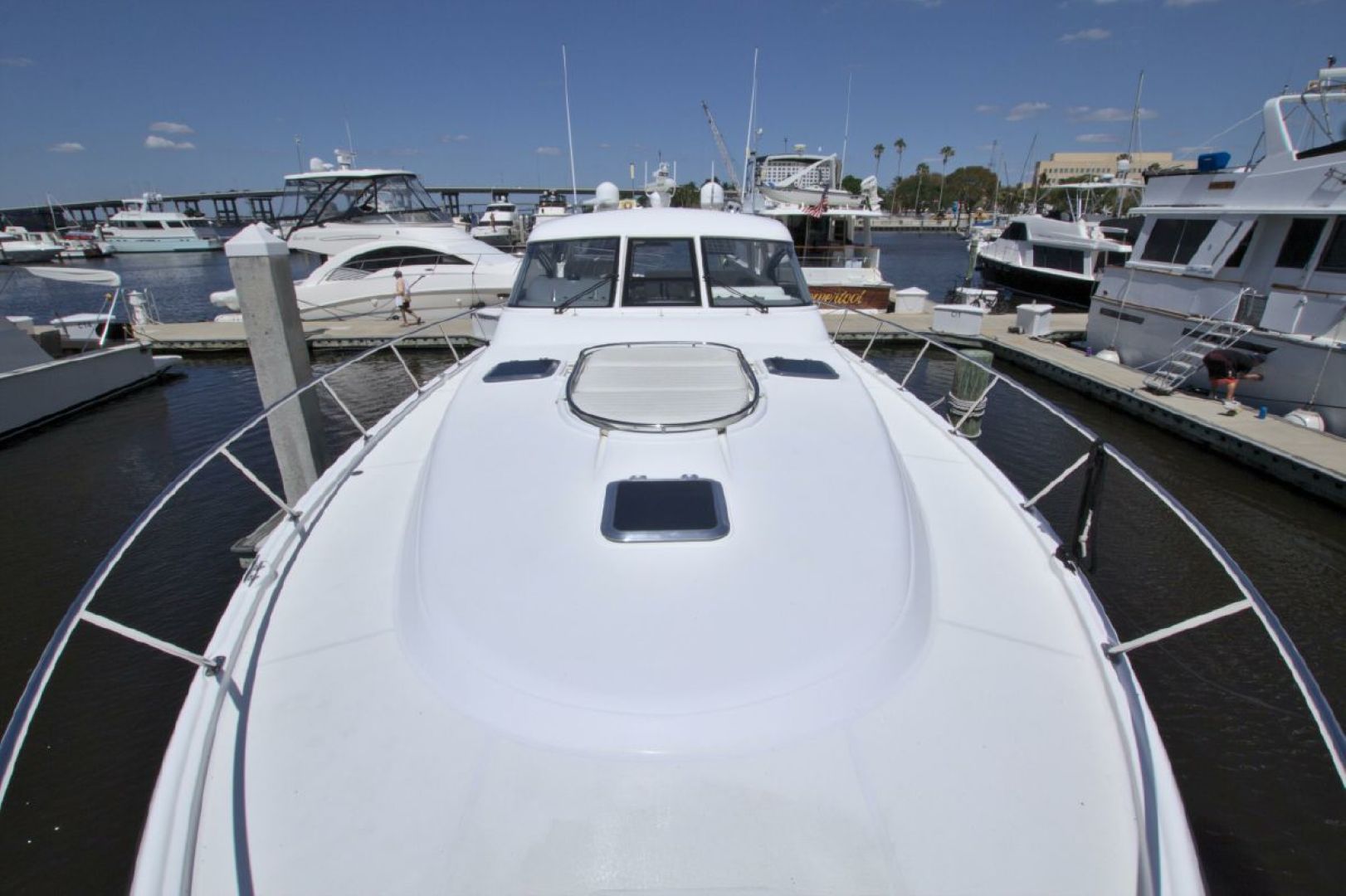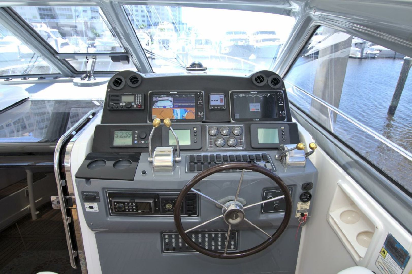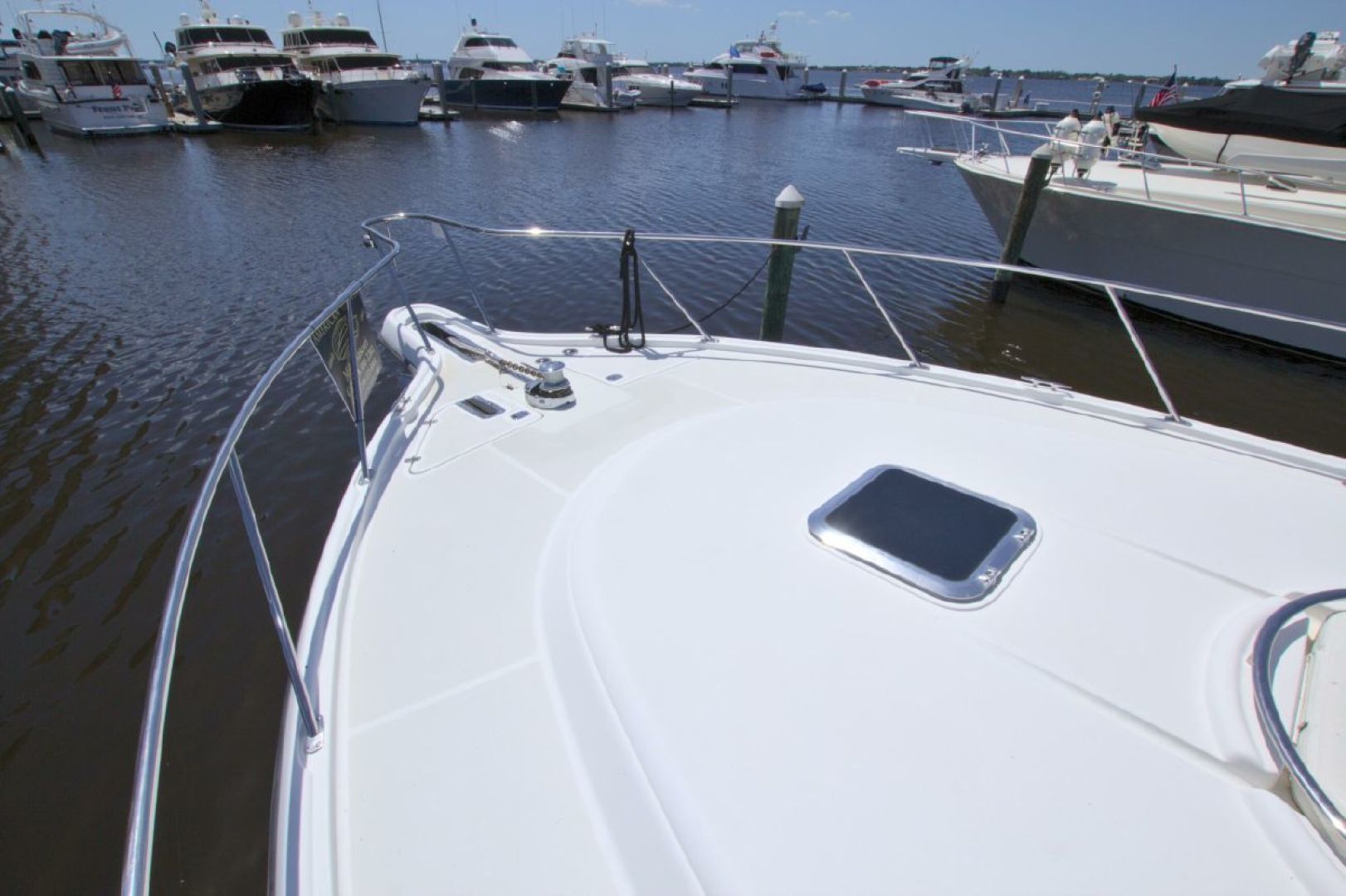 Powerful 800hp 3406 Caterpillar Workhorse Diesels with 2490 hours, 21kw Generator, Bow Thruster. Full Raymarine Package GPS/Chart/Radar/Fish Finder/Stern Camera/AIS, Simrad Autopilot, She has got it All. Factory Hardtop with 3 Sided EZ2CY Enclosure and Air Conditioned Helm Area. Two Stateroom, Two Heads, Full Galley.