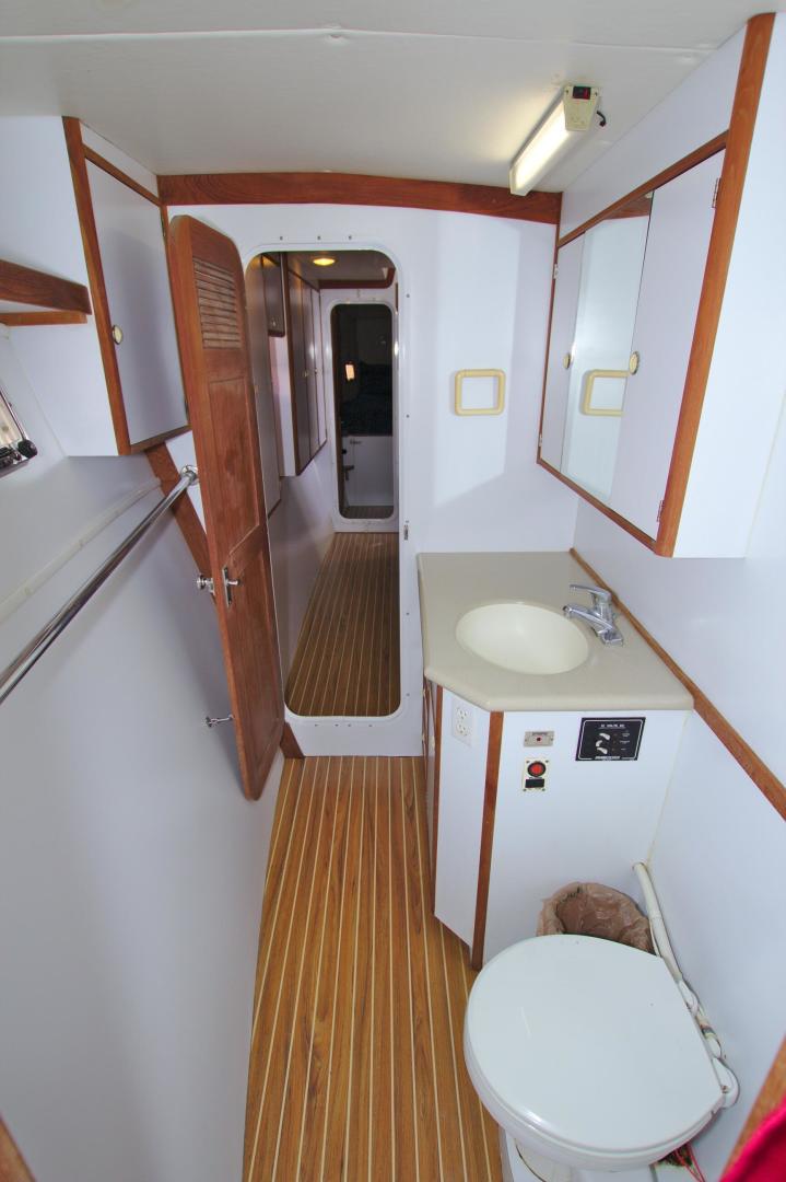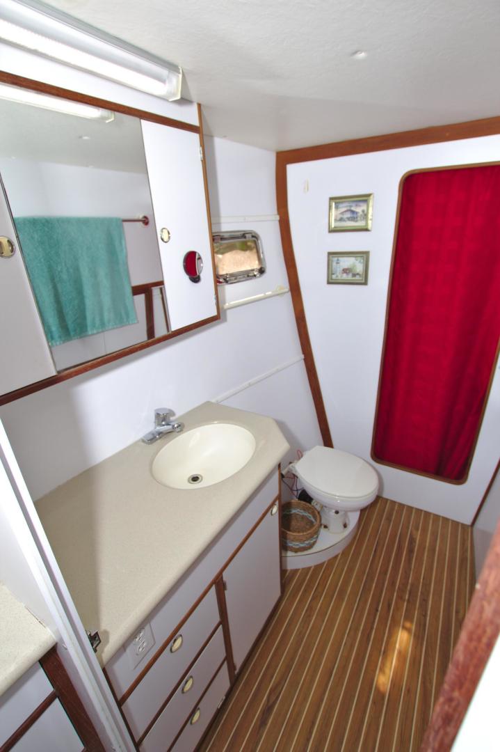 - Full Separate stand-up fiberglass shower stall with overboard pump outs