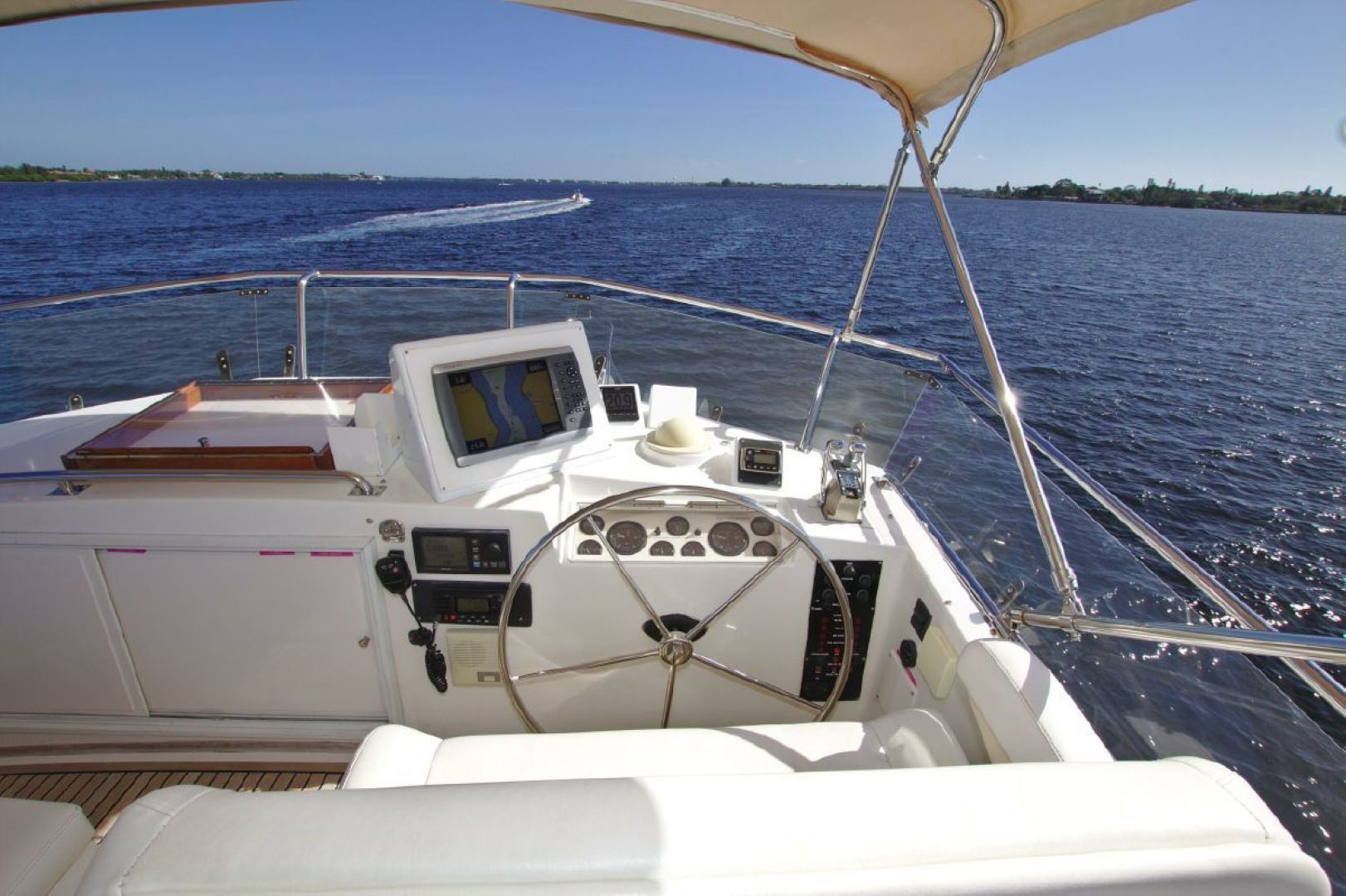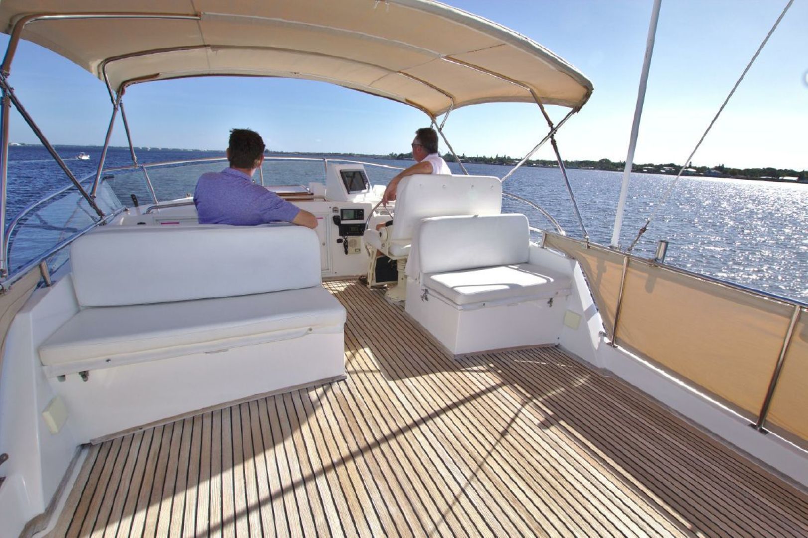- (2) – person adjustable teak helm bench with lift-up teak footrest