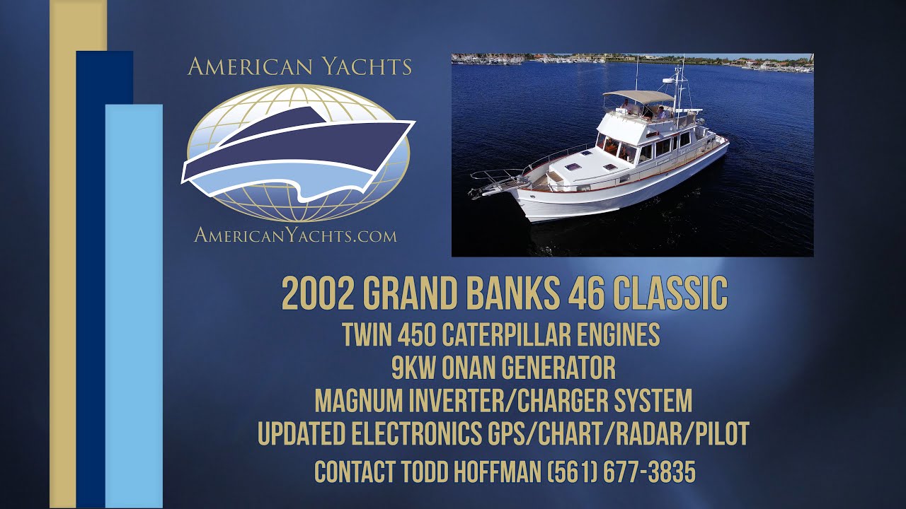 This is a very fine 2002 Grand Banks 46' to come on the market! Current Owner bought this beautiful vessel in very good condition and then went to work to make it outstanding. Upgrading every system that needed attention, added 3 new Air Conditioners, Total new unit for freezer and refrigeration ,Bottom done in 10/2019, exterior teak varnish three coats in Nov. 21' Complete annual service from Cat including new water pumps and a New 310 Highfield Dinghy w/15 Hp. fuel injected Tohatsu 2021. 20 hr. service done.