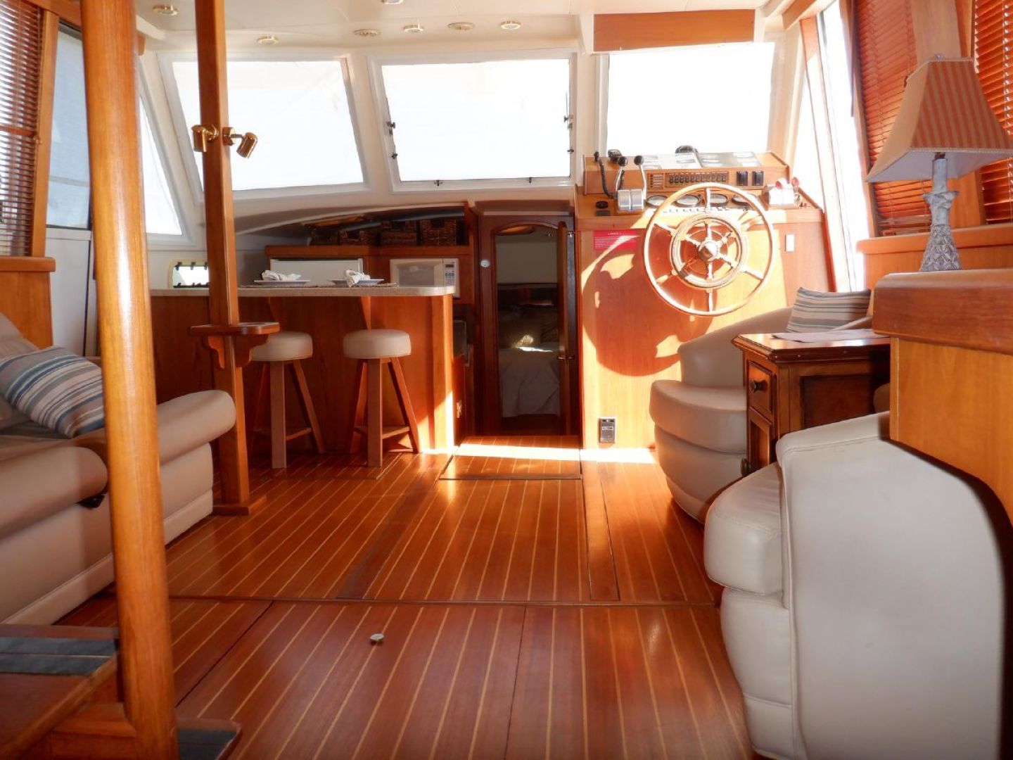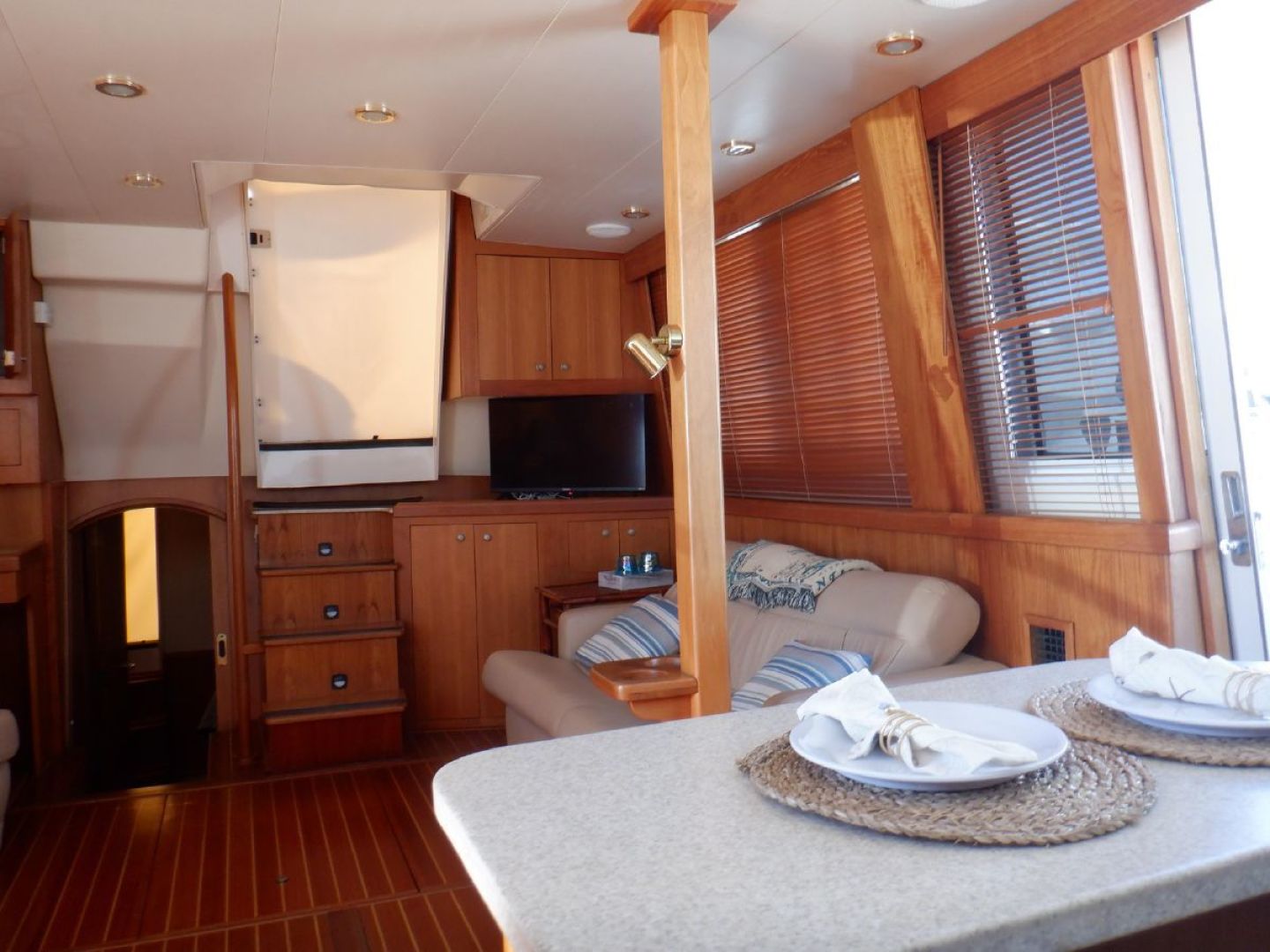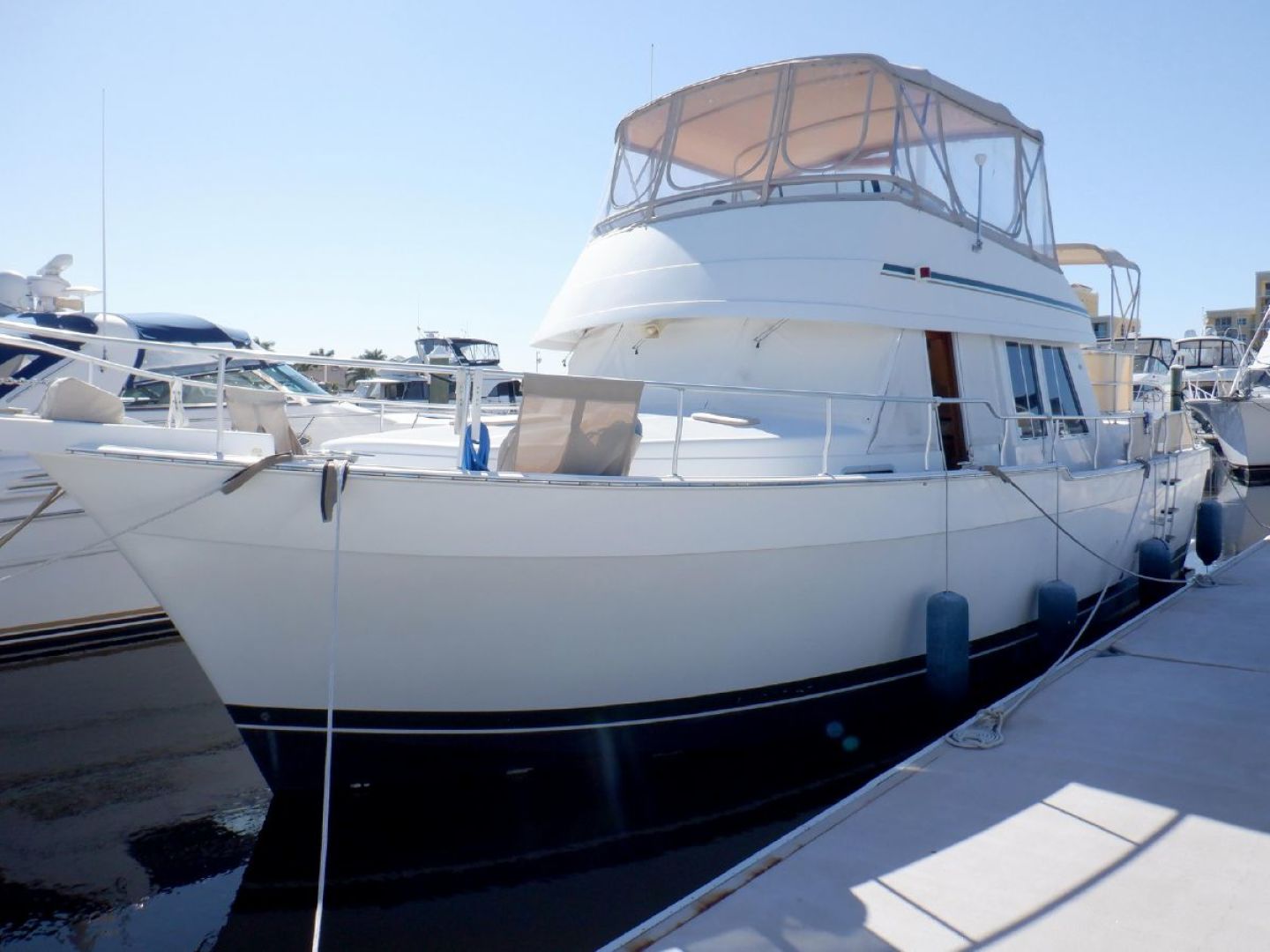 Only 2002 430 Mainship Aft Cabin Trawler on the Current Market and The Most Sought after Two Cabin Layout, Twin Caterpillar Diesels, Generator, Raymarine GPS/Chart/Radar, Tri-Zone Air Conditioning, Full Flybridge Enclosure, Bimini on Aft Sudeck, Will Not Last.