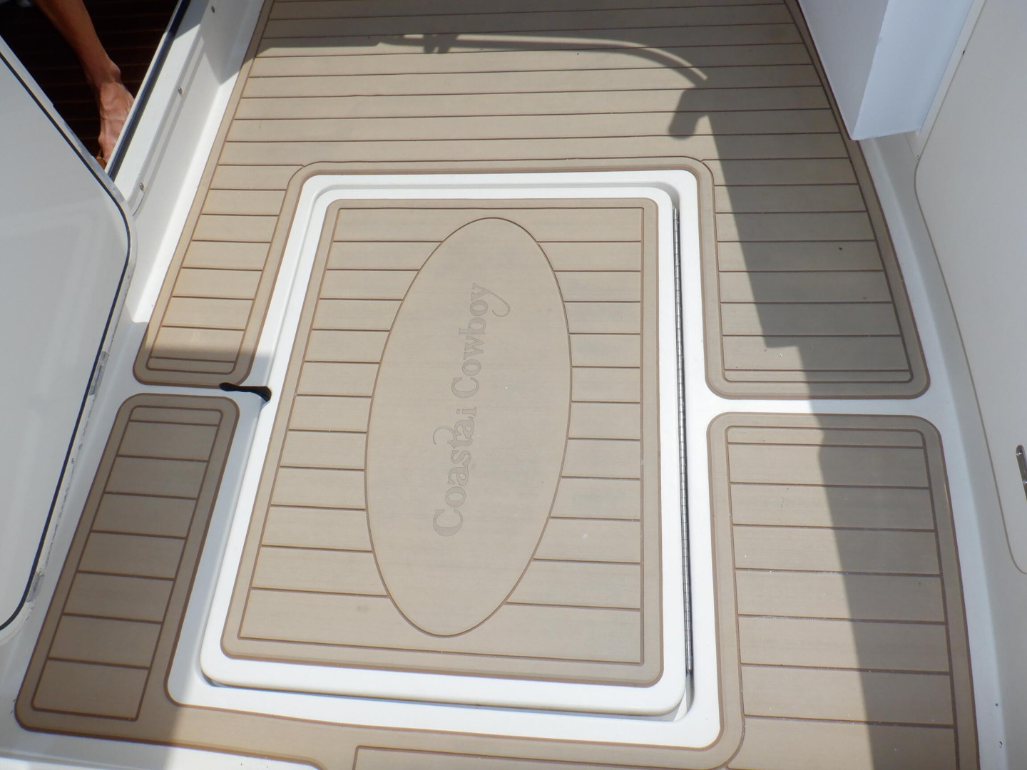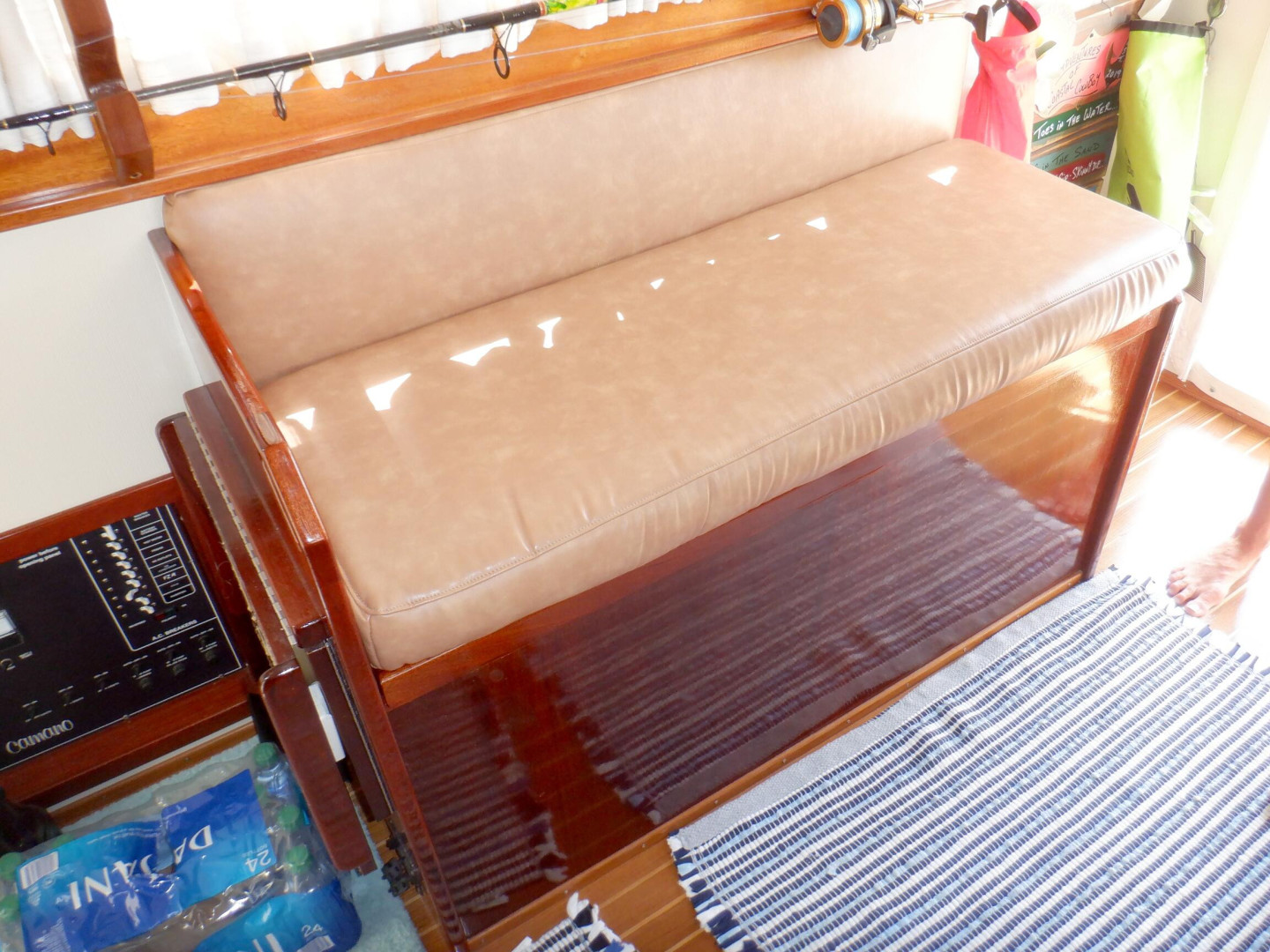 - Custom bench seat with internal storage and helm seat (flip up)