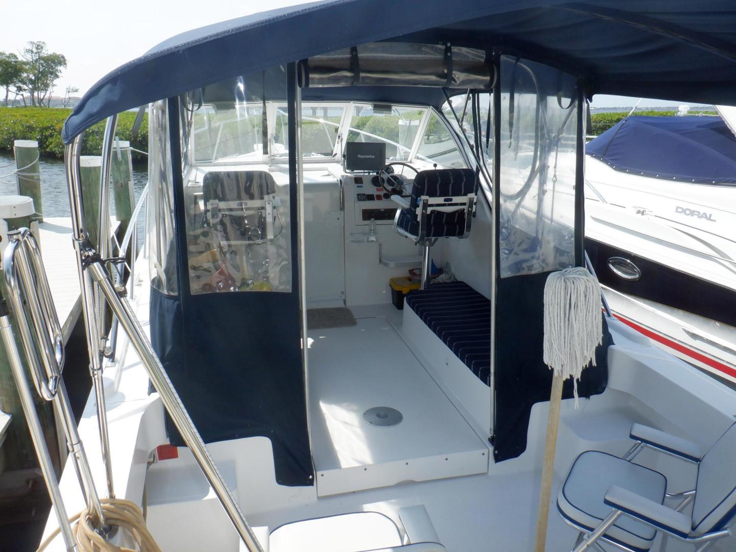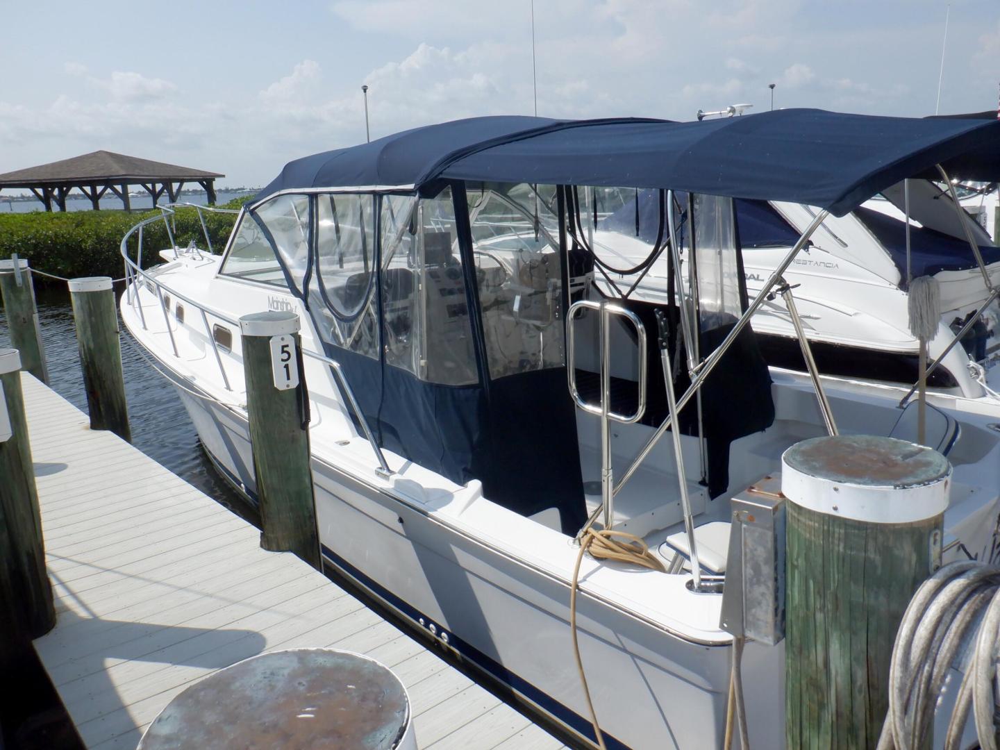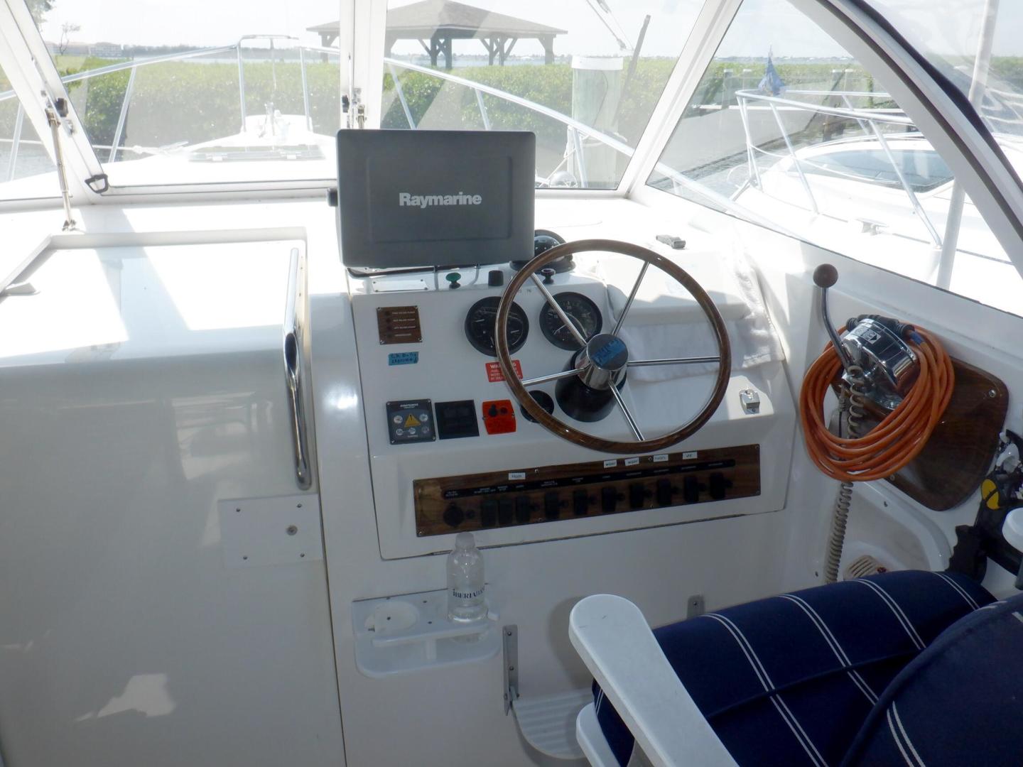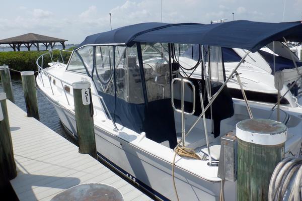 Powered by a 240hp Yanmmar Diesel with only 505 original hours, Bow Thruster, Air Conditioning, Raymarine E120w GPS/Chart, Complete Canvas with Aft Cockpit Bimini, Super Clean, Low Hours, Shallow Draft. Engine Room Looks New