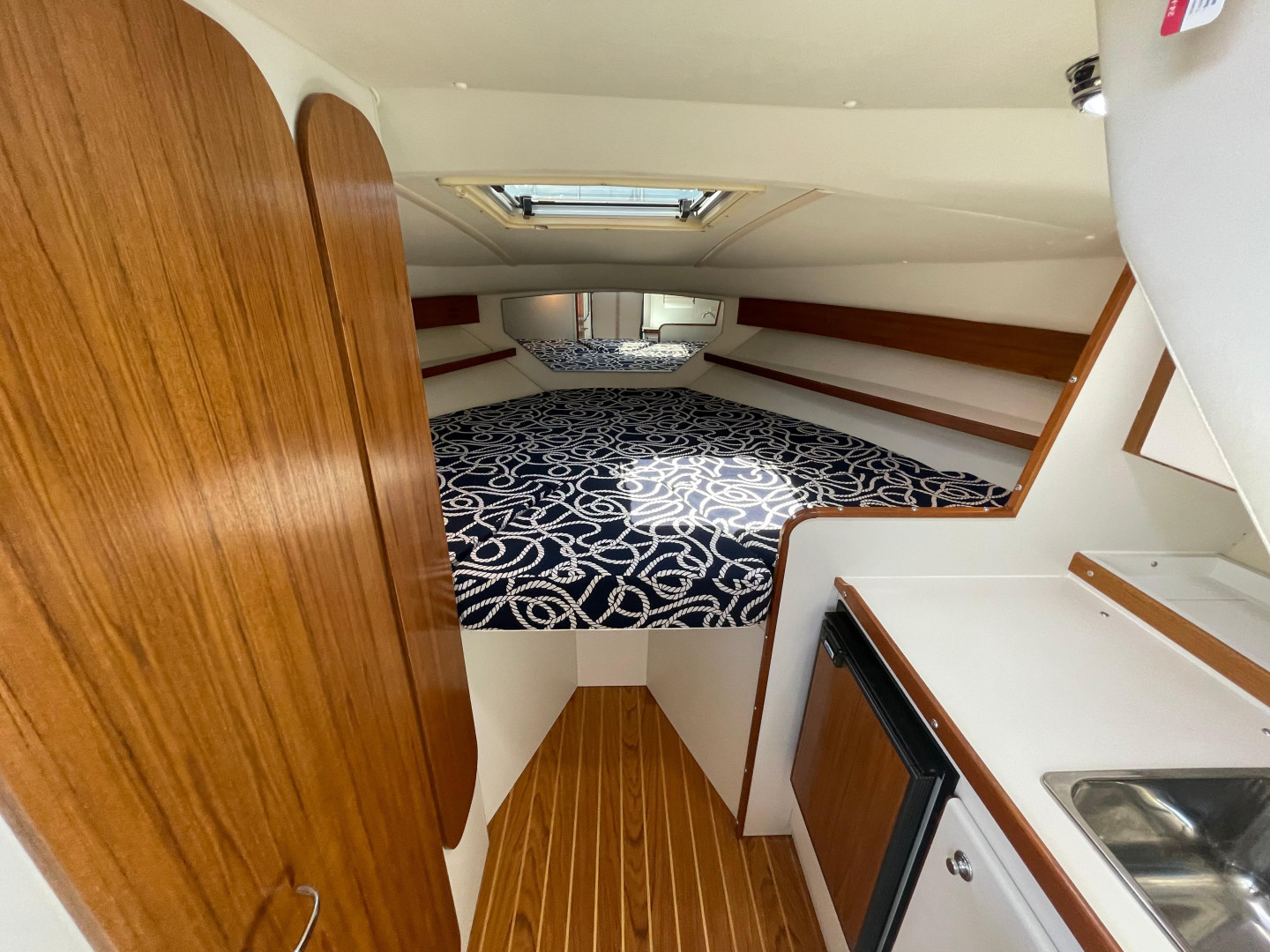 - Vee Berth with Filler Cushion and Storage Below