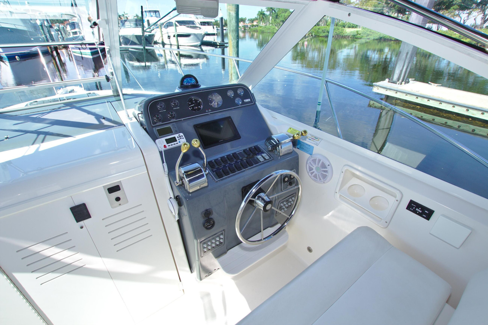 Twin 230hp Freshwater Cooled Volvo Diesels, Garmin GPS/Chart/Fish Finder, All New Sunbrella Canvas, 400watt Inverter, Trim Tabs, Battery Charger, 30amp Shore Power, This is the Cleanest 29' Tiara you will ever see.