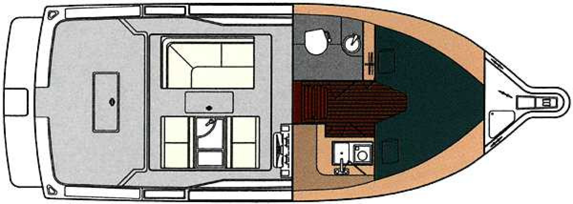 - Aft Facing Bench seating to Starboard with Storage Below