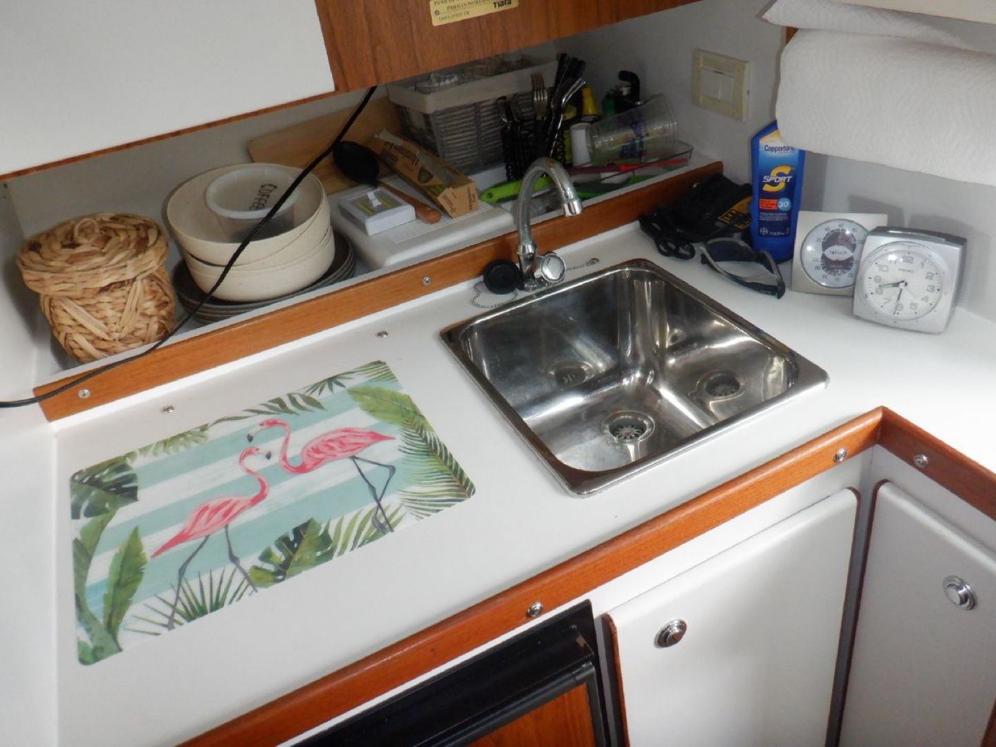 - Wet Bar with Sink, Faucet, Cutting Board, and Storage Below