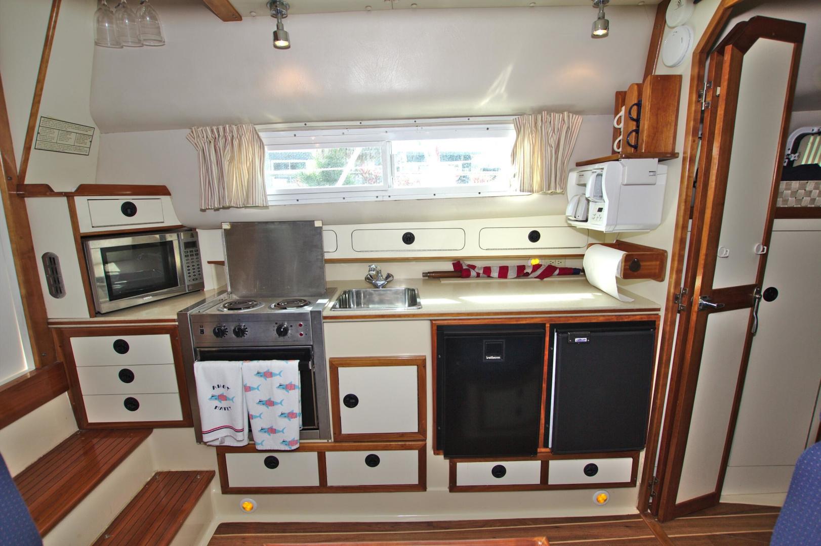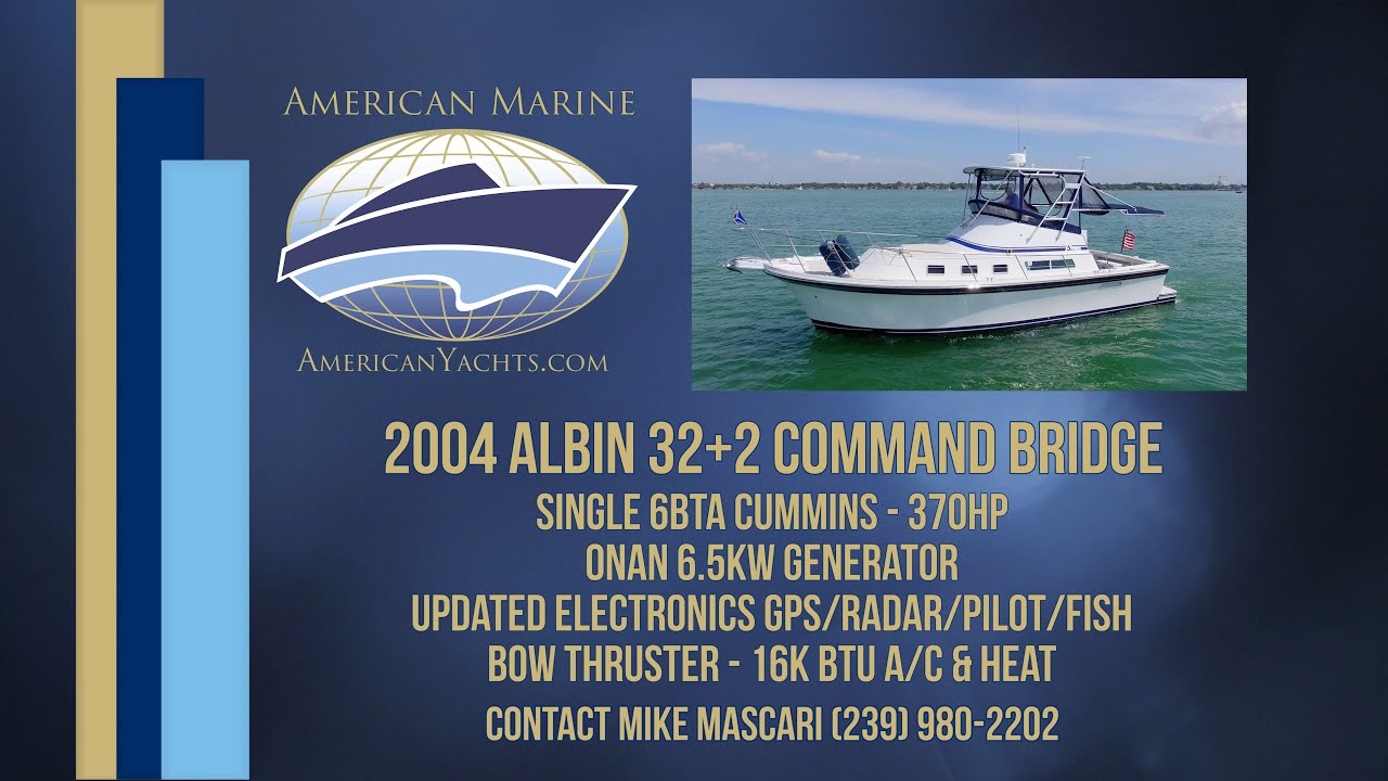 Powered by a 370HP Cummins Diesel with only 1460hrs, 6.5kW Onan Genset only 265hrs, 16,000 BTU A/C & Heat, Custom Canvas & Aluminum Frame Work, Garmin GPS/Fish Finder, Garmin Radar, Auto Pilot, VHF, Vetus Bow Thruster, Windlass, Too Much to List, This is has the 35' Albin interior, with the 32+2 deck layout.