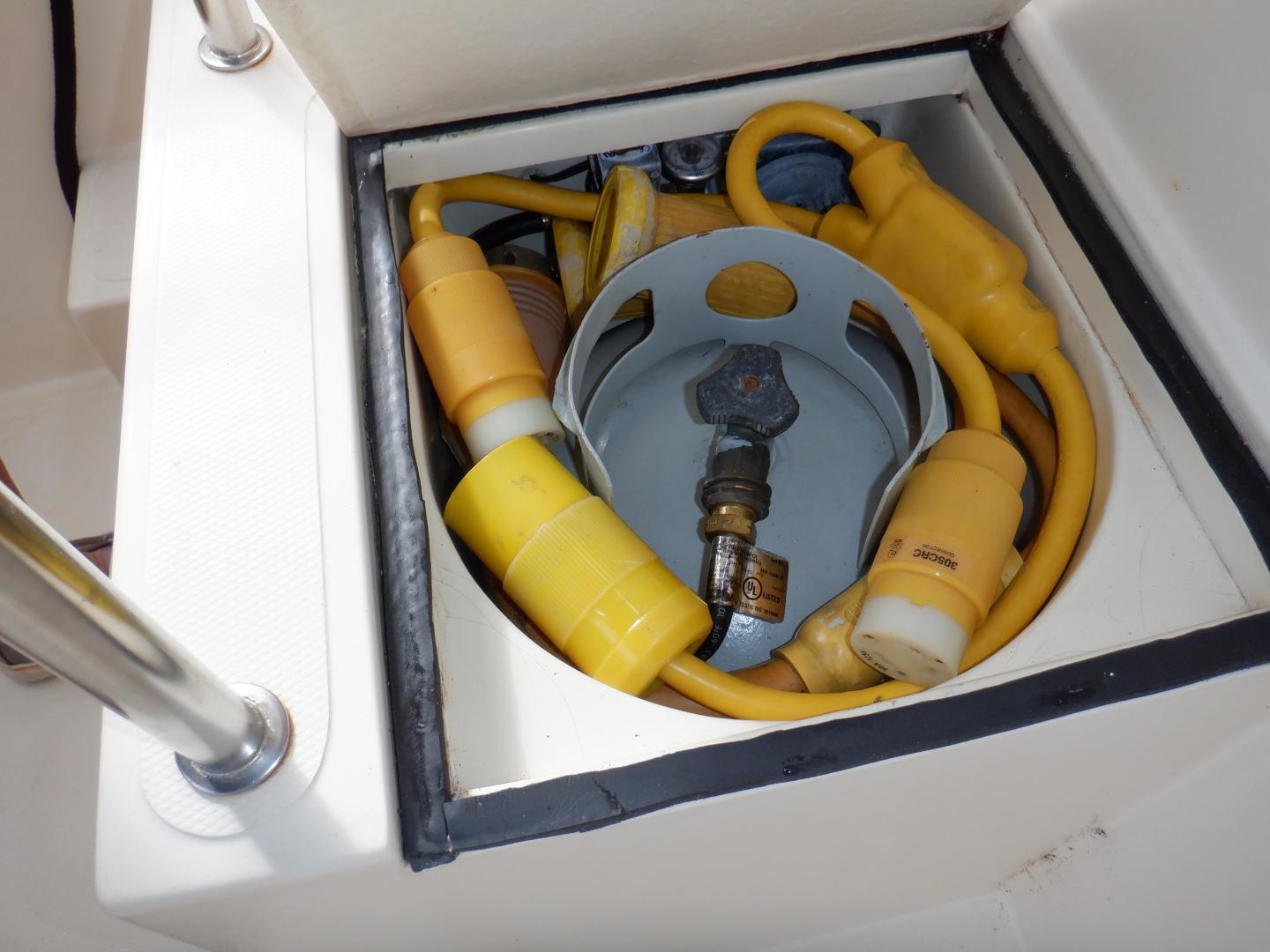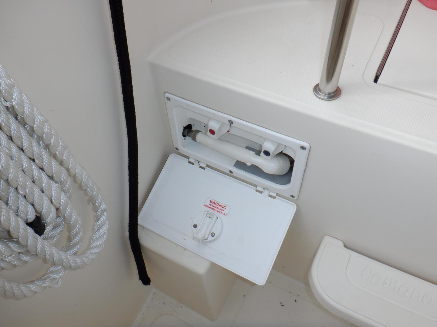 - Transom Shower: hot/cold handheld in cockpit