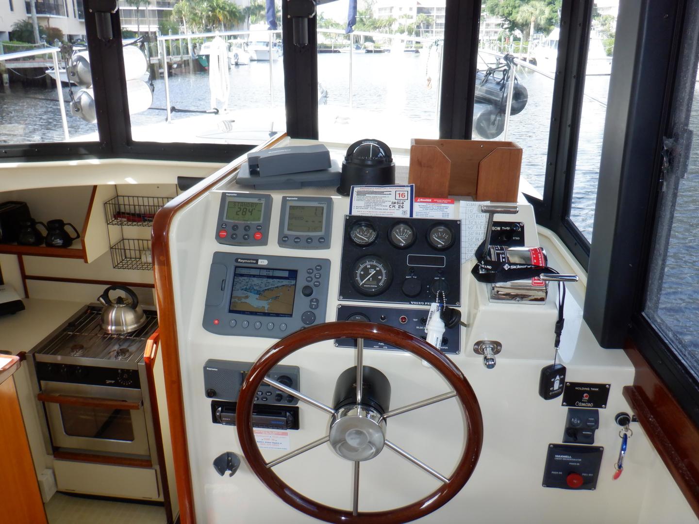 Exceptional Vessel – 200Hp Volvo with 640Hrs, Bimini Top with Full Enclosure, A/C and Heat, Bow & Stern Thrusters with Remote, Raymarine Hybrid Touch GPS, Auto Pilot, VHF, Tri-data, Windlass, All LED lighting, Dual EU2200i Honda Generators, Very Nice Vessel.