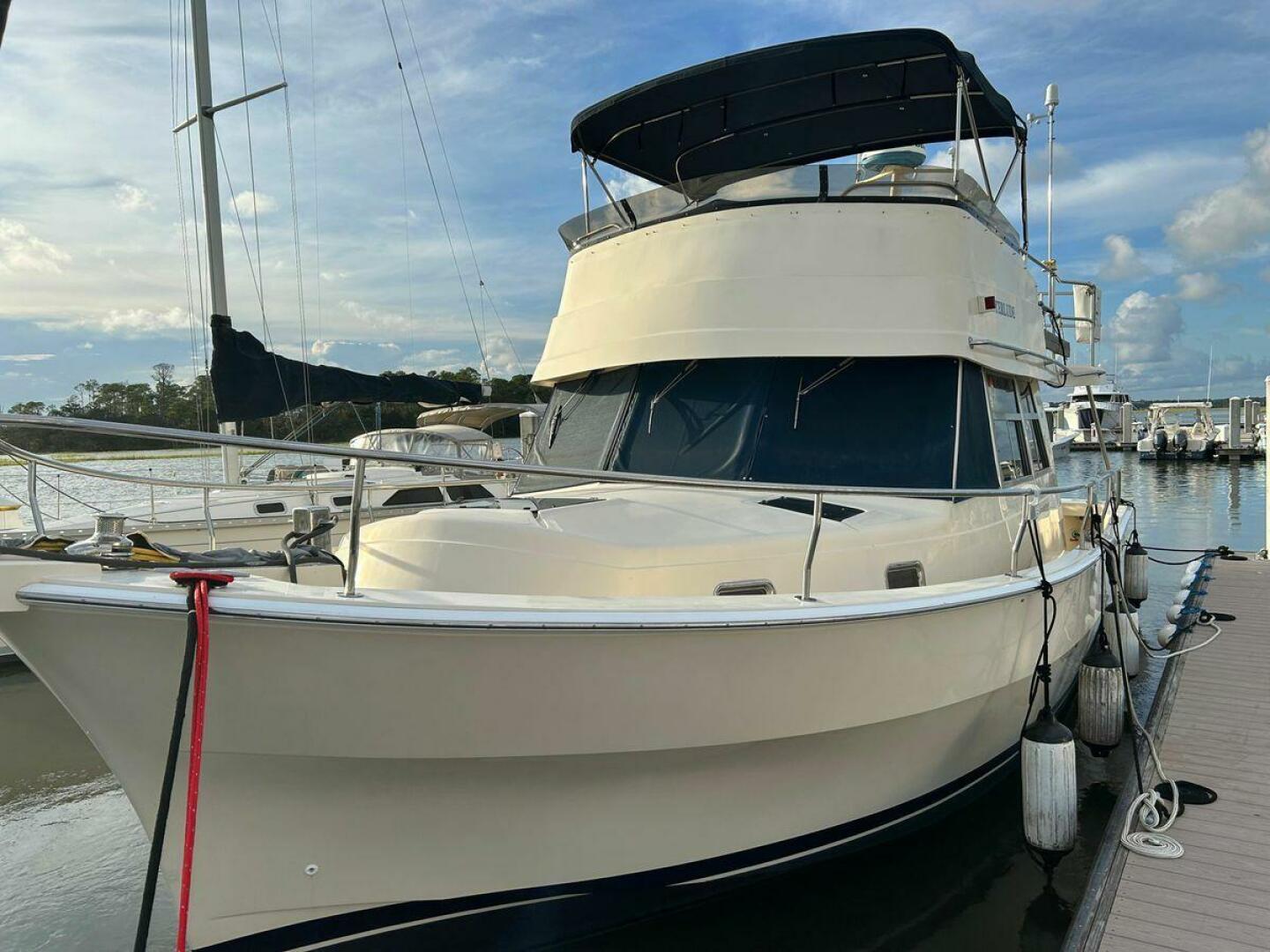 Single 370 Yanmar Diesel with 940hrs SMOH, 8kw Kolher Generator, Raymarine GPS/Chart/Garmin GPS/Chart, Furuno GPS/Radar/Pilot, Bow Thruster, Bimini Top with 3 Sided Enclosure, Solar Panels with Solar Charger, She is Ready for her next owner.