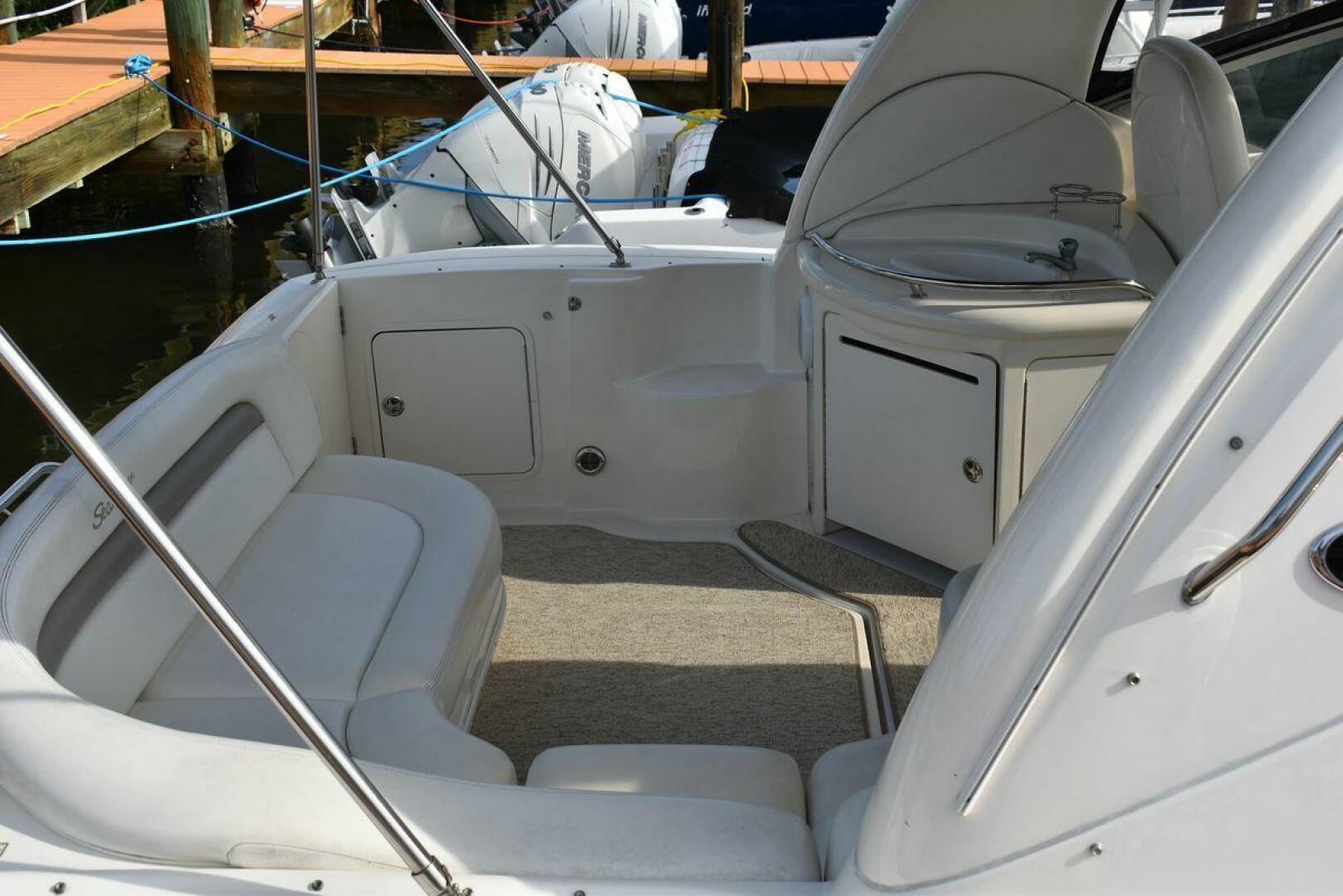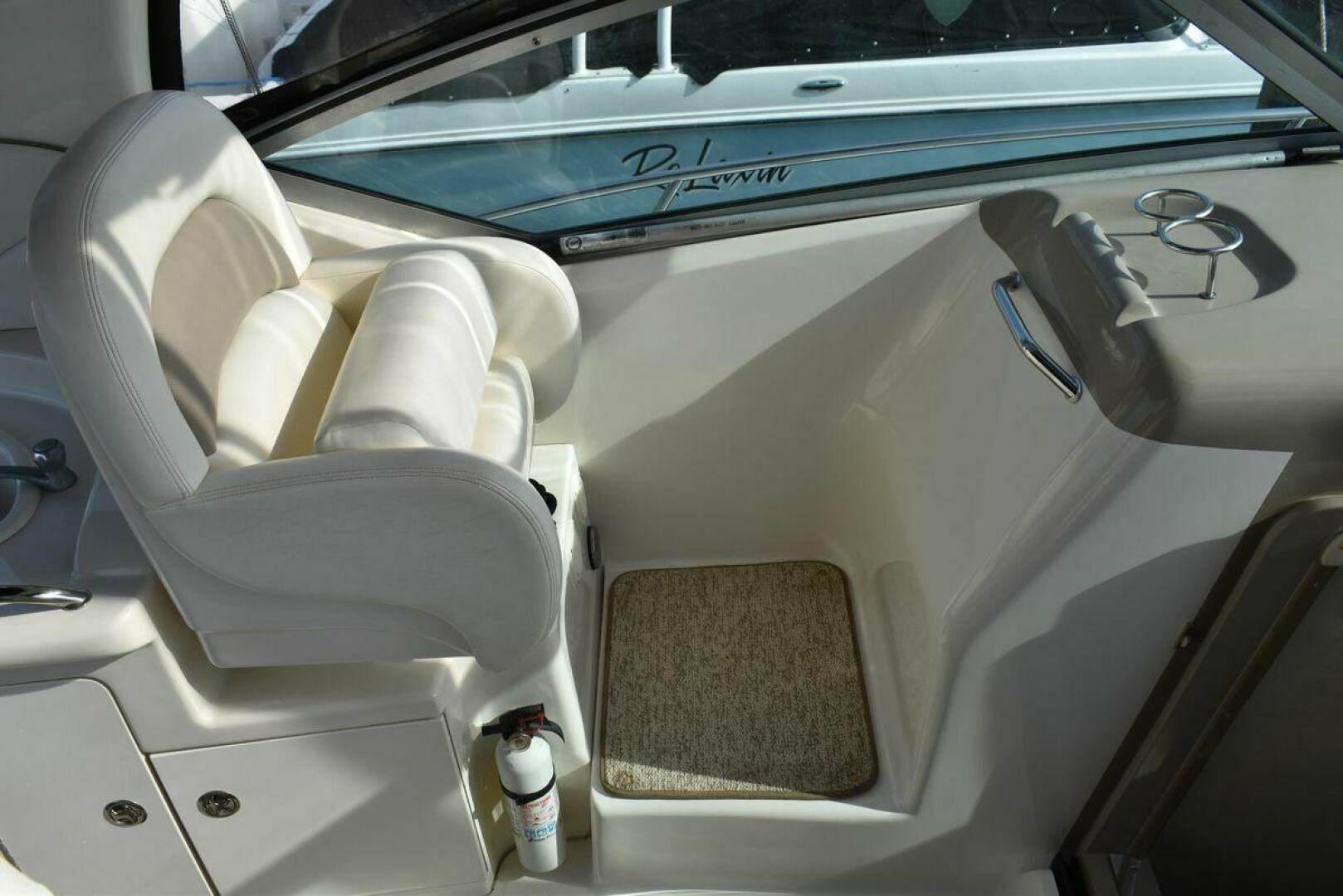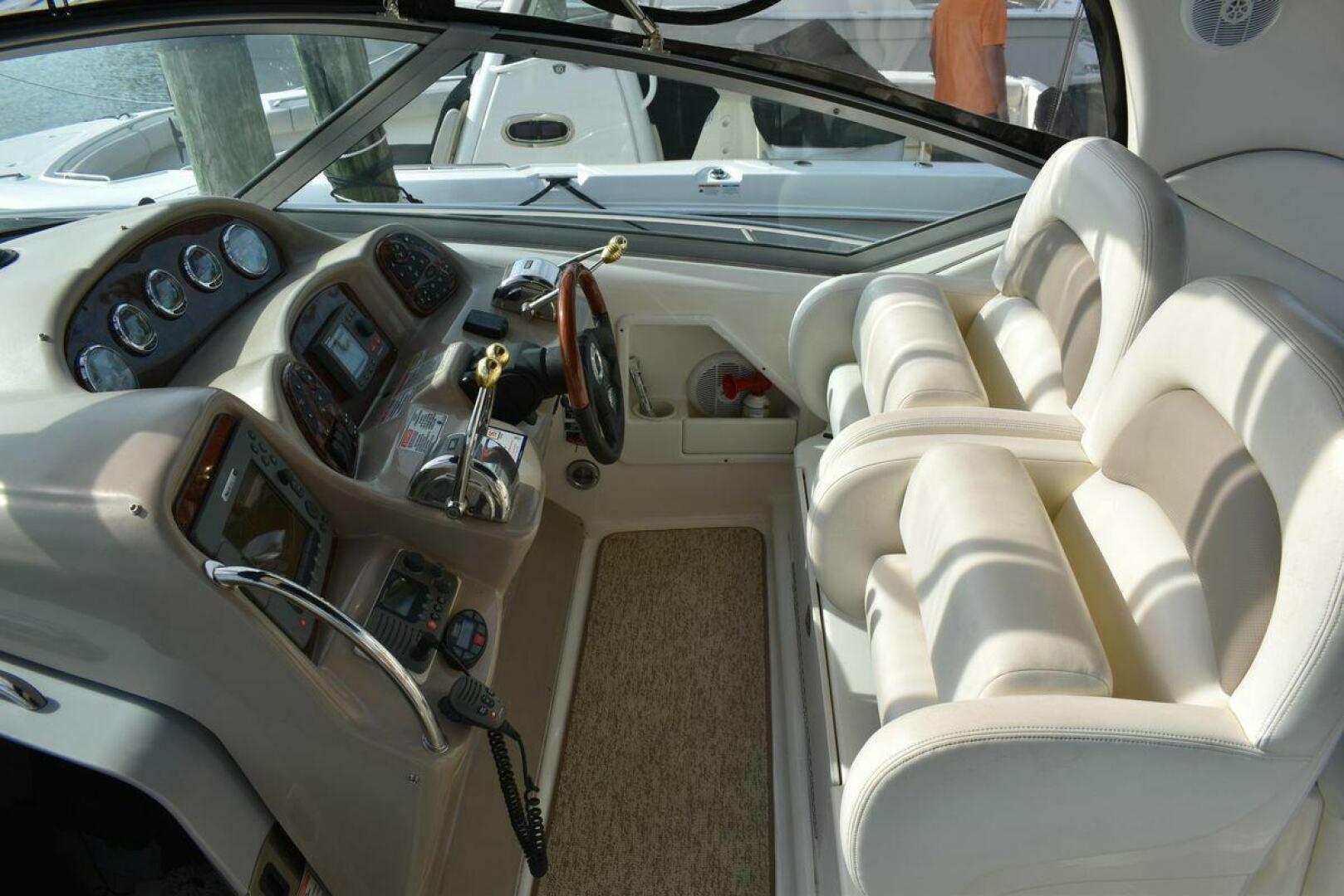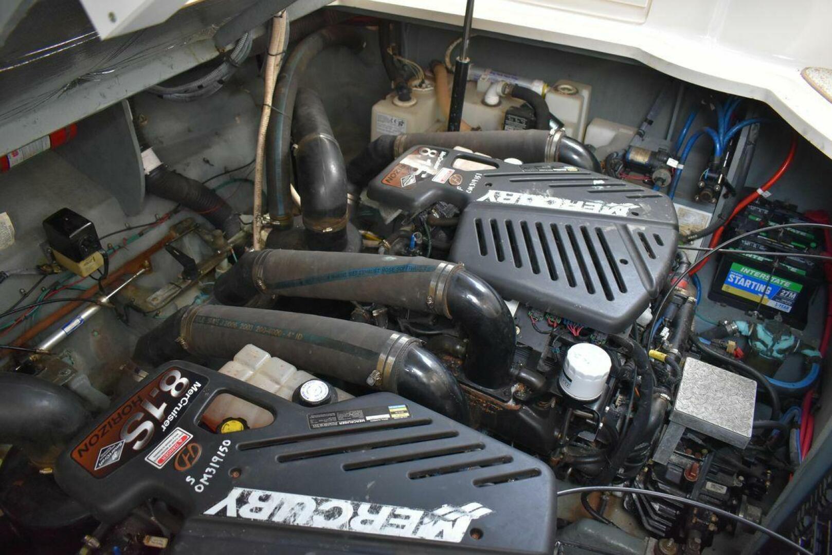 This example of the popular Sea Ray 340, shows like new. The hull is spotless, enclosure & bimini recently replaced. The deck carpet was recently replaced, cockpit cushions are in excellent condition without any sun damage. Autopilot, Depth sounder, Color Garmin GPS with Radar, 45 Gallon Pressure hot & cold-water system. Powered with twin reliable 370 hp Mercruiser Horizon 8.1, (635hrs and 641hrs Respectively) with 225 gallons of fuel, so you can cruise without worries for fuel stops. This boat has just completed a bottom job, both engines & generator servicing. Recent battery replacement. An electric windlass is included and works.