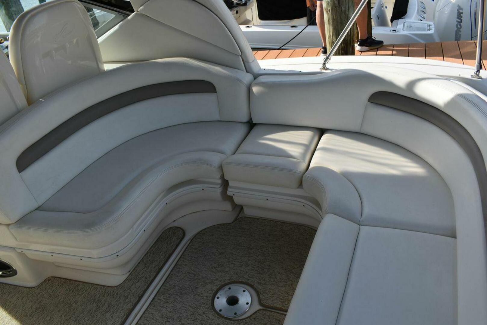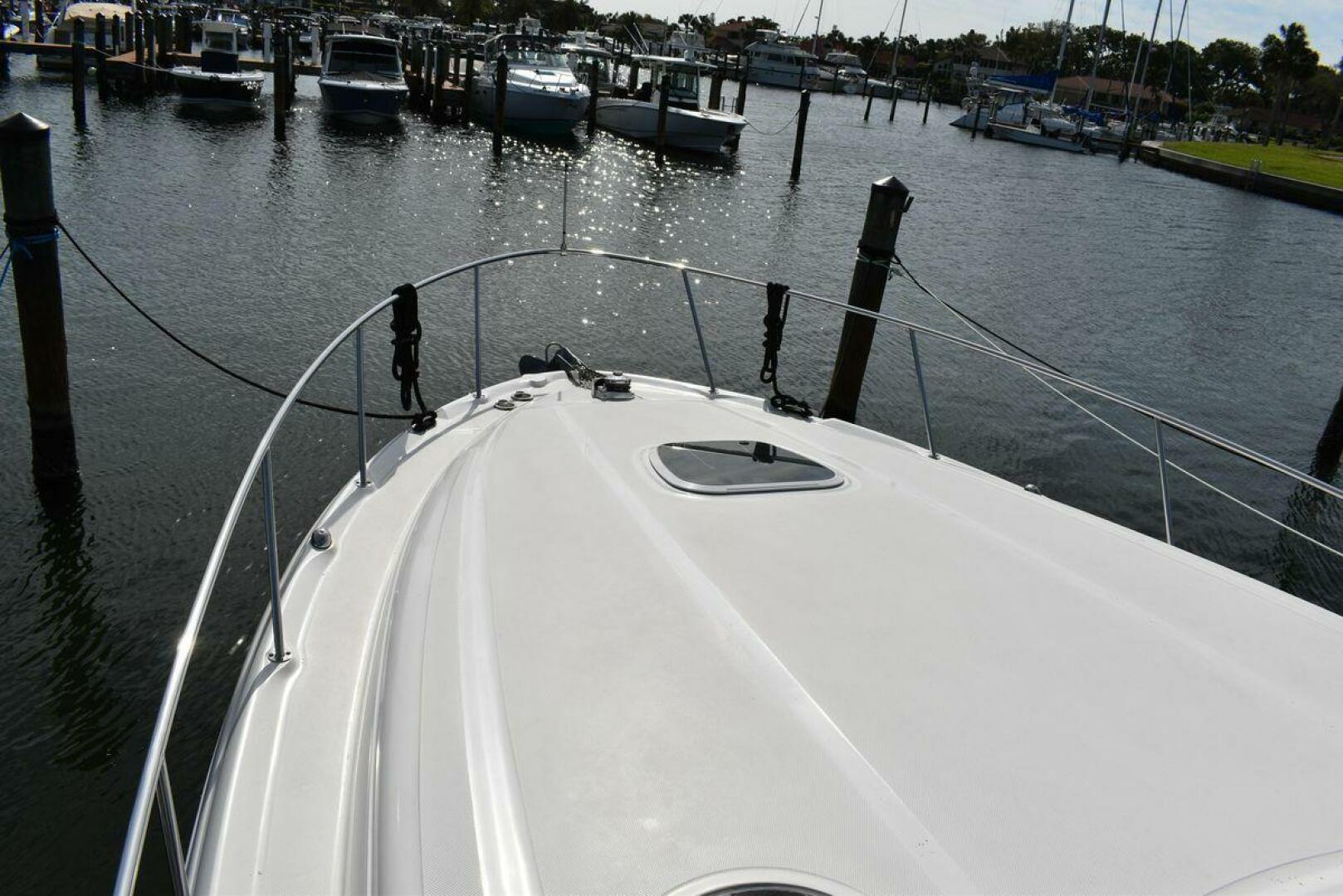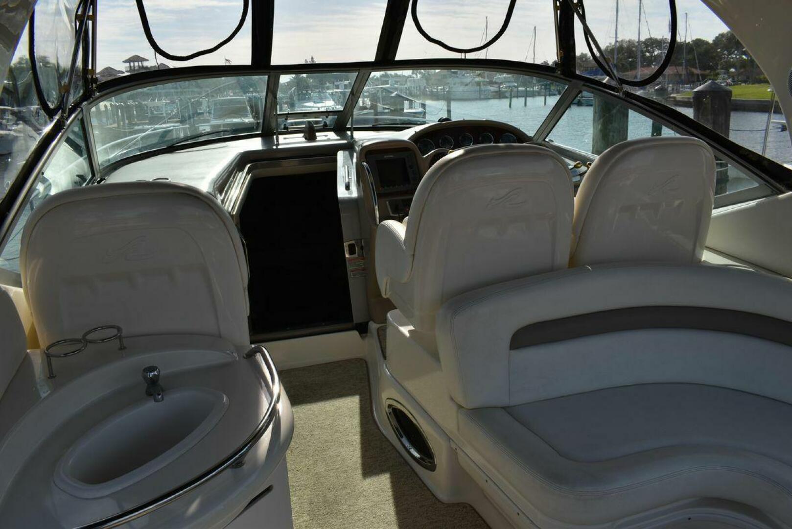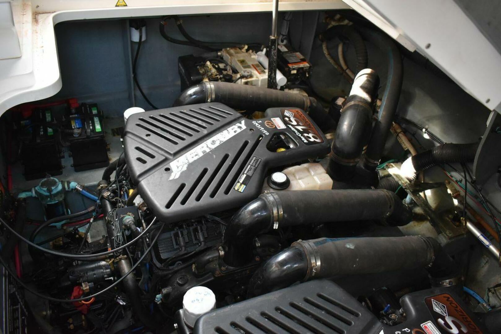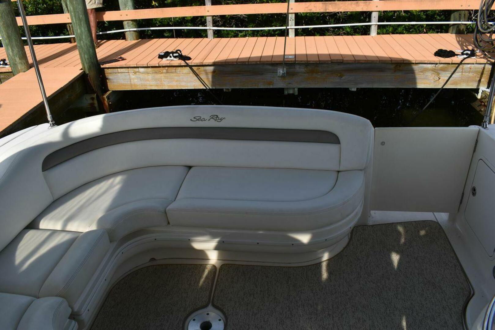 This example of the popular Sea Ray 340, shows like new. The hull is spotless, enclosure & bimini recently replaced. The deck carpet was recently replaced, cockpit cushions are in excellent condition without any sun damage. Autopilot, Depth sounder, Color Garmin GPS with Radar, 45 Gallon Pressure hot & cold-water system. Powered with twin reliable 370 hp Mercruiser Horizon 8.1, (635hrs and 641hrs Respectively) with 225 gallons of fuel, so you can cruise without worries for fuel stops. This boat has just completed a bottom job, both engines & generator servicing. Recent battery replacement. An electric windlass is included and works.