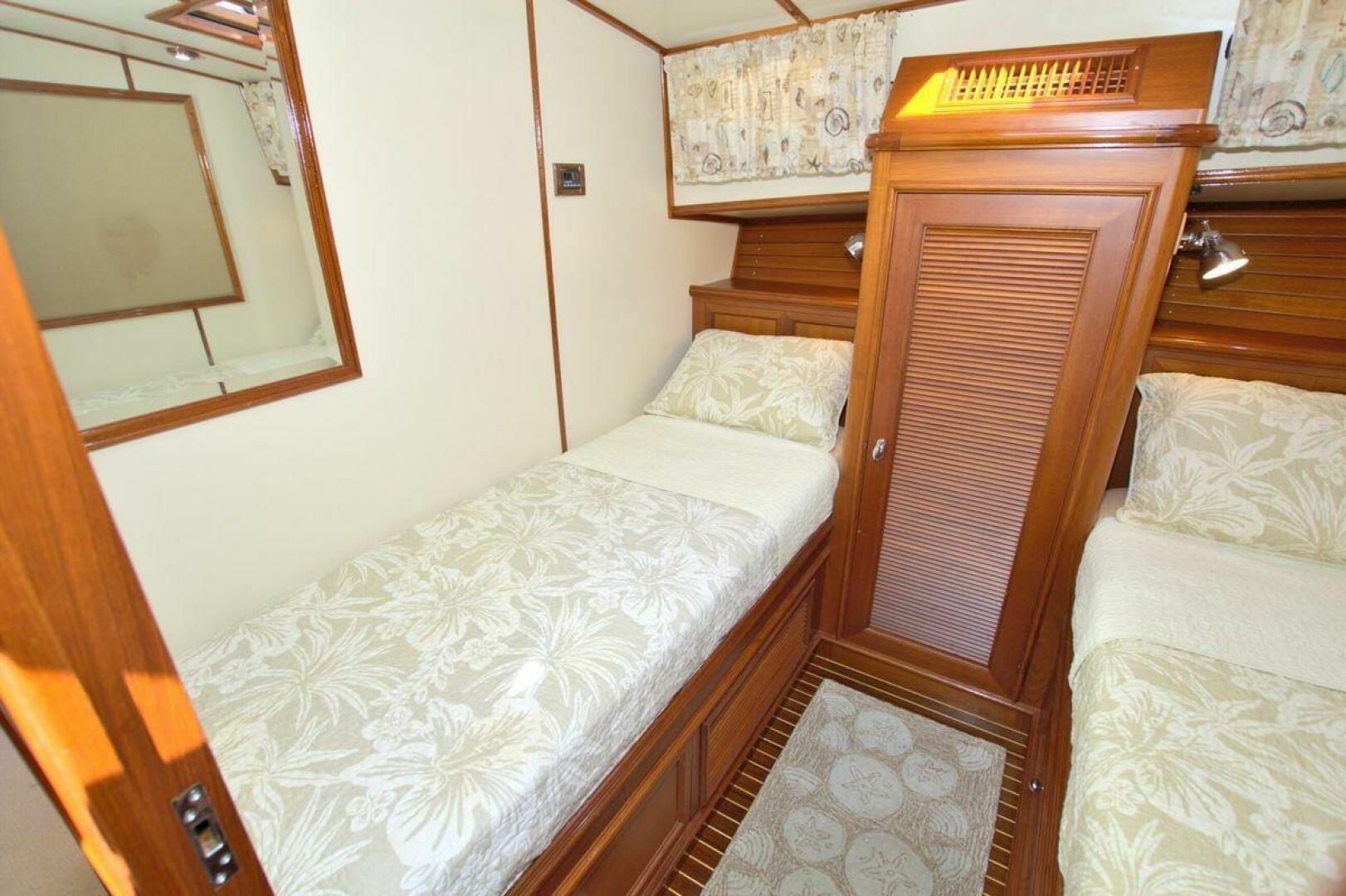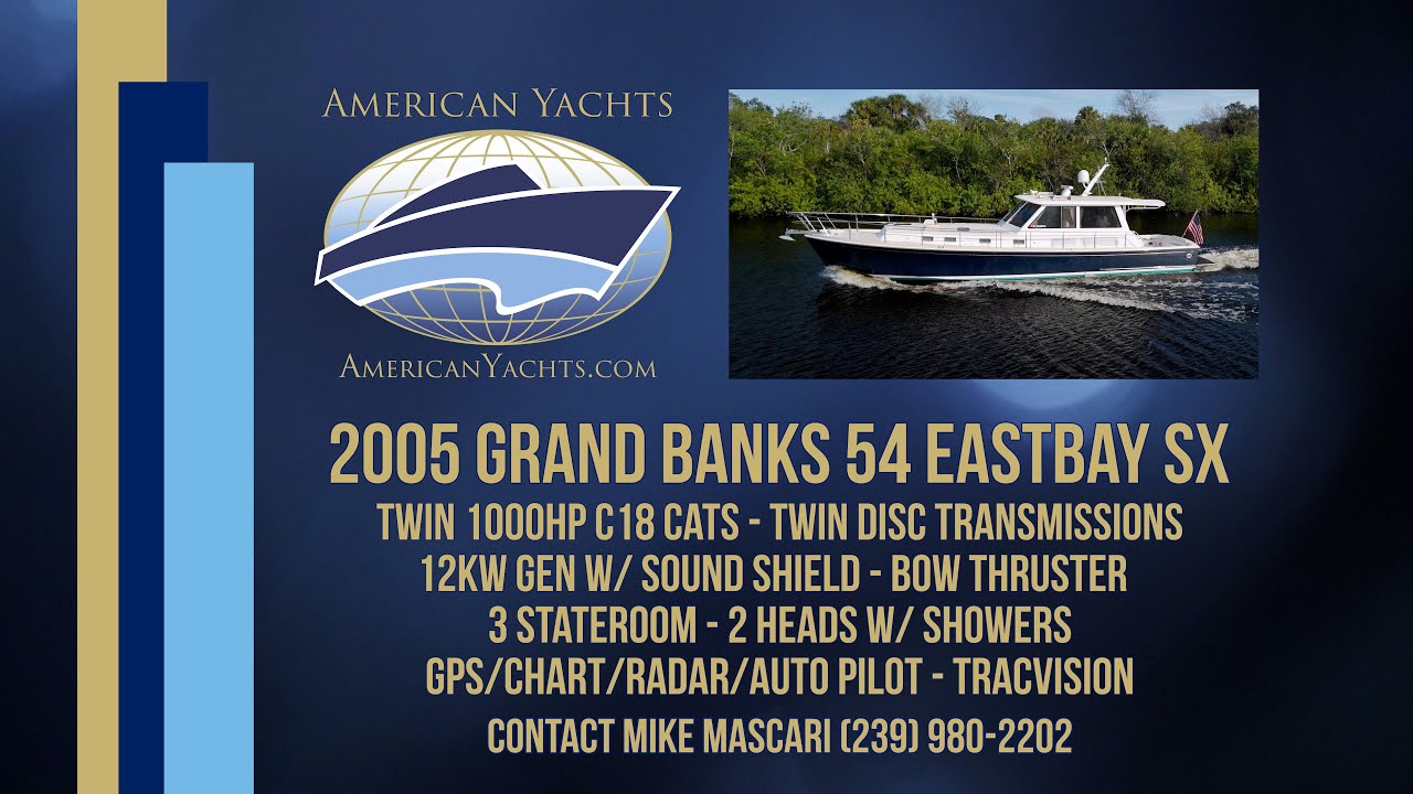 Classic Downeast Yacht with all the bells and whistles Grand Banks is known for in a beautiful Flag Blue Hull. Twin 1000HP C18 Cats (1215hrs) with twin disc transmissions allow for fast planning and fuel-efficient cruising. The short list of features includes 12kw Gen, Bow Thruster, Garmin Radar/GPS/Chart, Simrad Pilot, Full Galley, 3 Staterooms, 2 Full heads with Showers. Perfect for Family and guest cruising.