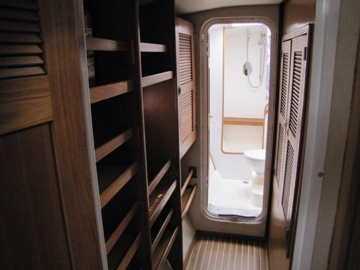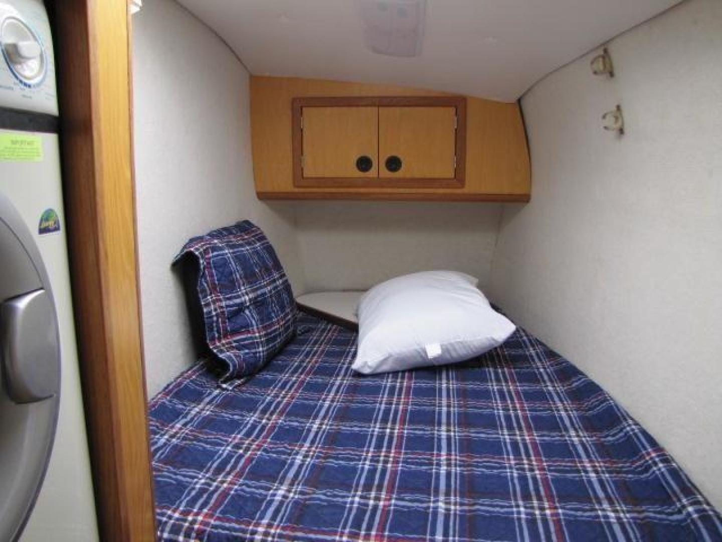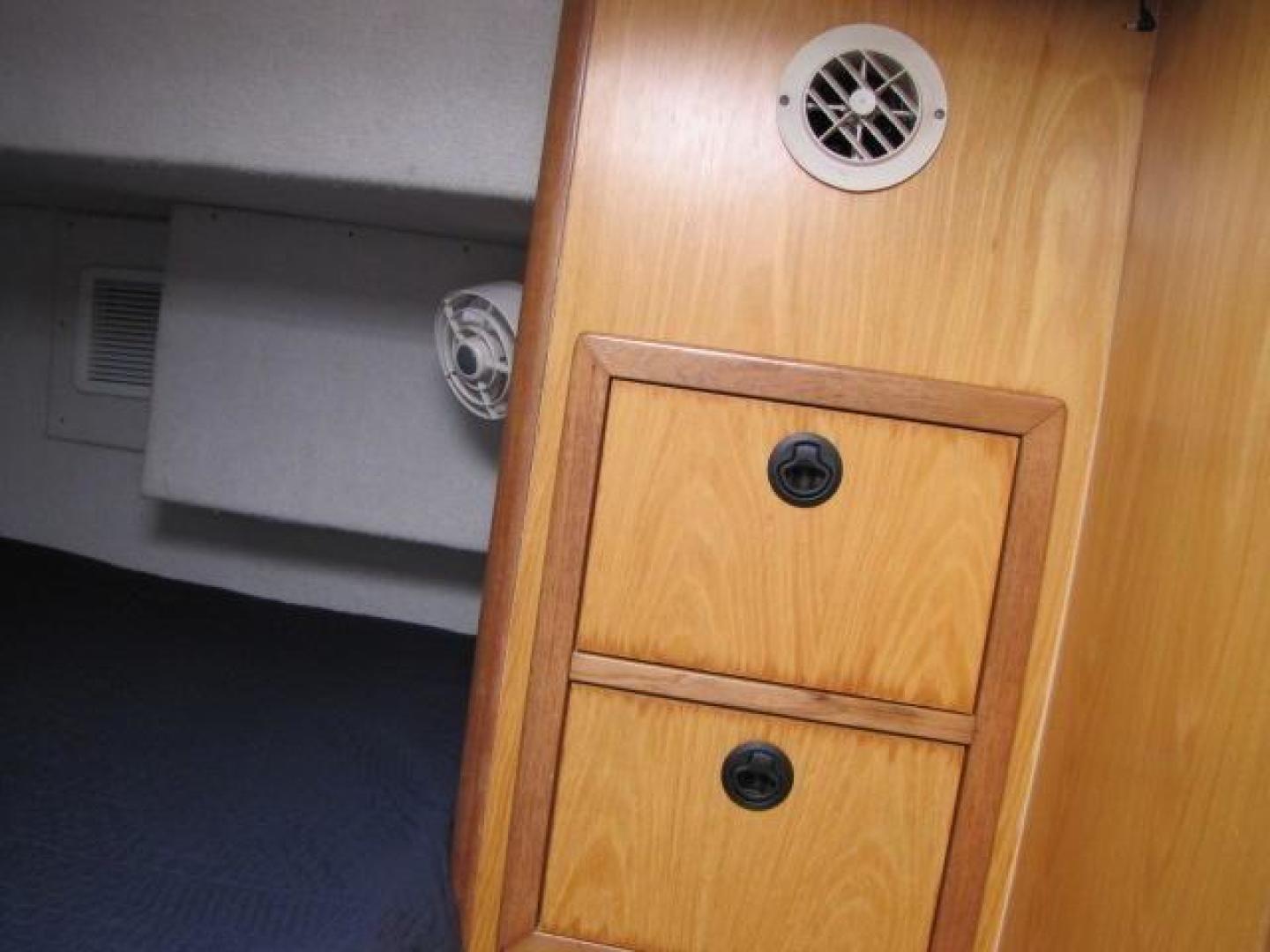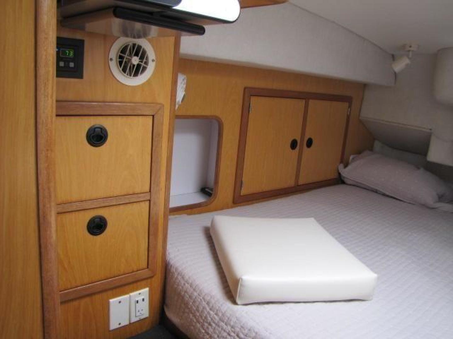 - Under the berth is the pump bay which includes pumps and plumbing for the fresh water, air conditioning and watermaker as well as the water heater.