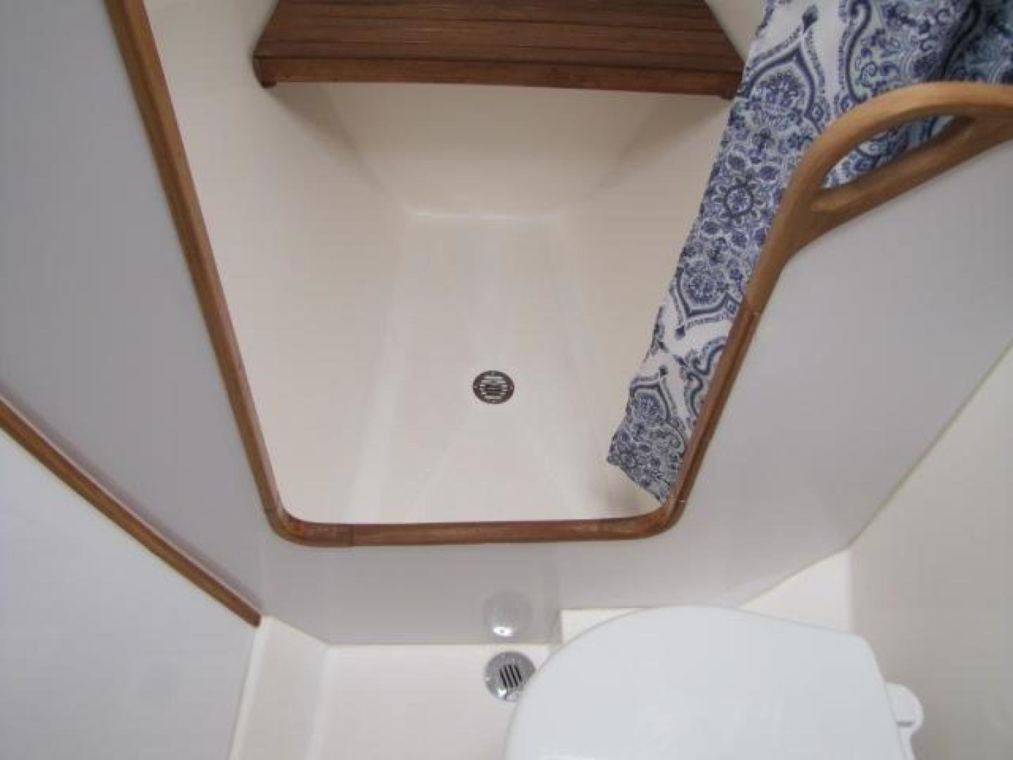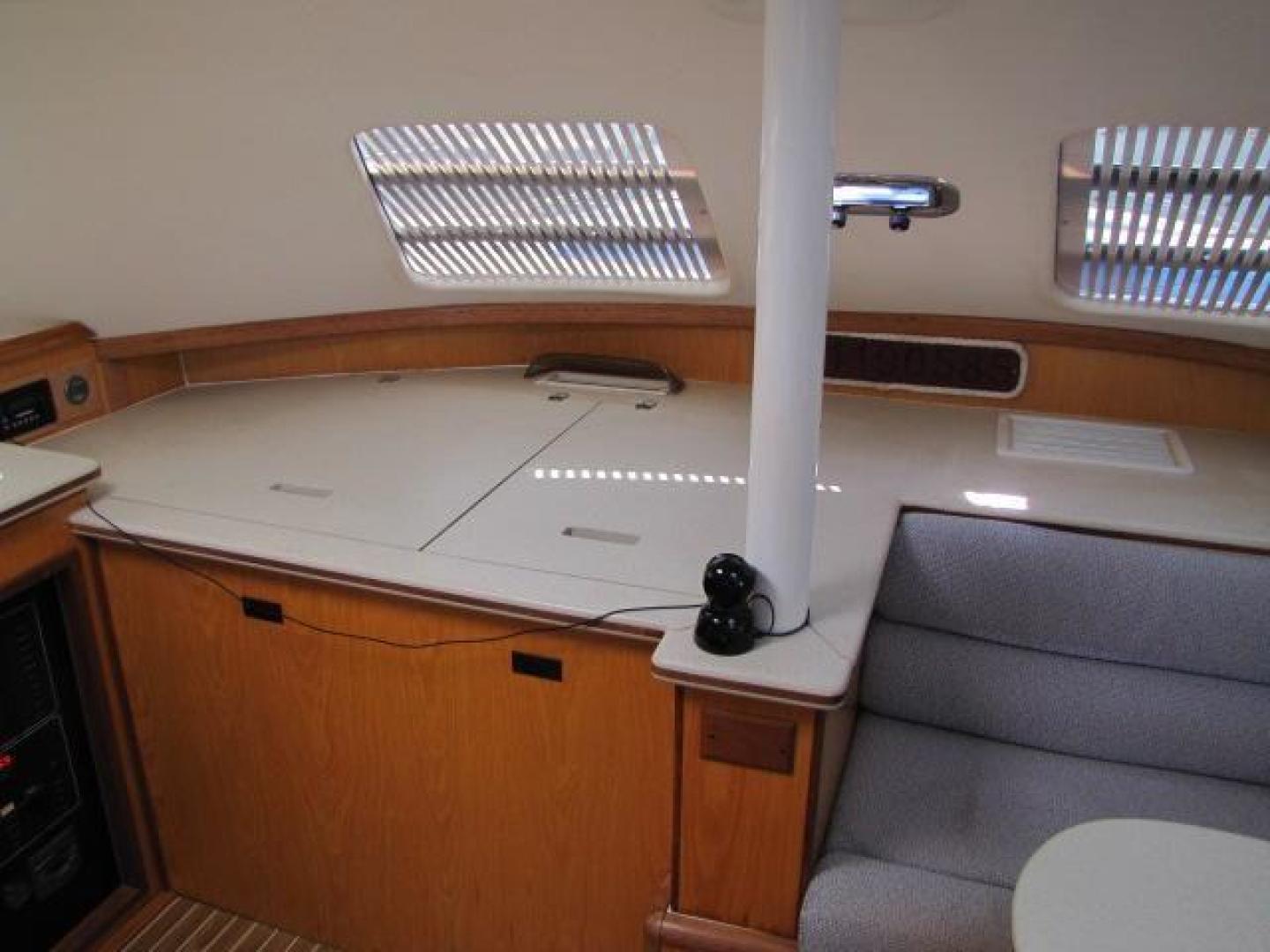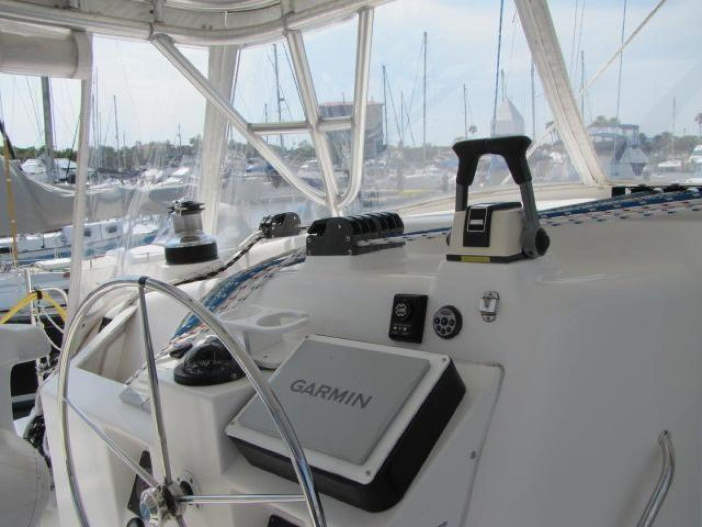 - All lines including reefing are run to stoppers at the electric winch. No need to leave the cockpit at sea.