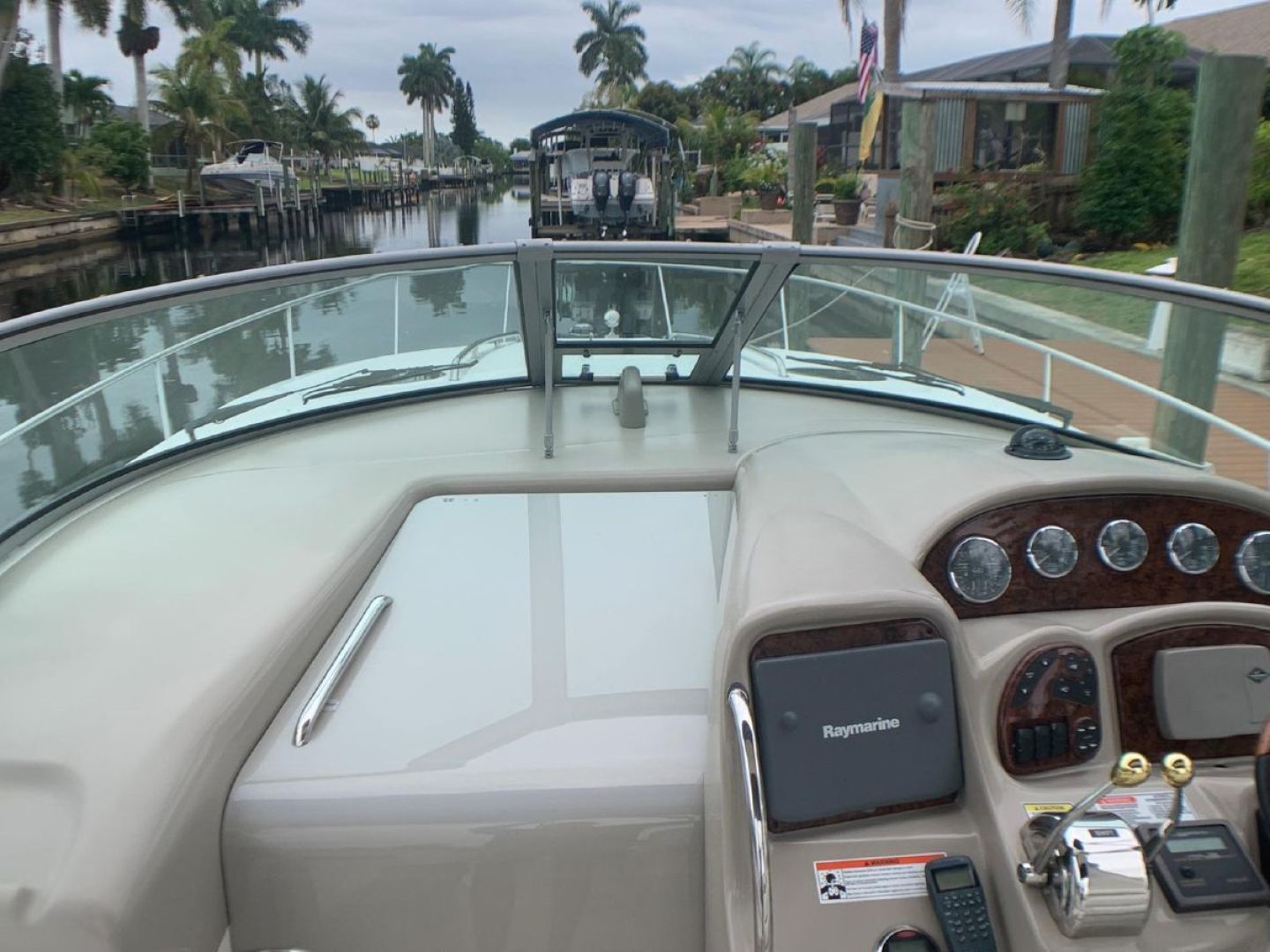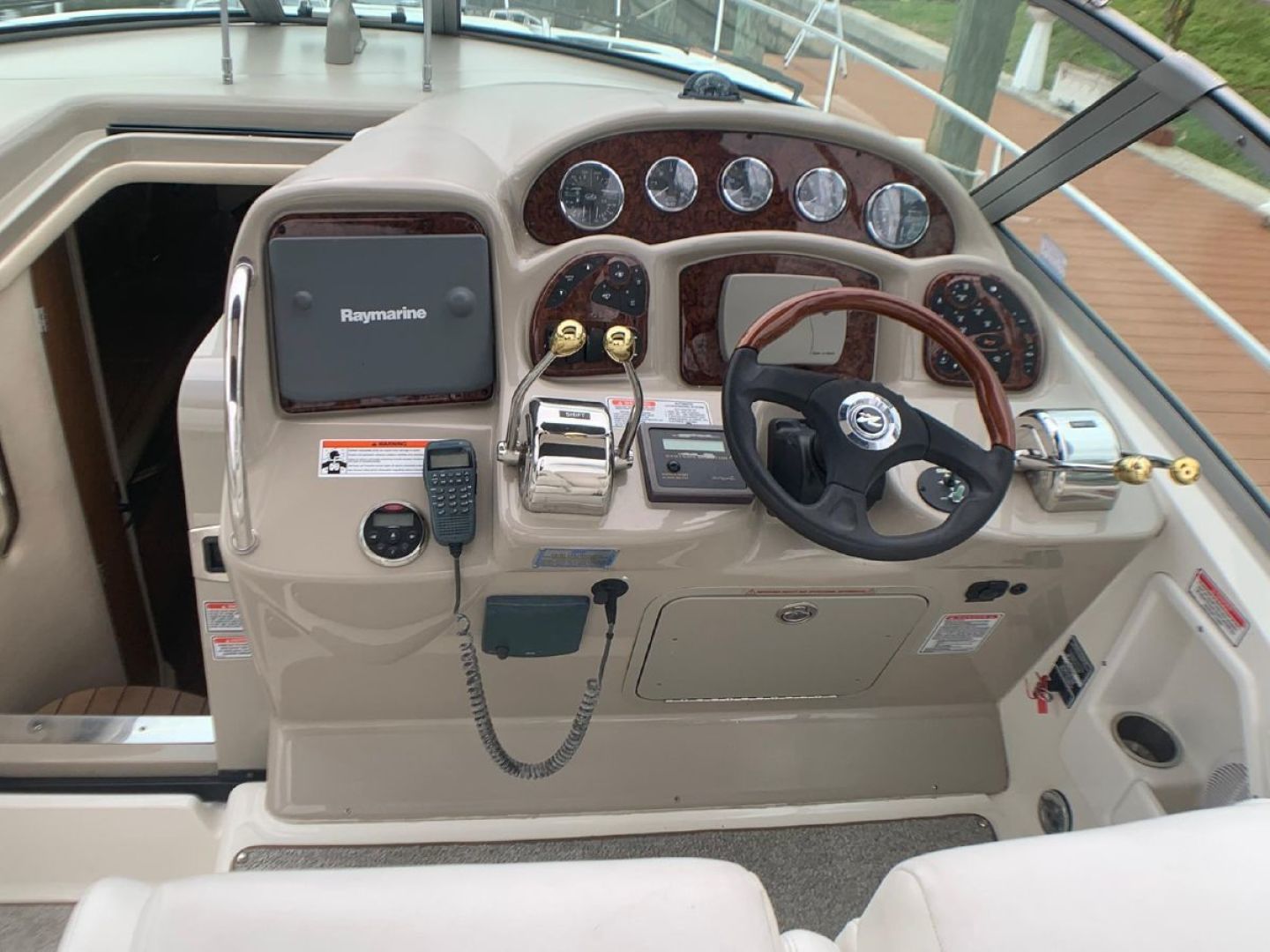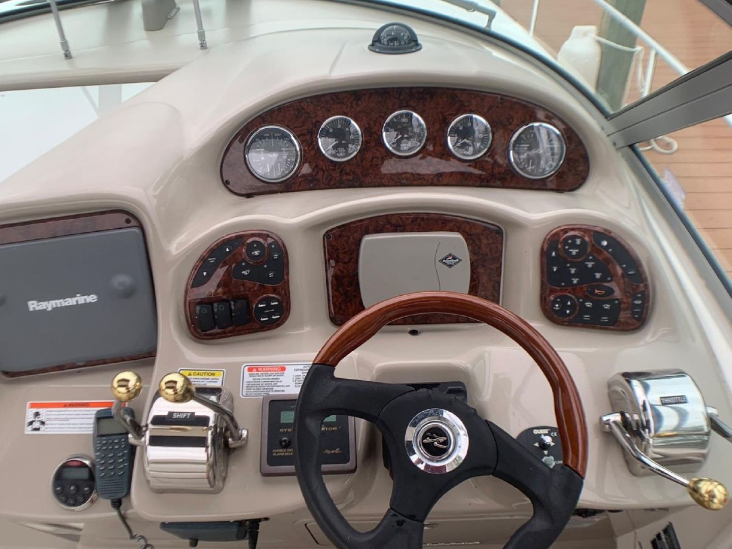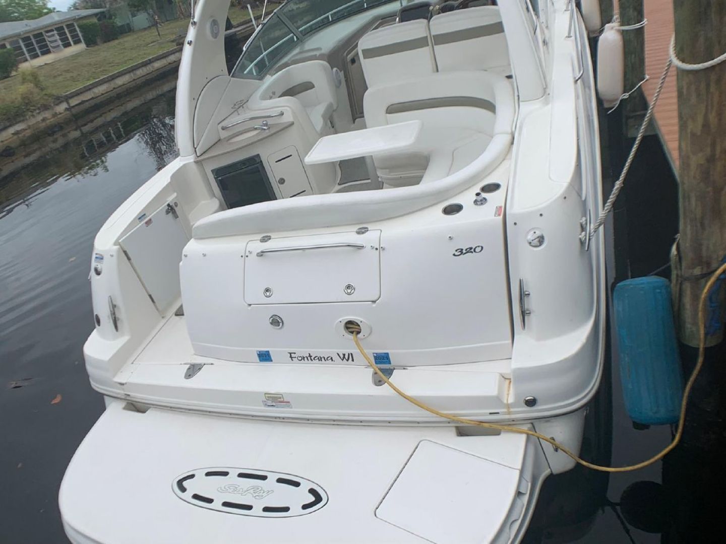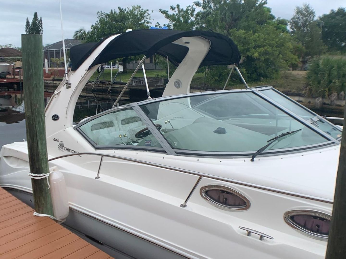 There's nothing quite like the exhilarating profile of this sleek 320 Sundancer. Its dramatic lines and bold colors make everything else look like it's sitting still. Exciting features include cockpit wet bar with Corian counter, extra-wide bench-style helm seating with two flip-up thigh-rise bolsters, optional underwater swim platform lighting, premium cabin surround sound, and lots more.