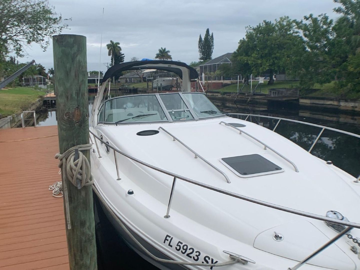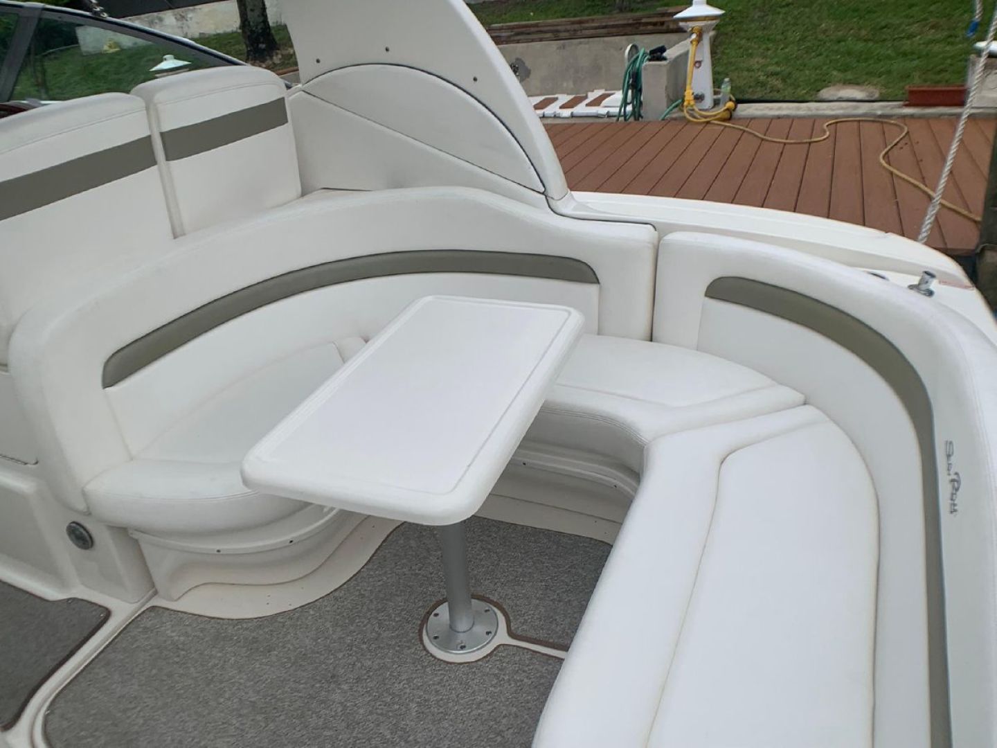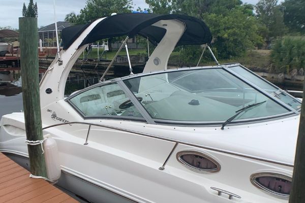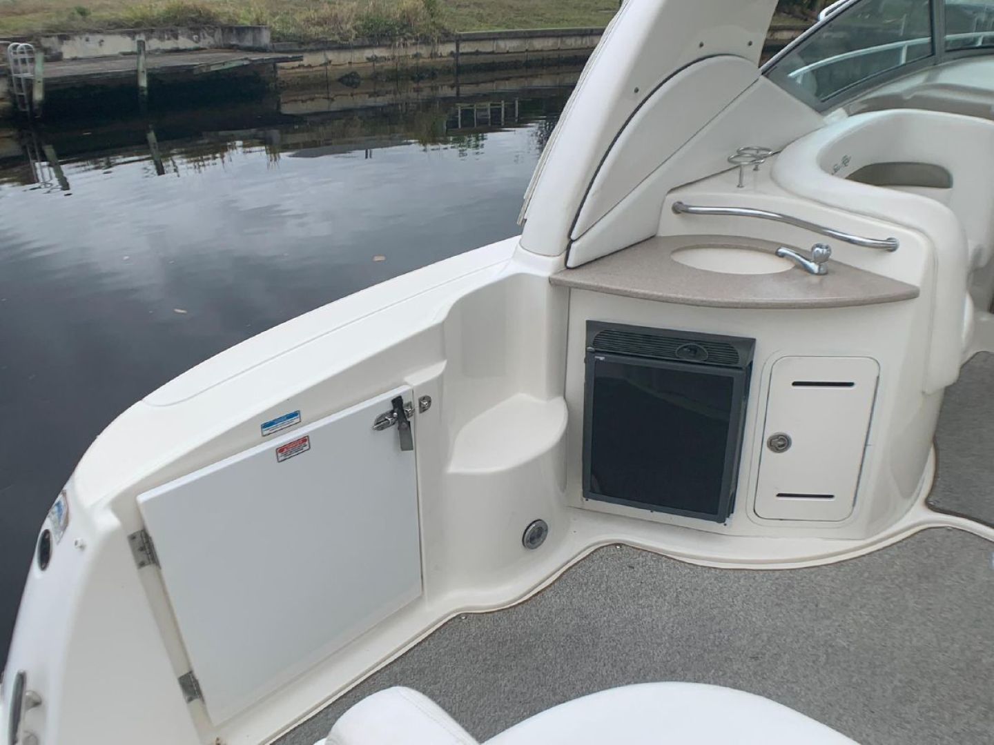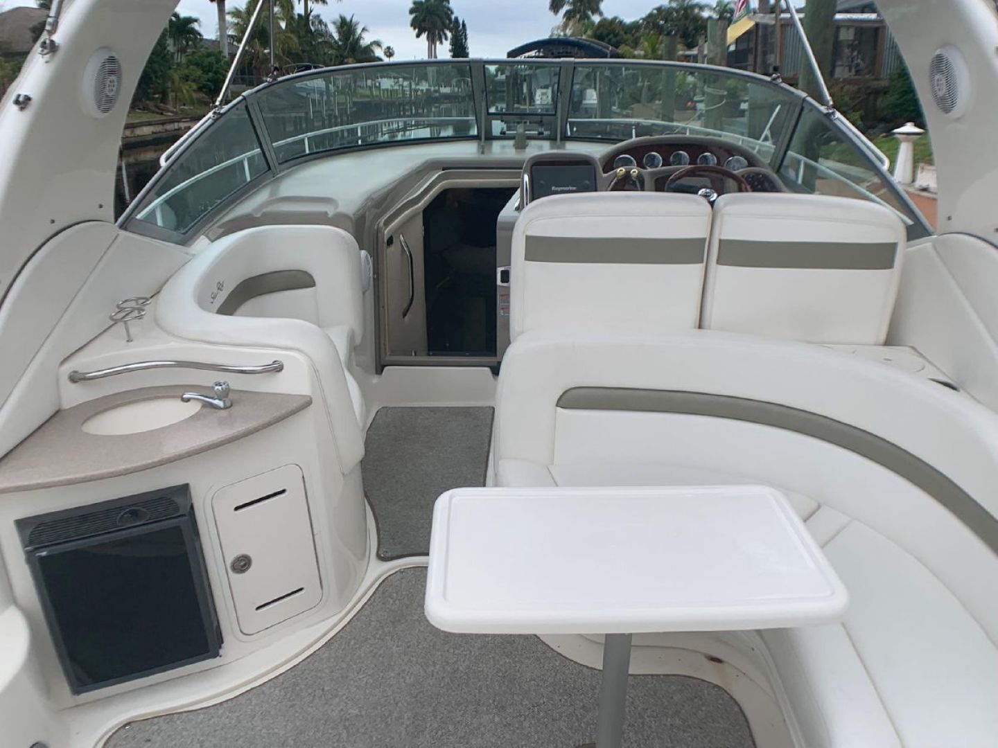 There's nothing quite like the exhilarating profile of this sleek 320 Sundancer. Its dramatic lines and bold colors make everything else look like it's sitting still. Exciting features include cockpit wet bar with Corian counter, extra-wide bench-style helm seating with two flip-up thigh-rise bolsters, optional underwater swim platform lighting, premium cabin surround sound, and lots more.
