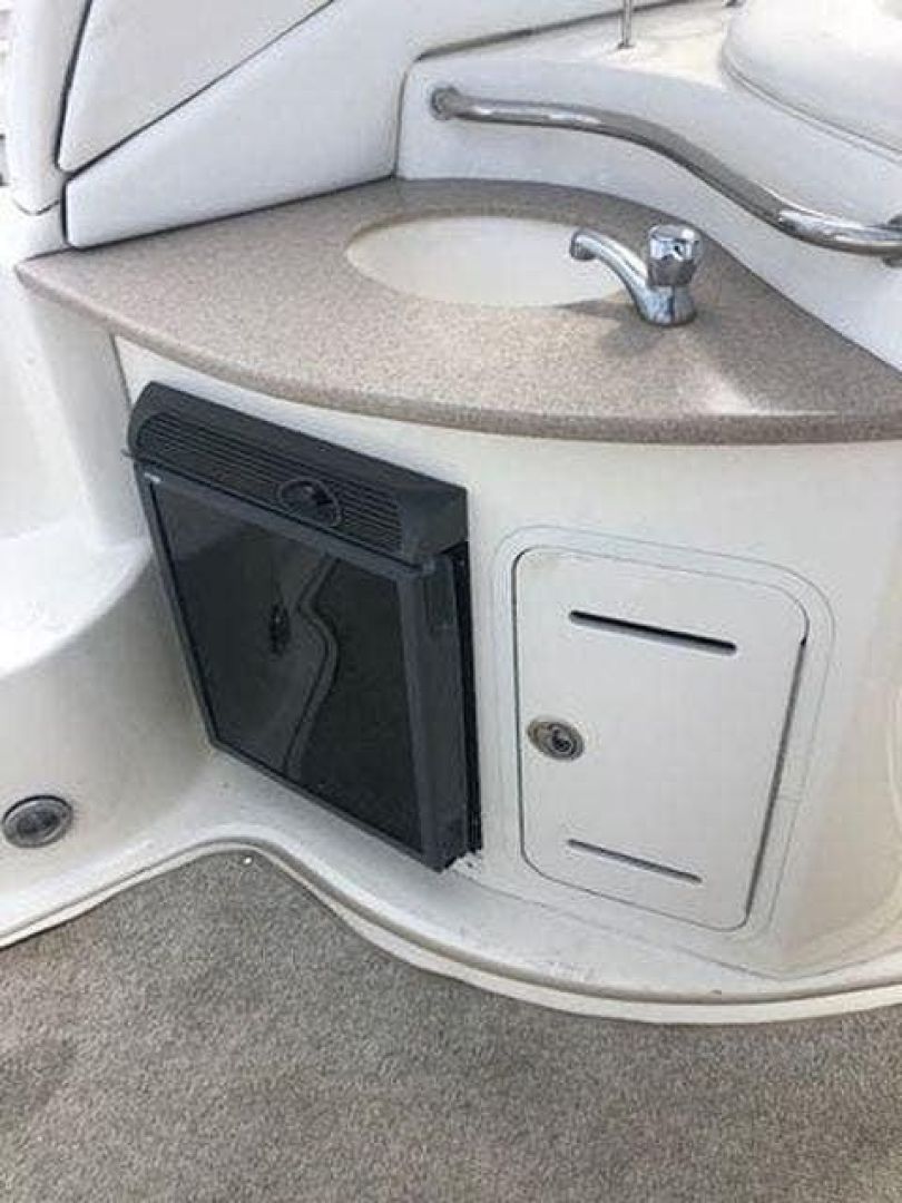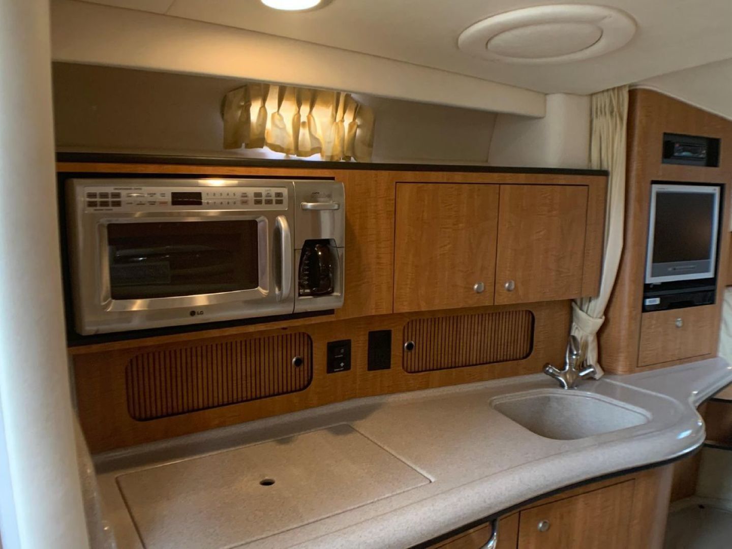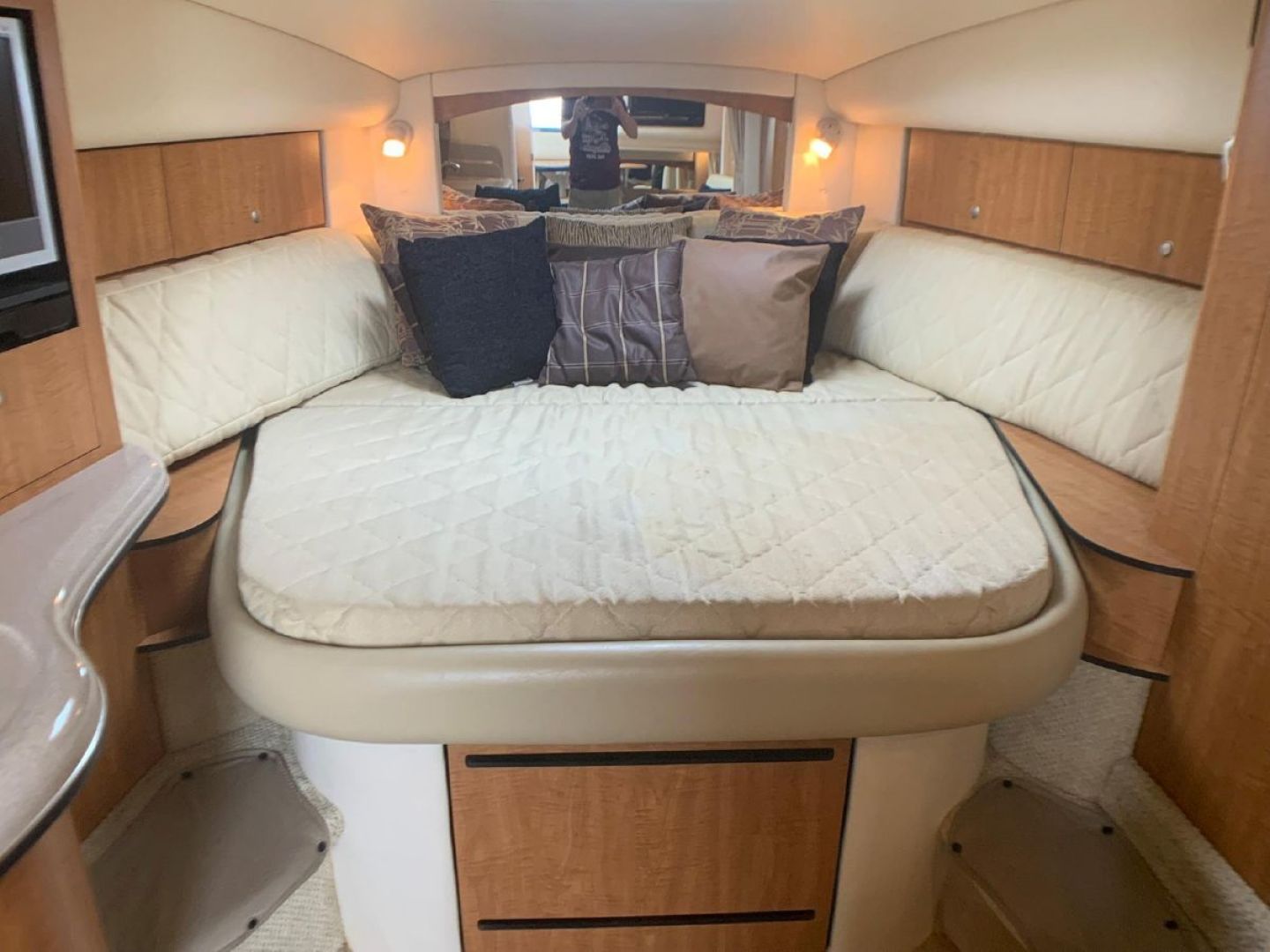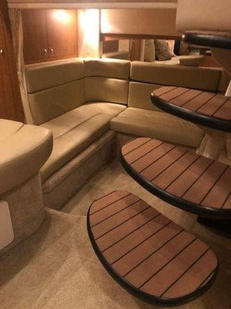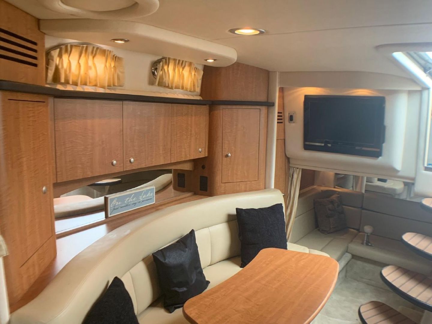 There's nothing quite like the exhilarating profile of this sleek 320 Sundancer. Its dramatic lines and bold colors make everything else look like it's sitting still. Exciting features include cockpit wet bar with Corian counter, extra-wide bench-style helm seating with two flip-up thigh-rise bolsters, optional underwater swim platform lighting, premium cabin surround sound, and lots more.