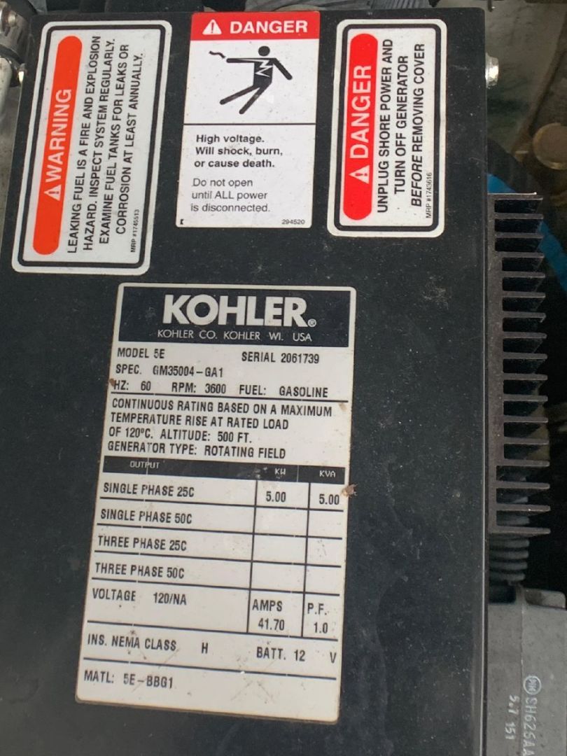 - 5.0 kW Kohler Gas Generator with only 59 hours