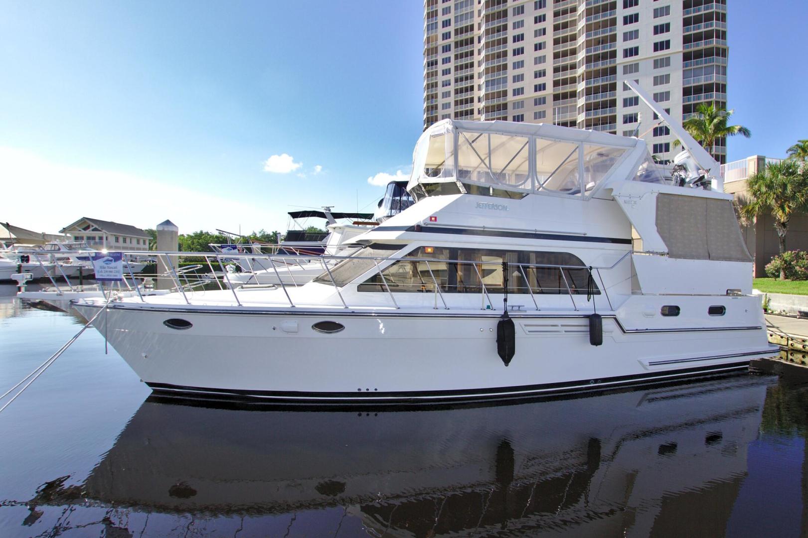 According to Our Research, This is the Only 2007 45' Jefferson for sale in the USA. Very Nice Vessel with (2) Stateroom, (2) Head Layout with a versatile deck layout, with Molded Steps to Aft Deck approach. Twin QSB5.9 Cummins Diesels (330hp,) 8kW Generator, Raymarine Radar/GPS/Auto Pilot, Fly By Wire Controls, Call for More Information.