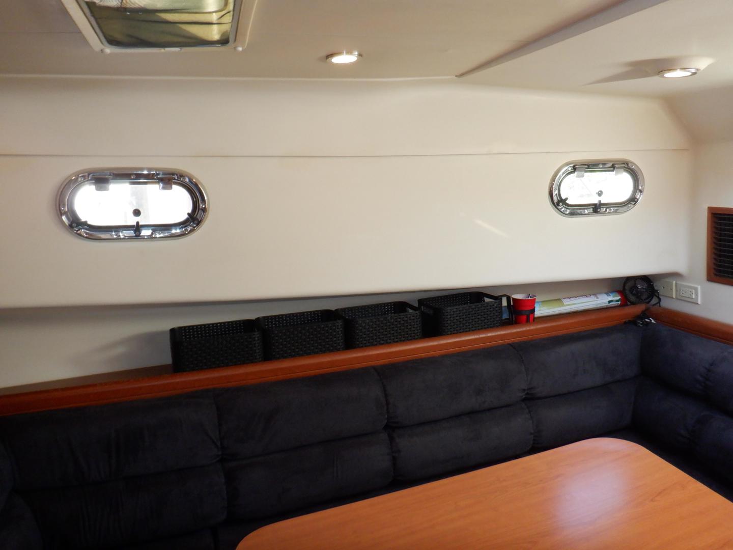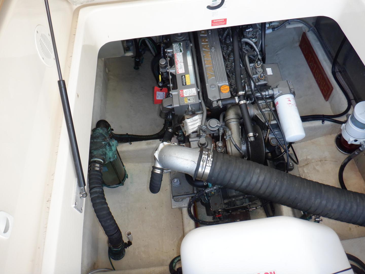 Powered by the highly rated 370 Yanmar FWC with 855hrs, NexGen 5kw Generator with sound shield, Factory Big Sliding Helm Windows and Cockpit A/C, Simrad Touchscreen GPS, Compass, VHF 215 with DSC, Bow Thruster, Windlass, Marine Head, Tinted Helm Windows. This is a 34' vessel with the amenities of a 40' vessel.