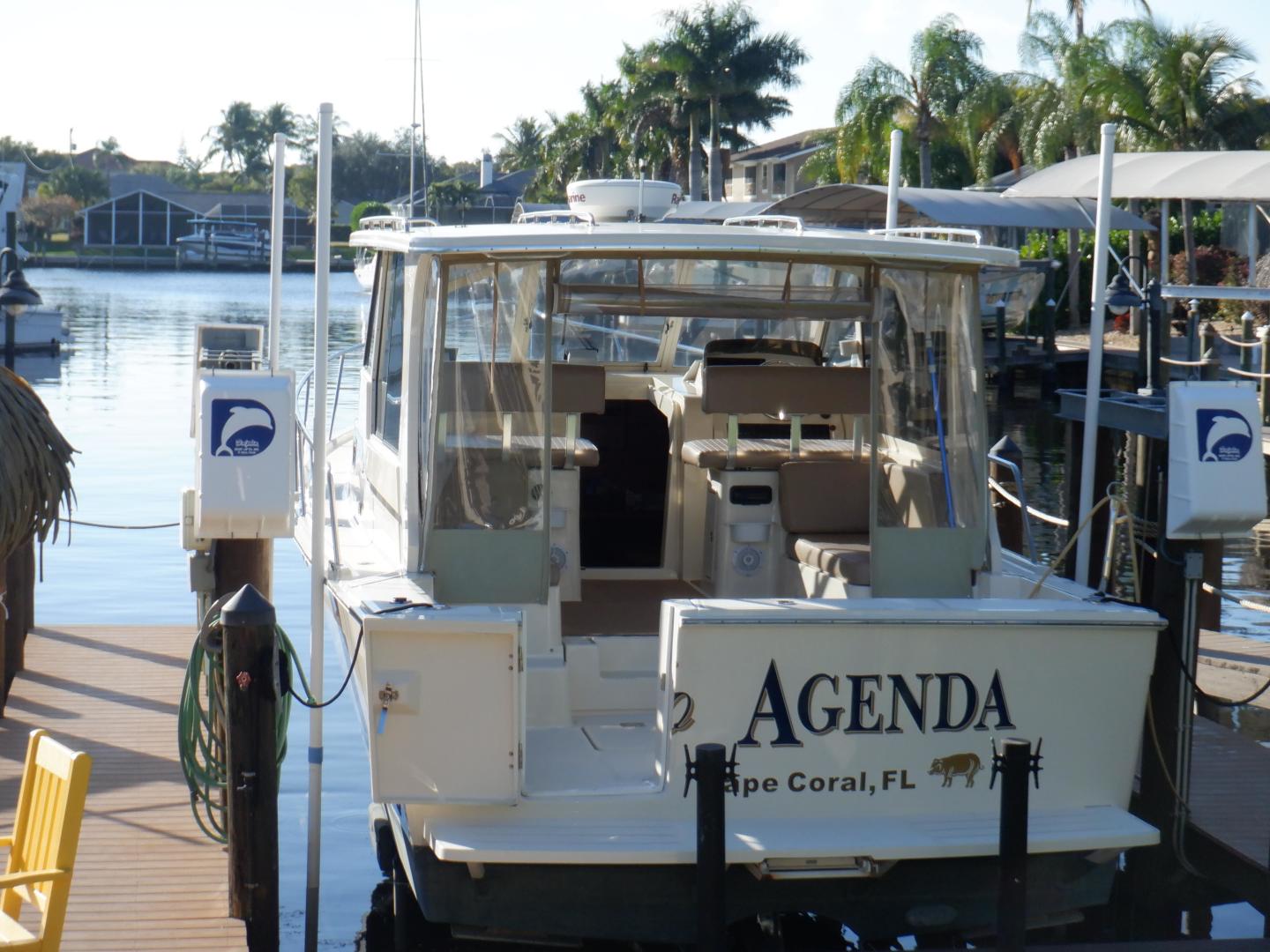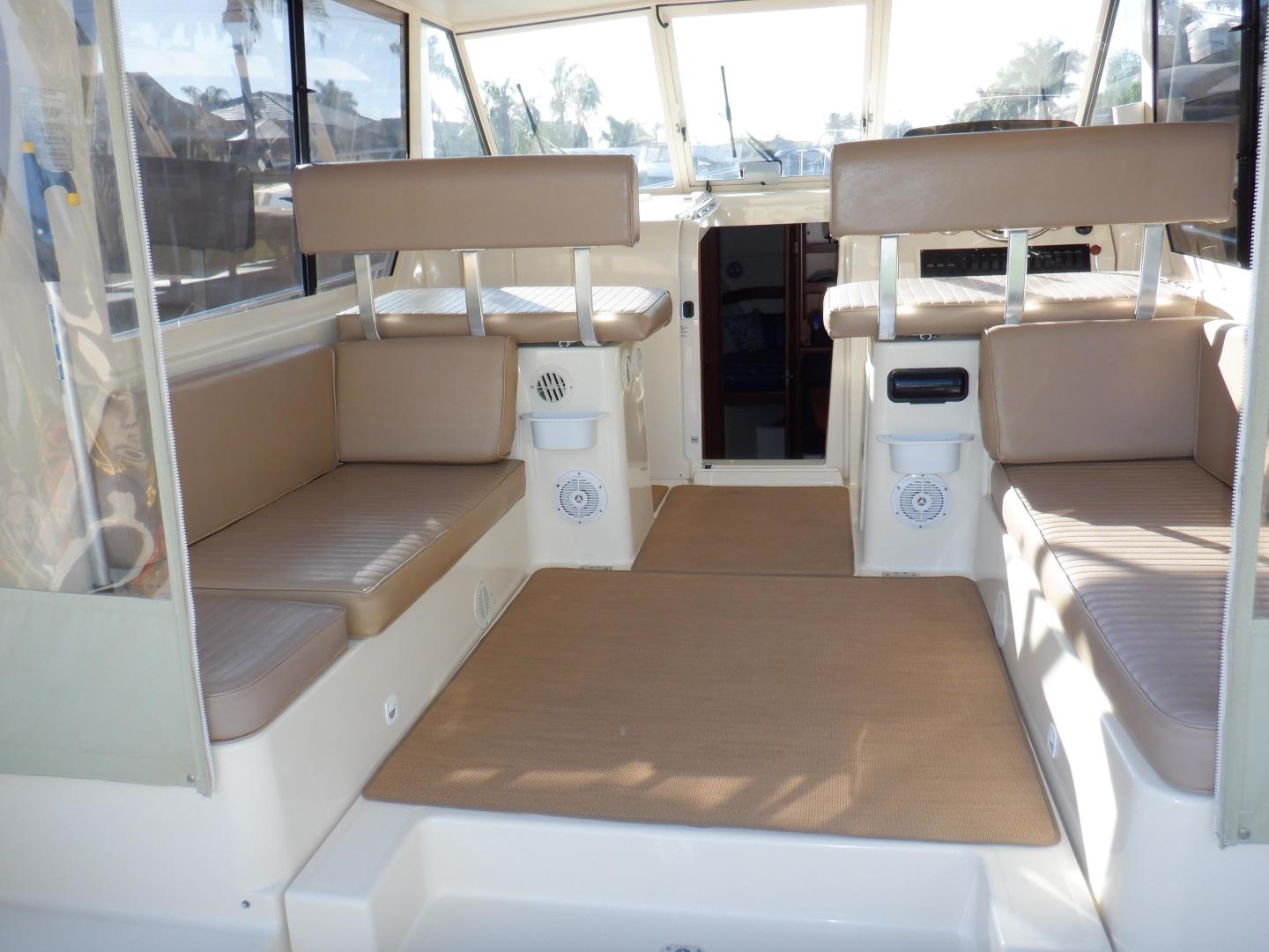 - Fully Enclosed Hardtop with Overhead Lighting, Sliding Side Windows & Aft Isinglass Enclosure