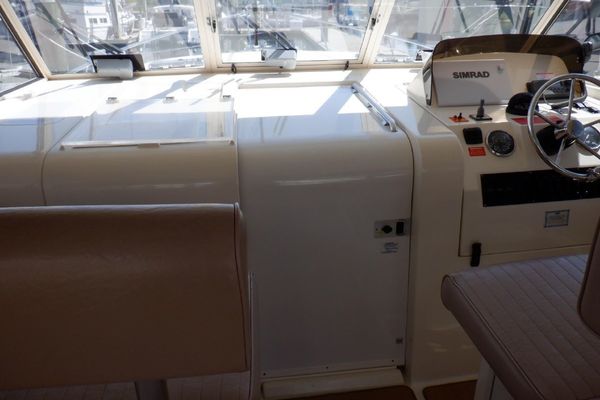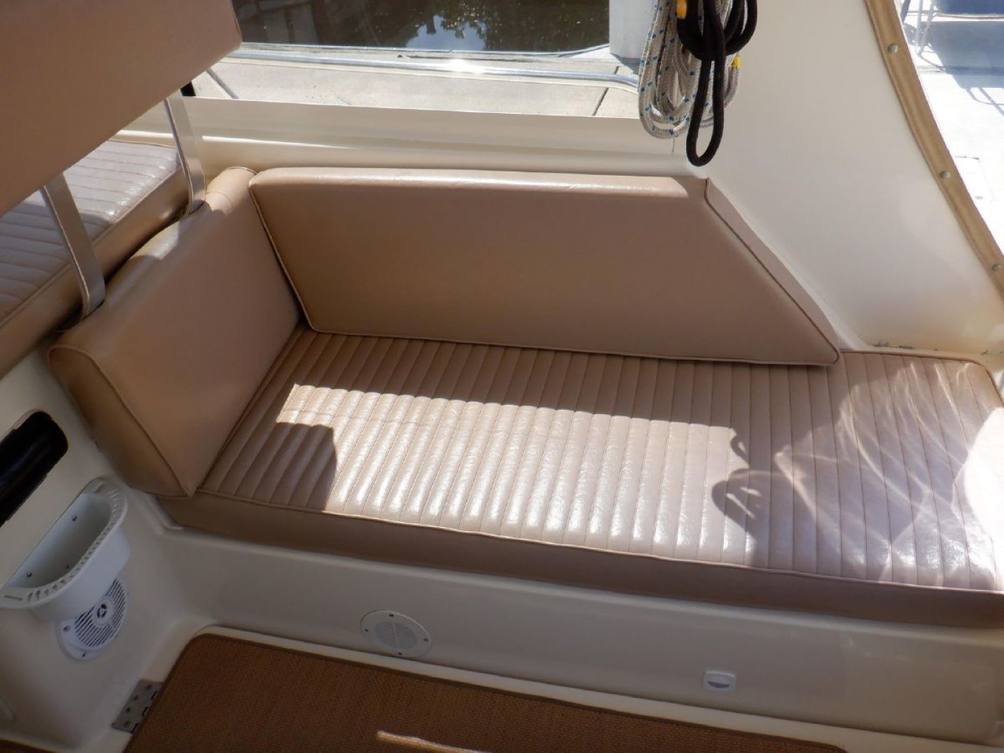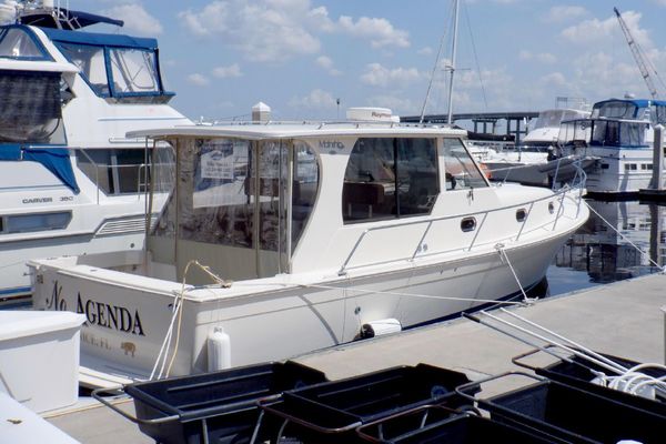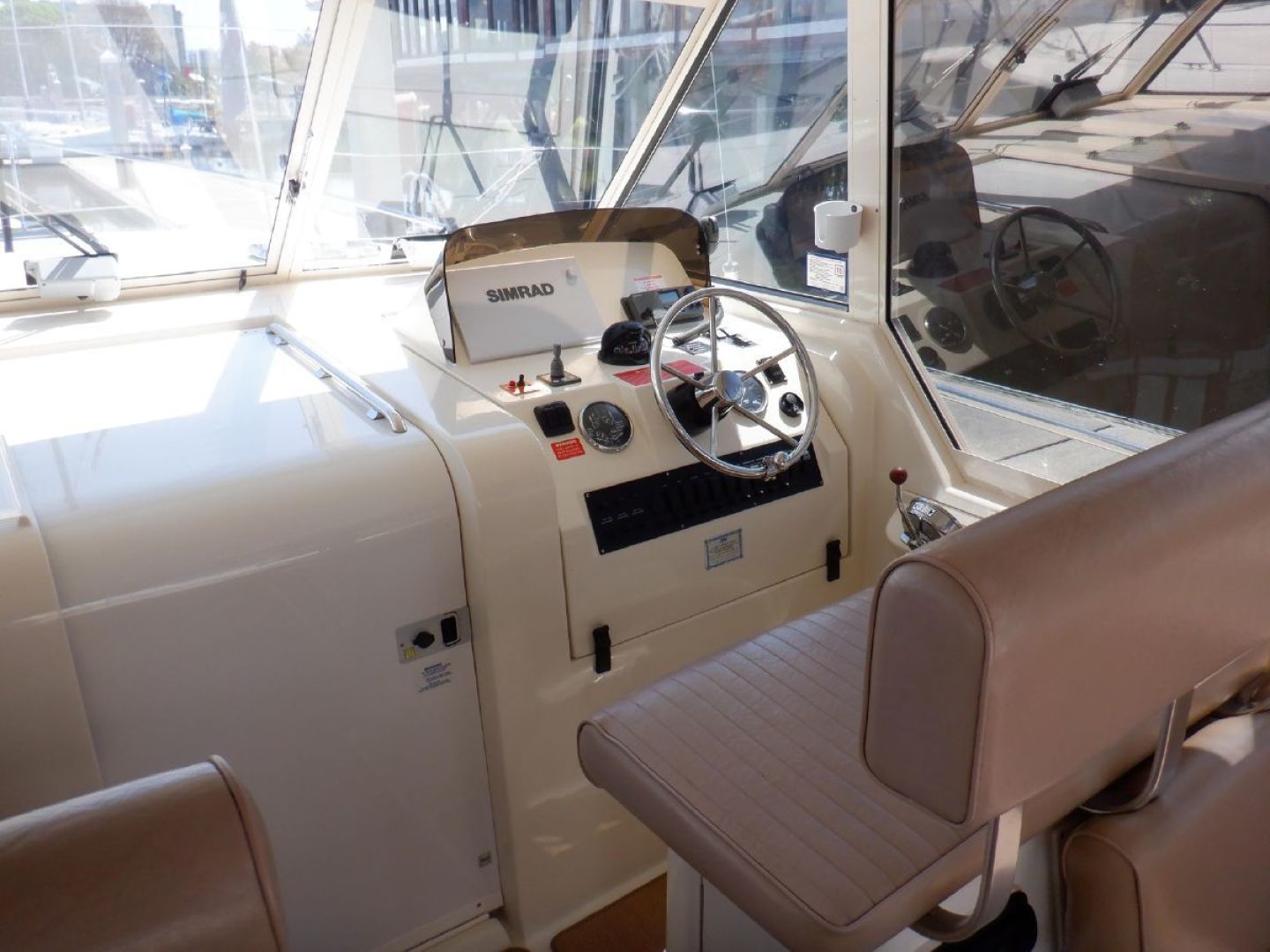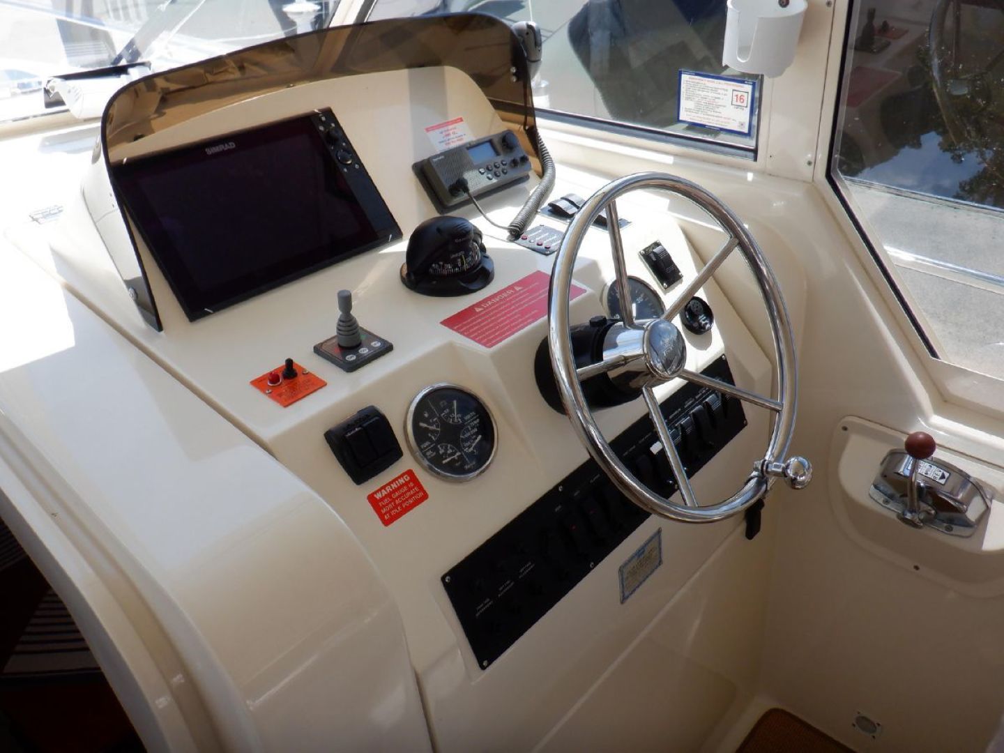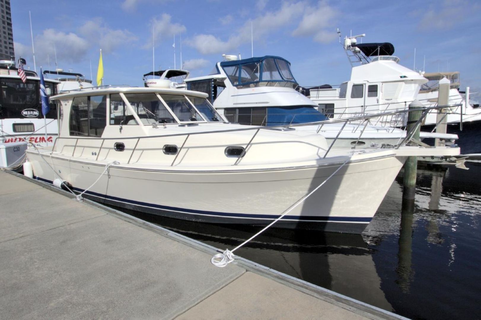 Powered by the highly rated 370 Yanmar FWC with 950hrs, NexGen 5kw Generator with sound shield, Factory Big Sliding Helm Windows and Cockpit A/C, Simrad Touchscreen GPS, Compass, VHF 215 with DSC, Bow Thruster, Windlass, Marine Head, Tinted Helm Windows. This is a 34' vessel with the amenities of a 40' vessel.