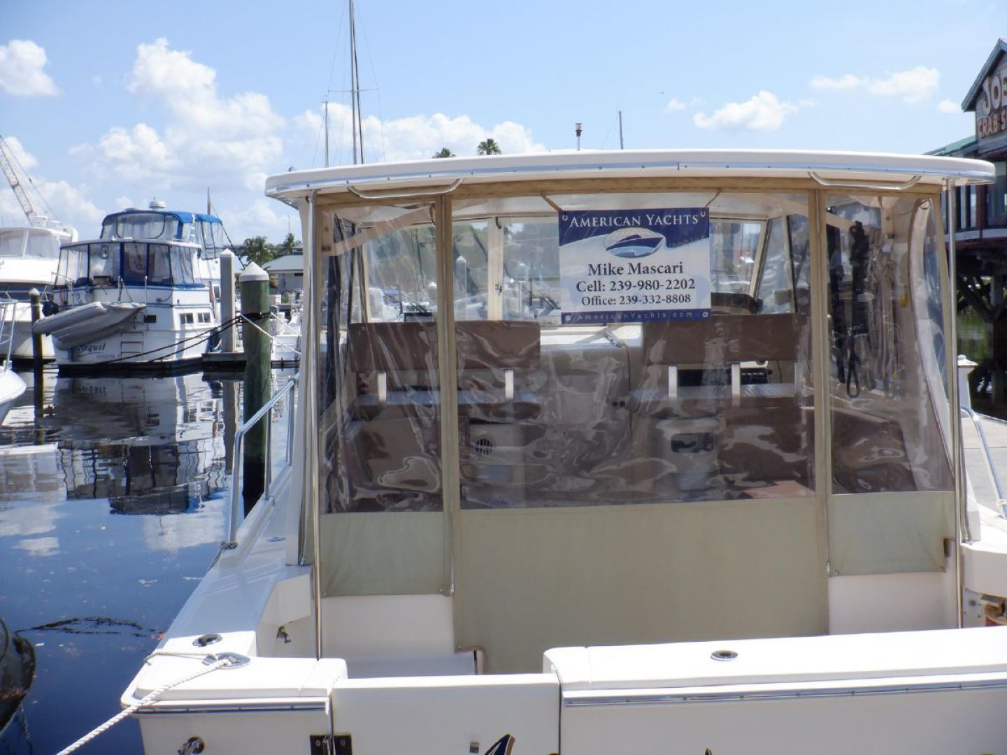 - Fully Enclosed Hardtop with Overhead Lighting, Sliding Side Windows & Aft Isinglass Enclosure