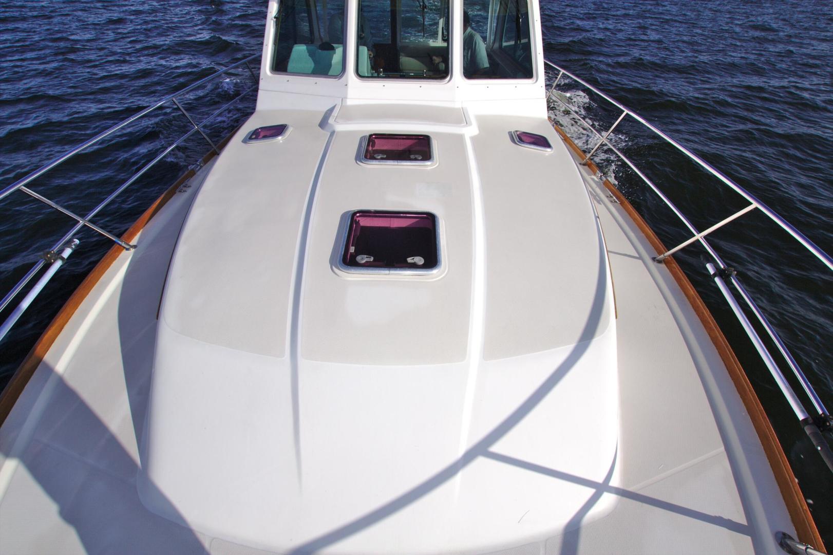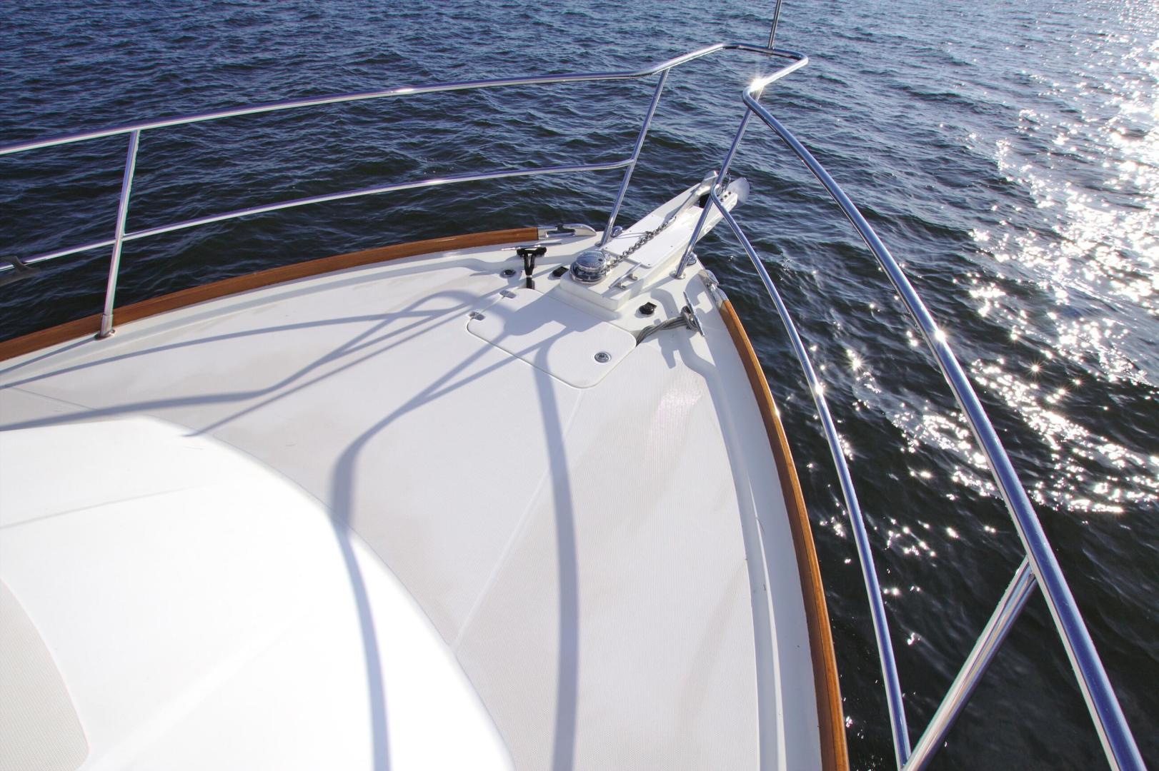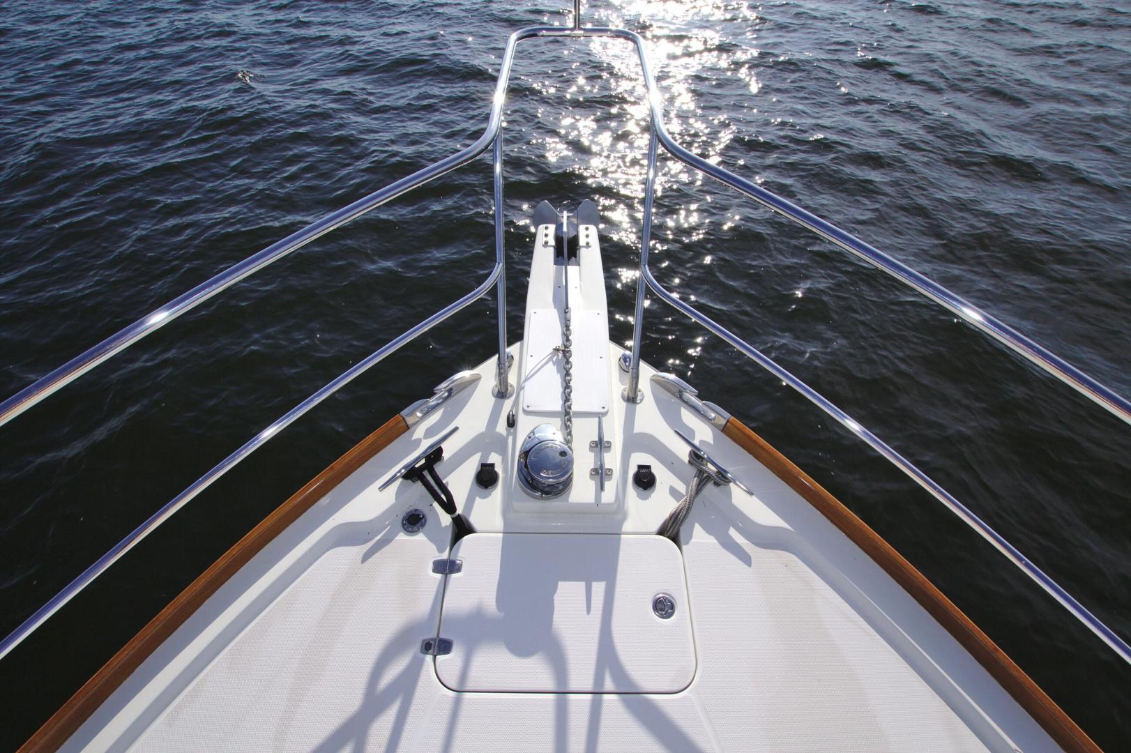 - Fiberglass bow pulpit with single anchor roller and windlass