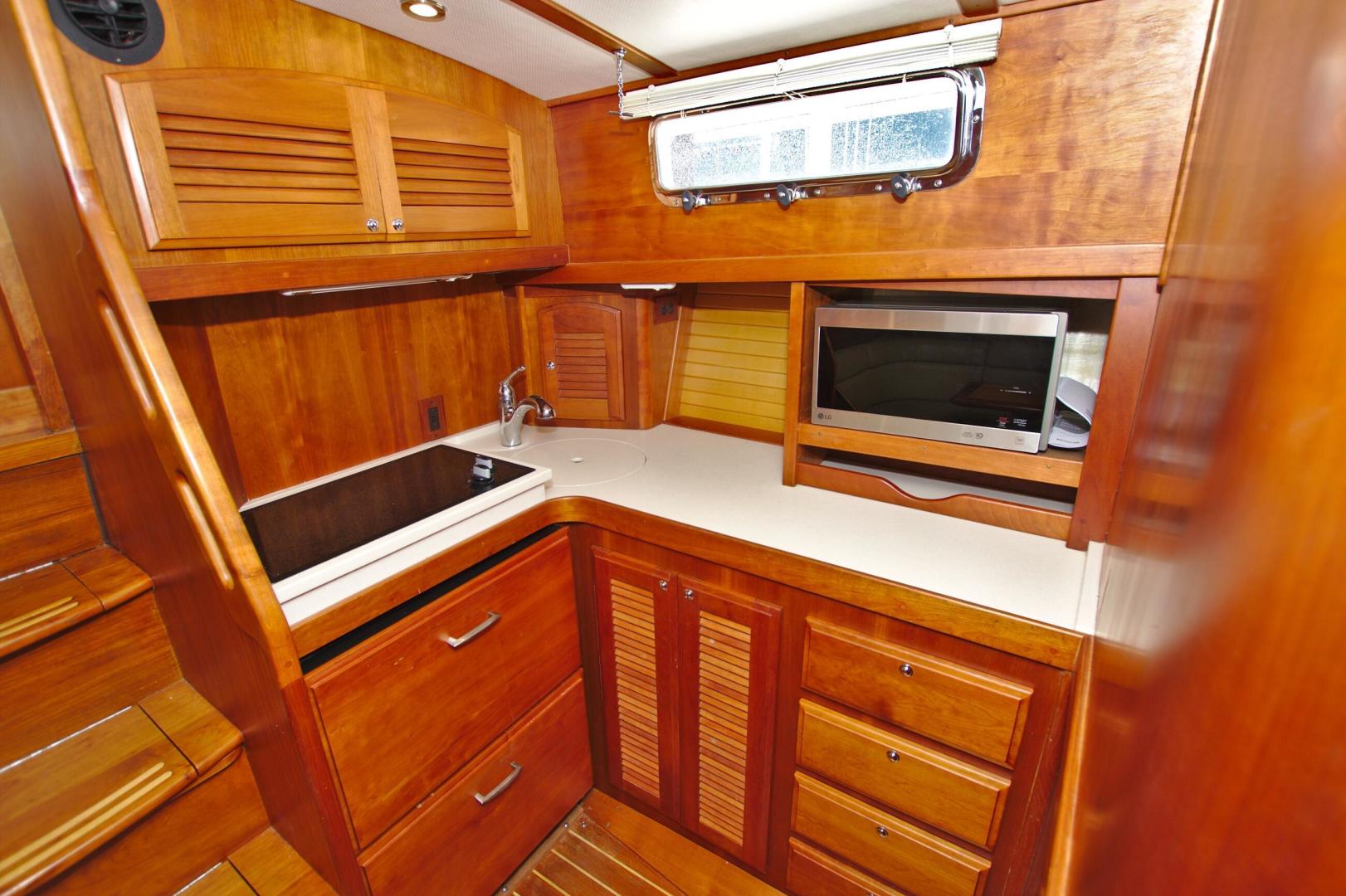- Storage cabinets outboard and above aft counter