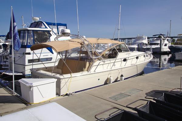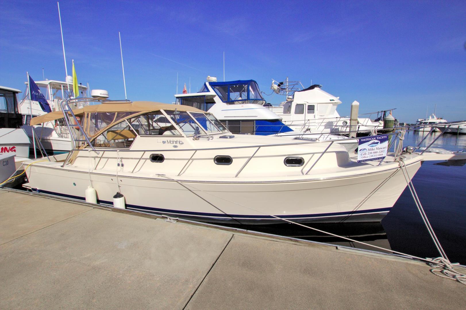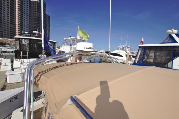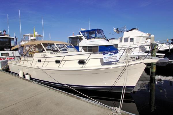 34' Mainship 34 Pilot Soft Top, Cummins Edition with Single 380hp QSB Cummins Diesel with 1250hrs, Generator, Bow Thruster, Lewmar Windlass, Upgraded Garmin Electronics GPS-Radar-Auto Pilot- Depth, Convertible Top with Full Enclosure and Extended Cockpit Bimini. Removable St Croix Davits. Much Desired Bulkhead Delete Option, Antique White Hull. The Only Late Model 34 in the USA (2008 or Newer)