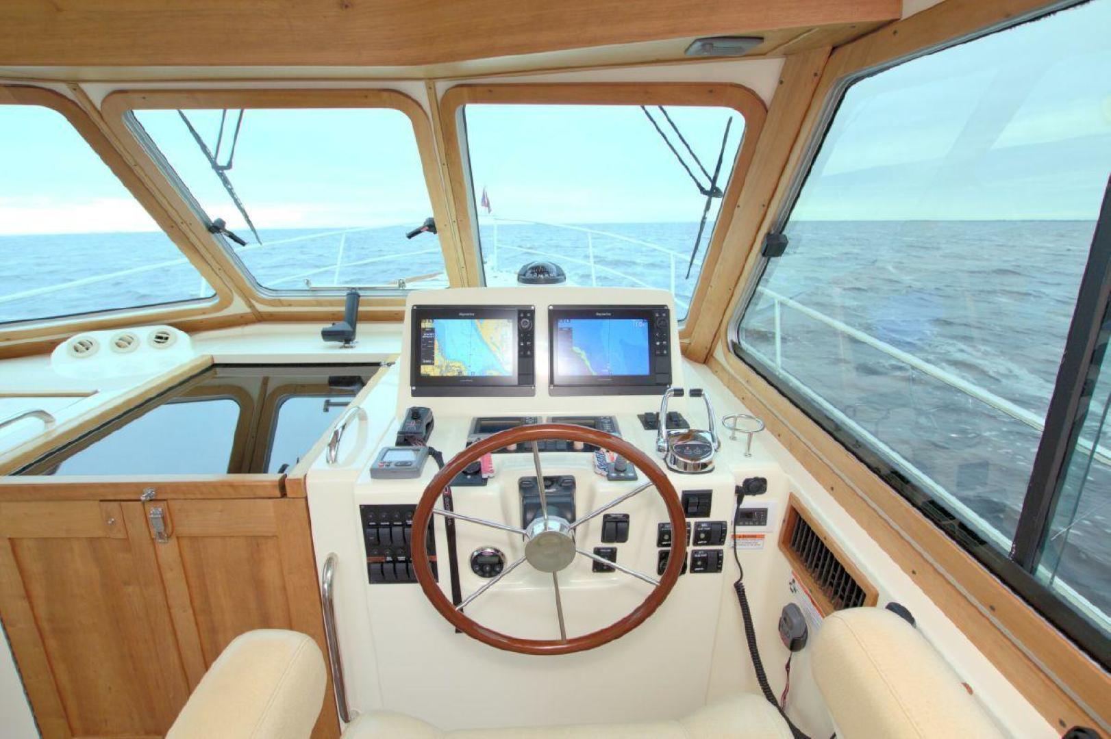 A Very Rare Offering in 2008, Twin 425hp Cummins Diesel INBOARDS with under 1730hours, No Pod Drives. 3000watt Xantrex Inverter/Charger, 9kw Onan Generator, Raymarine Axiom Electronics, 6ft Sure-Shade Retractable Cockpit Shade, Wireless Dockmate Joystick Docking Controller, Lift Kept and Well Maintained