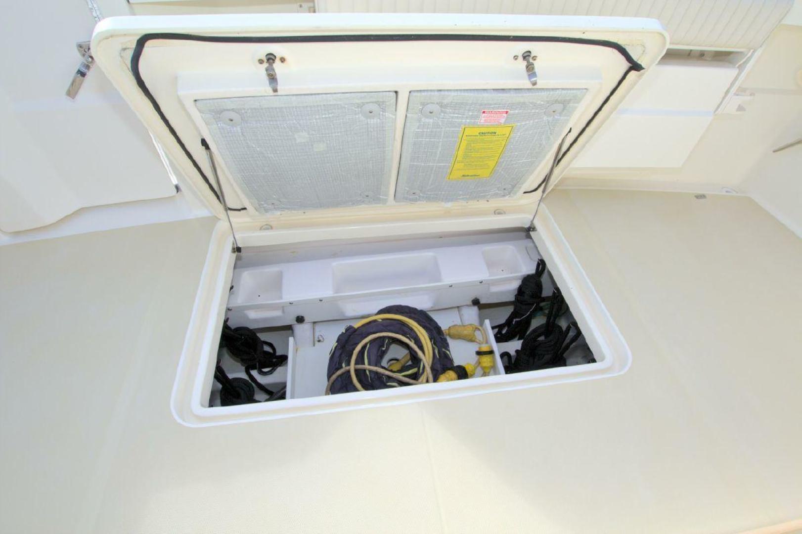 - Large Aft hinged double sided lazzarette locker hatch with gas struts