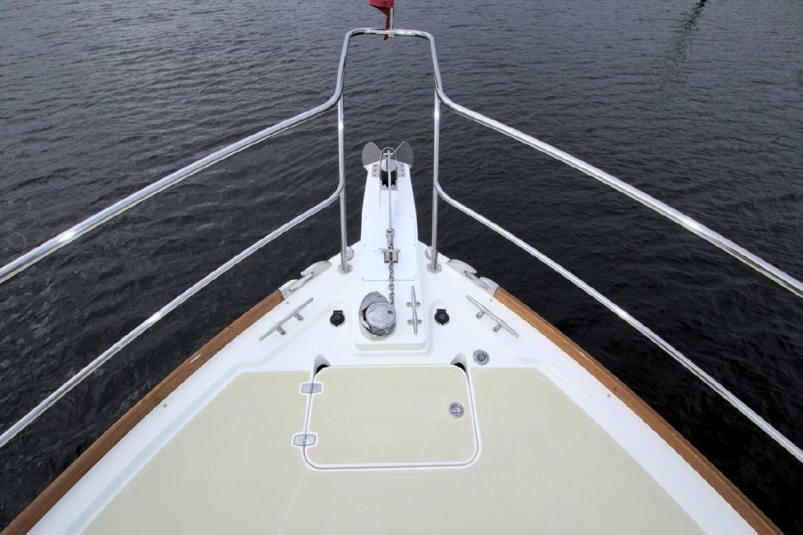 - Fiberglass bow pulpit with single anchor roller and windlass