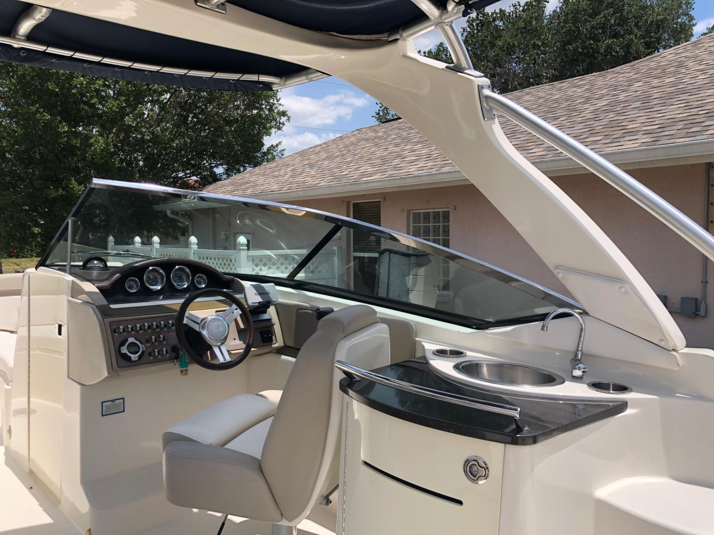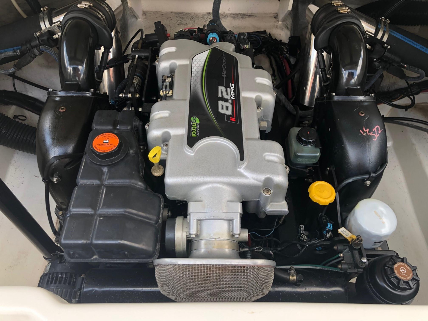 Like New with Freshwater Cooled Mercruiser 380HP 8.2 MAG MPI with Bravo III Outdrive, Vacu-Flush Head system, Garmin GPS/Chart, Water Sports Tower/Arch with Bimini, Dual Batteries, 30amp Shore Power with Battery Charger, Full Canvas Cover, None Nicer