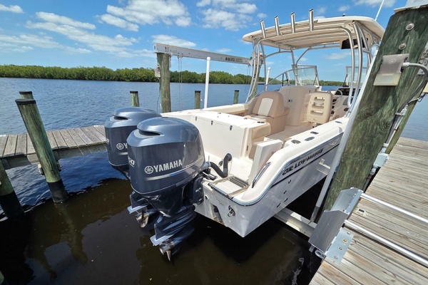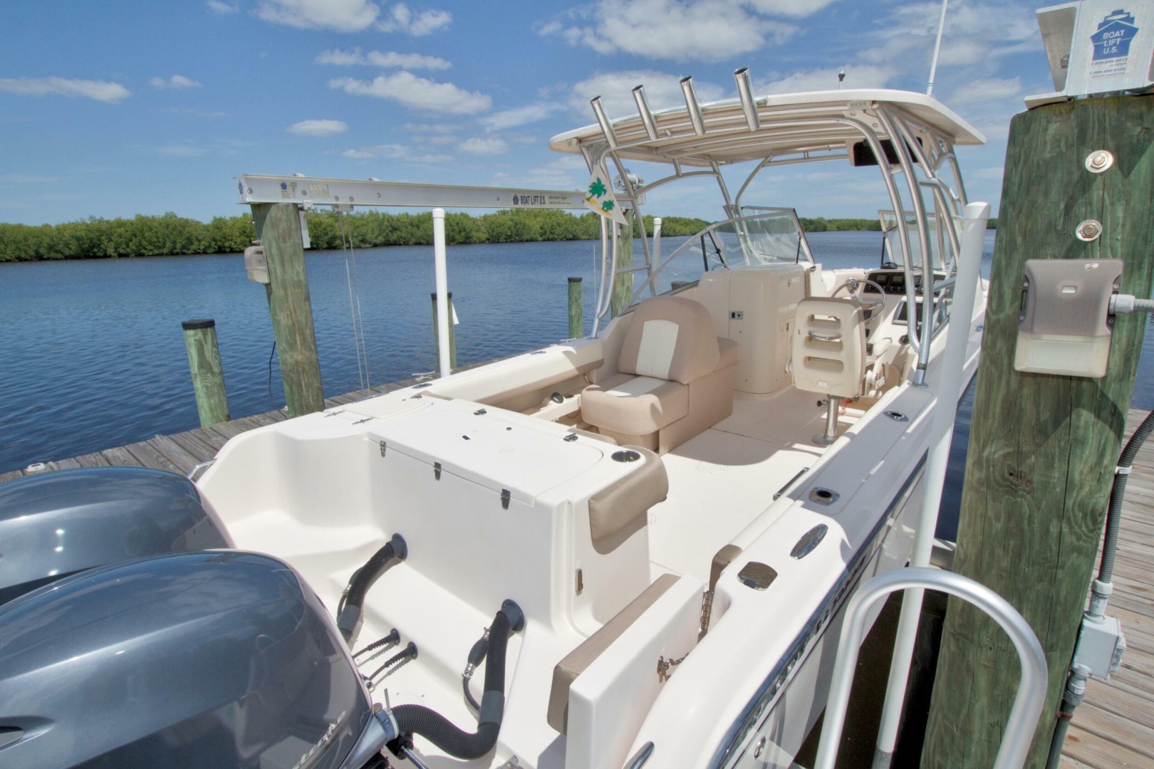 The spacious layout features comfortable seating throughout, a private head with pump-out, and ample storage, making it an ideal platform for entertaining or extended days on the water. Whether you're heading offshore, cruising the coast, or anchoring up at your favorite sandbar, the Freedom 275 delivers a premium boating experience in every way.