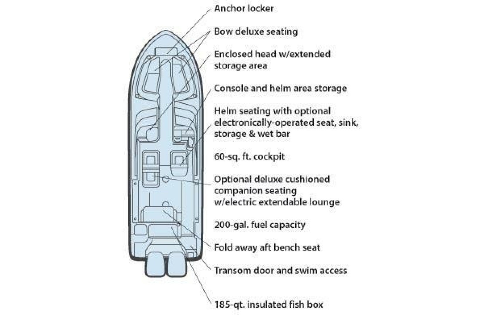 - Fish/ice box - 185-qt. (175.1 l) aft insulated box w/ob drain