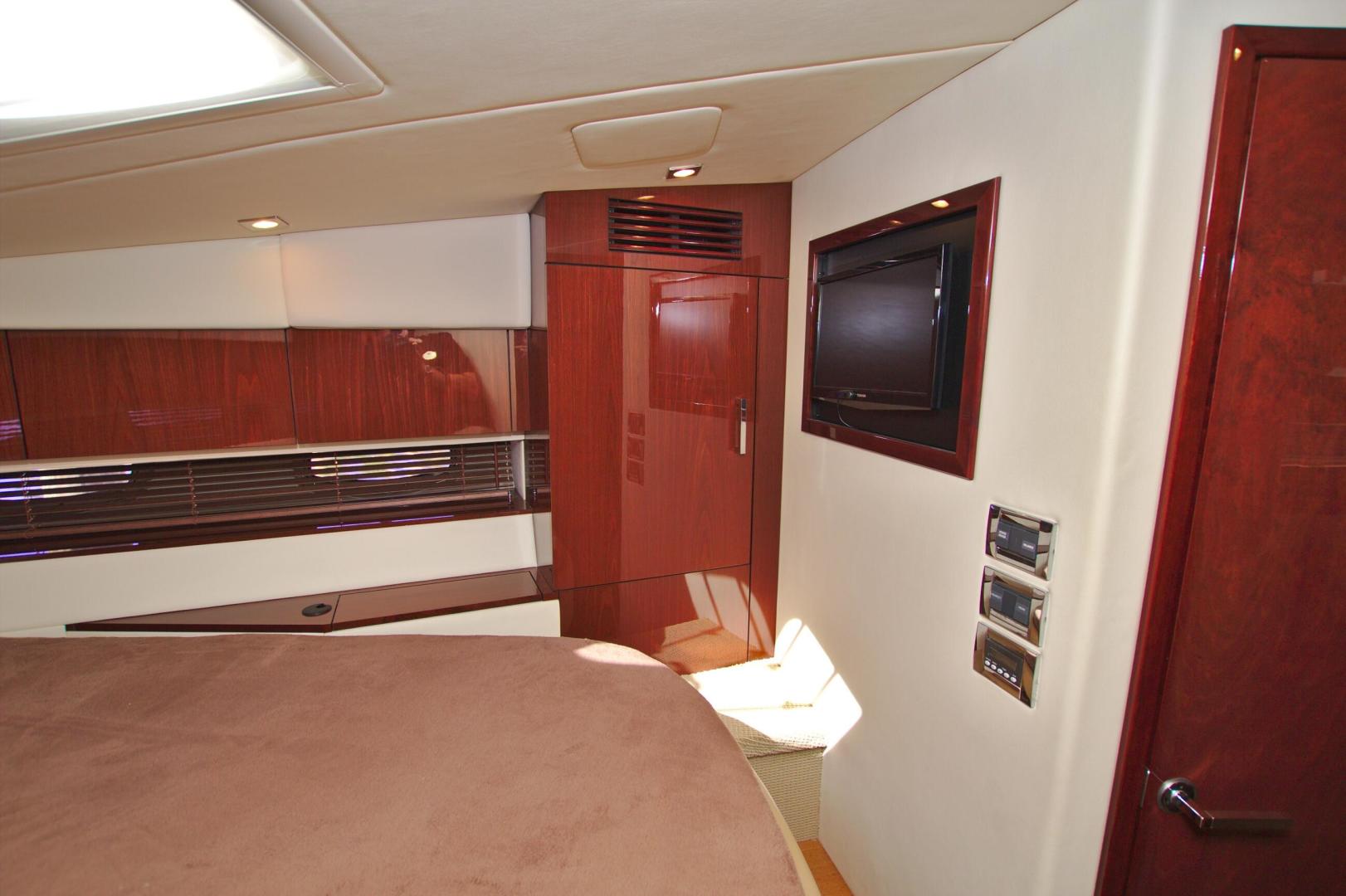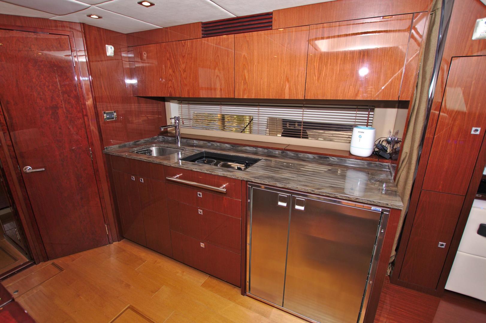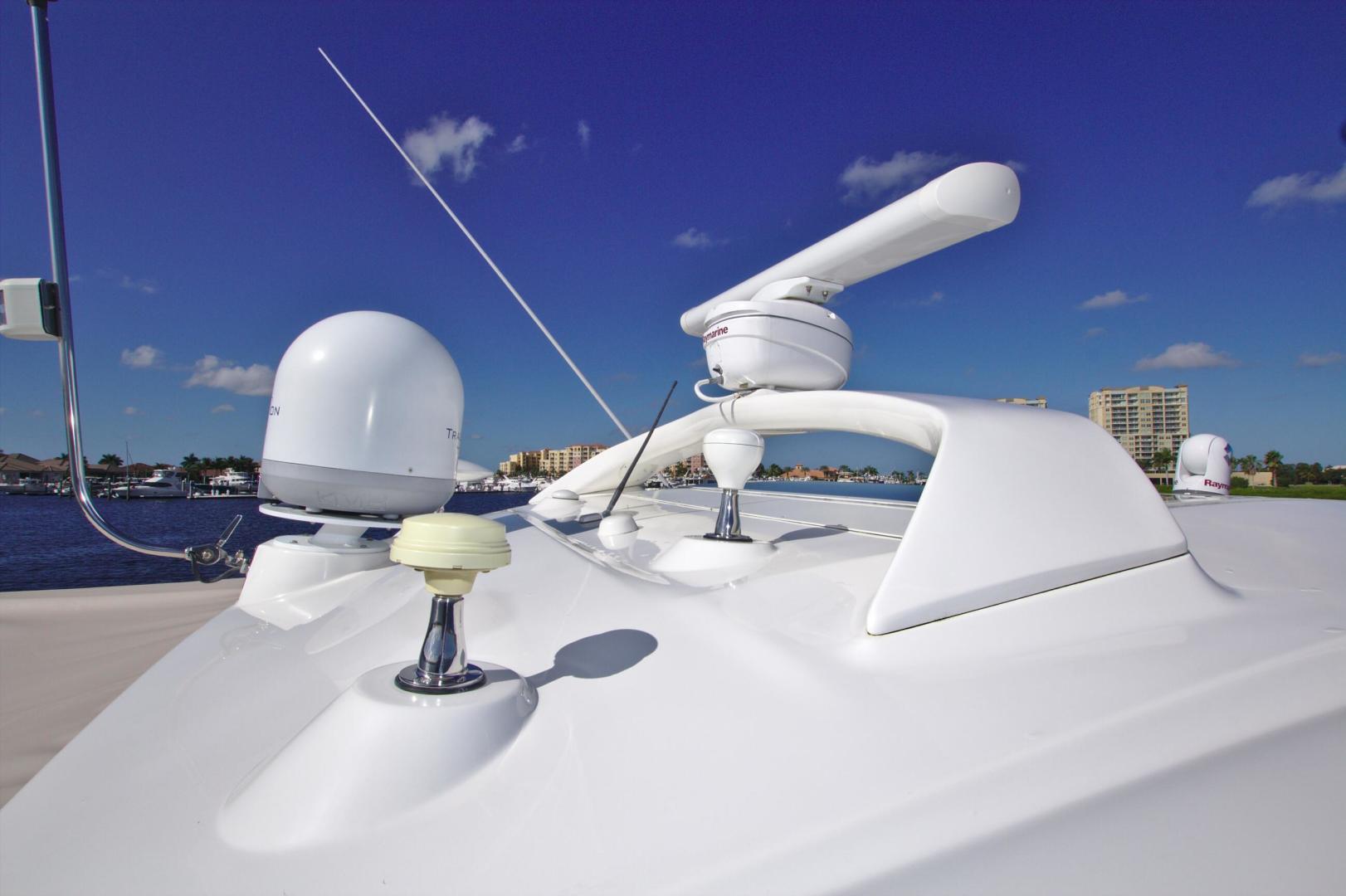 Upon entering the cabin of this beautiful yacht, you will enjoy the warmth and luxury of high gloss cherry cabinets, cherry blinds, Ultraleather upholstery and wood flooring throughout the salon, galley, and forward cabin.