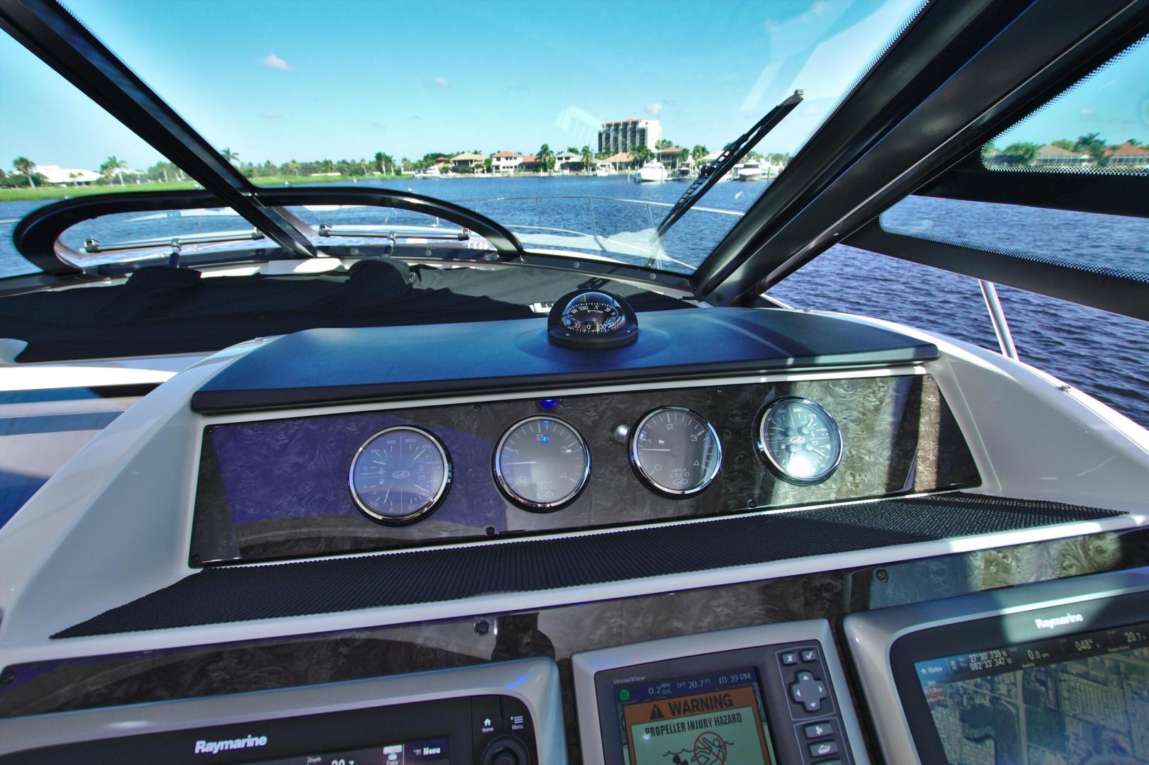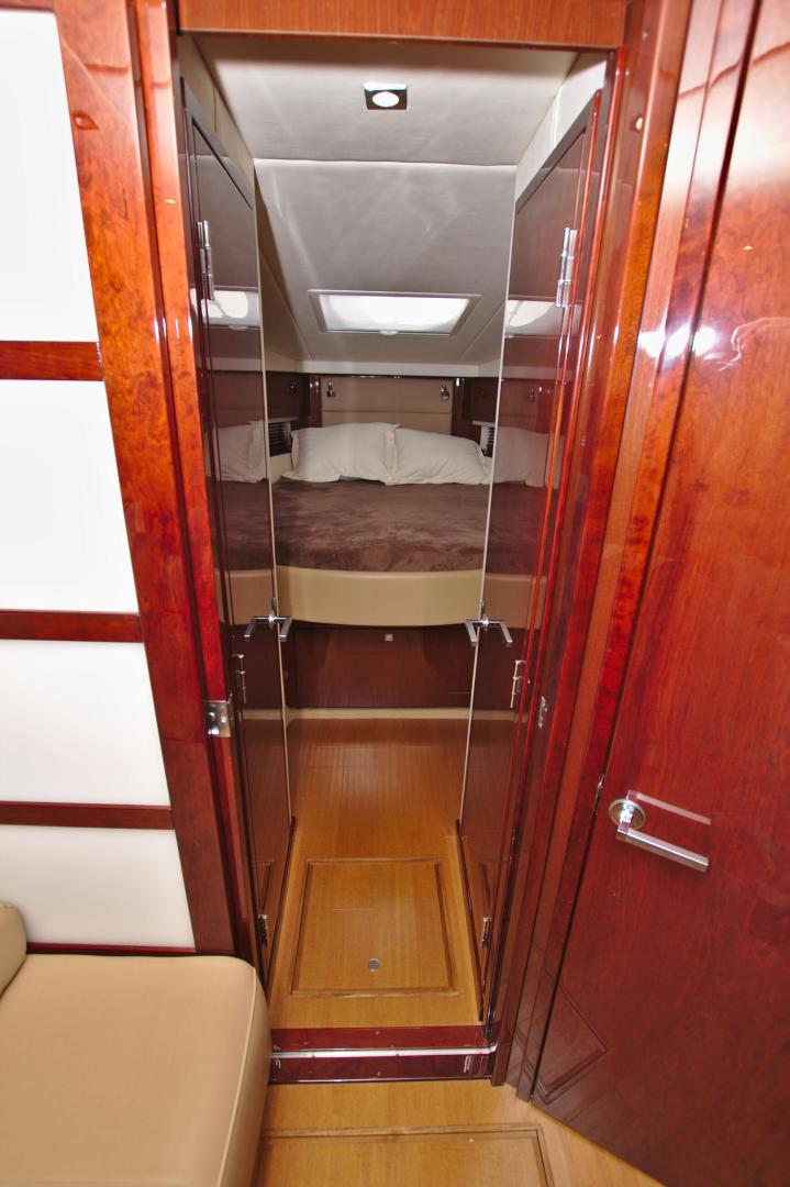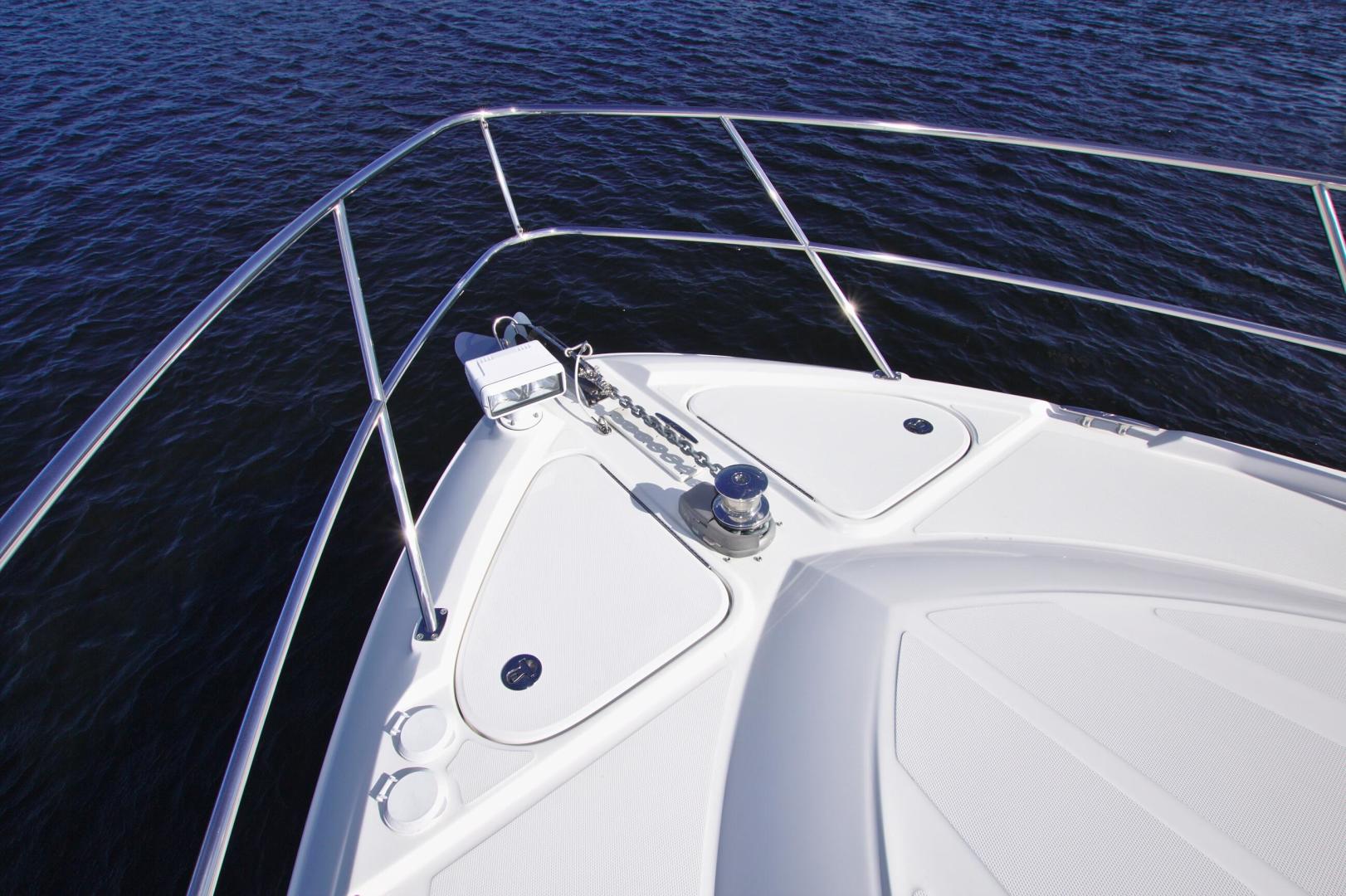 Upon entering the cabin of this beautiful yacht, you will enjoy the warmth and luxury of high gloss cherry cabinets, cherry blinds, Ultraleather upholstery and wood flooring throughout the salon, galley, and forward cabin.